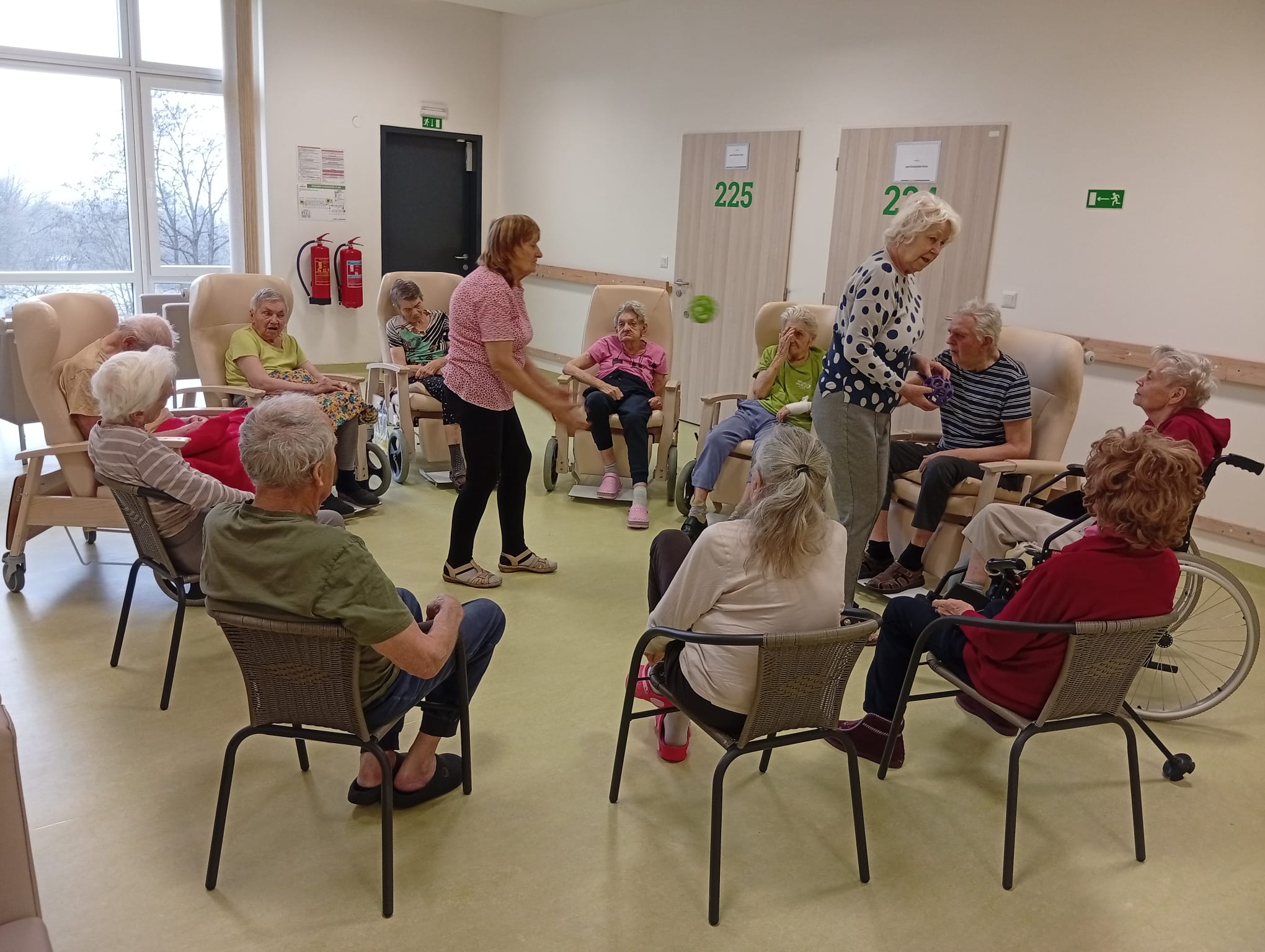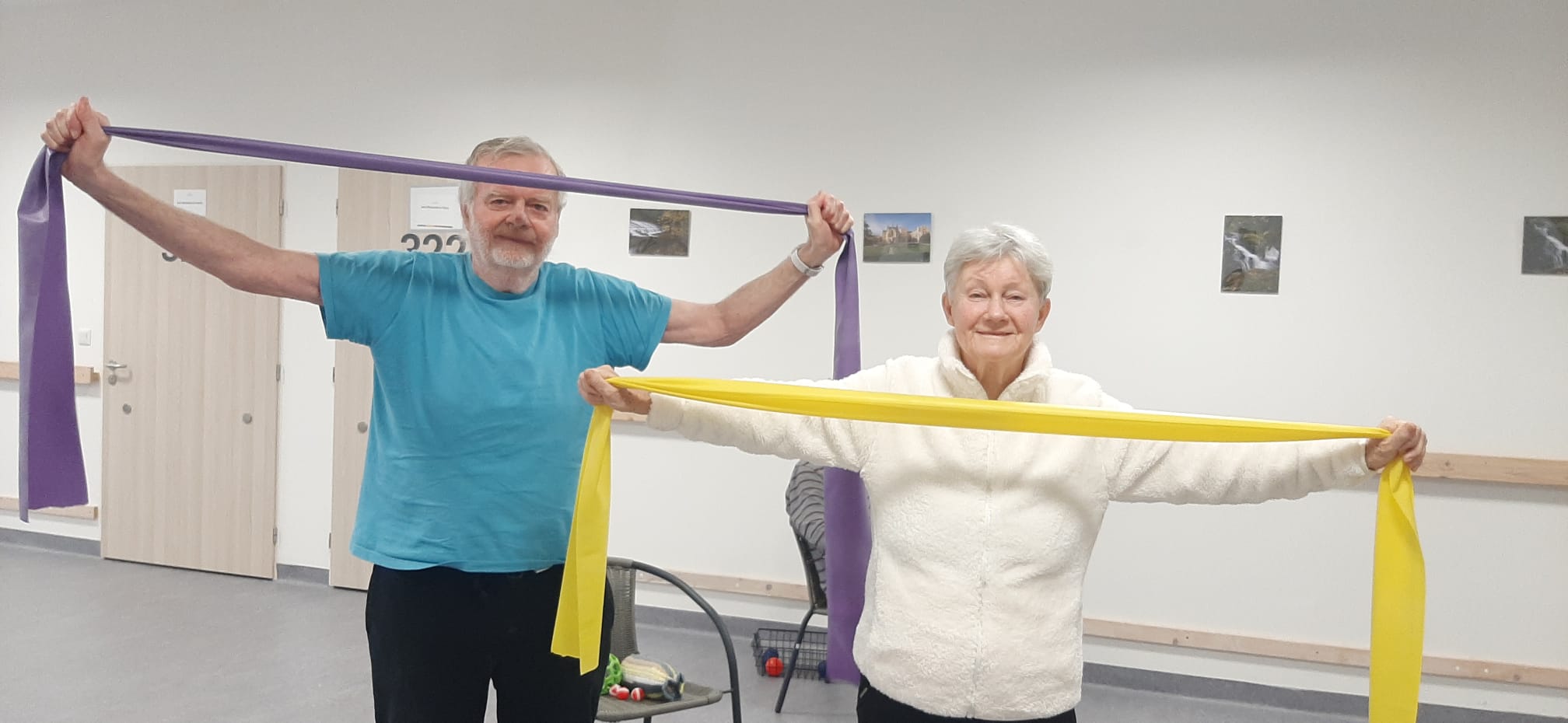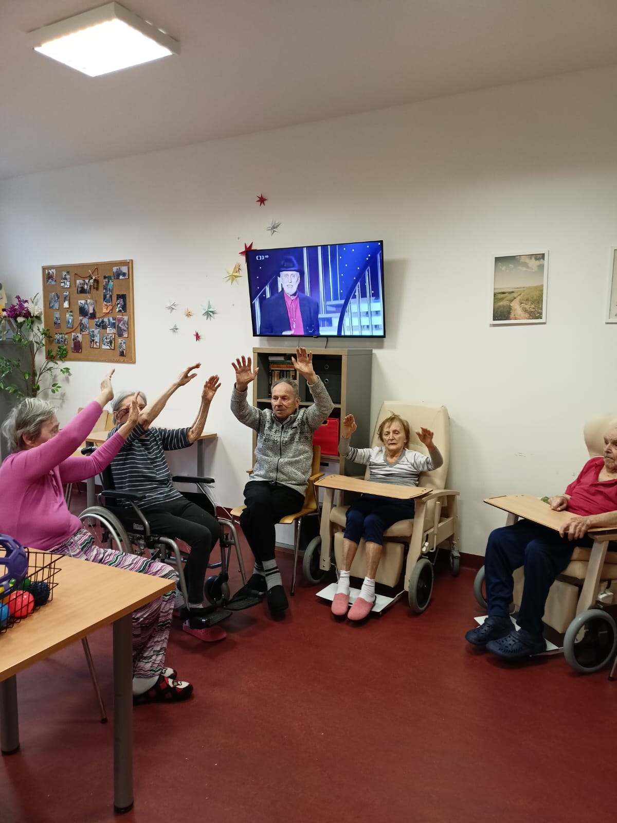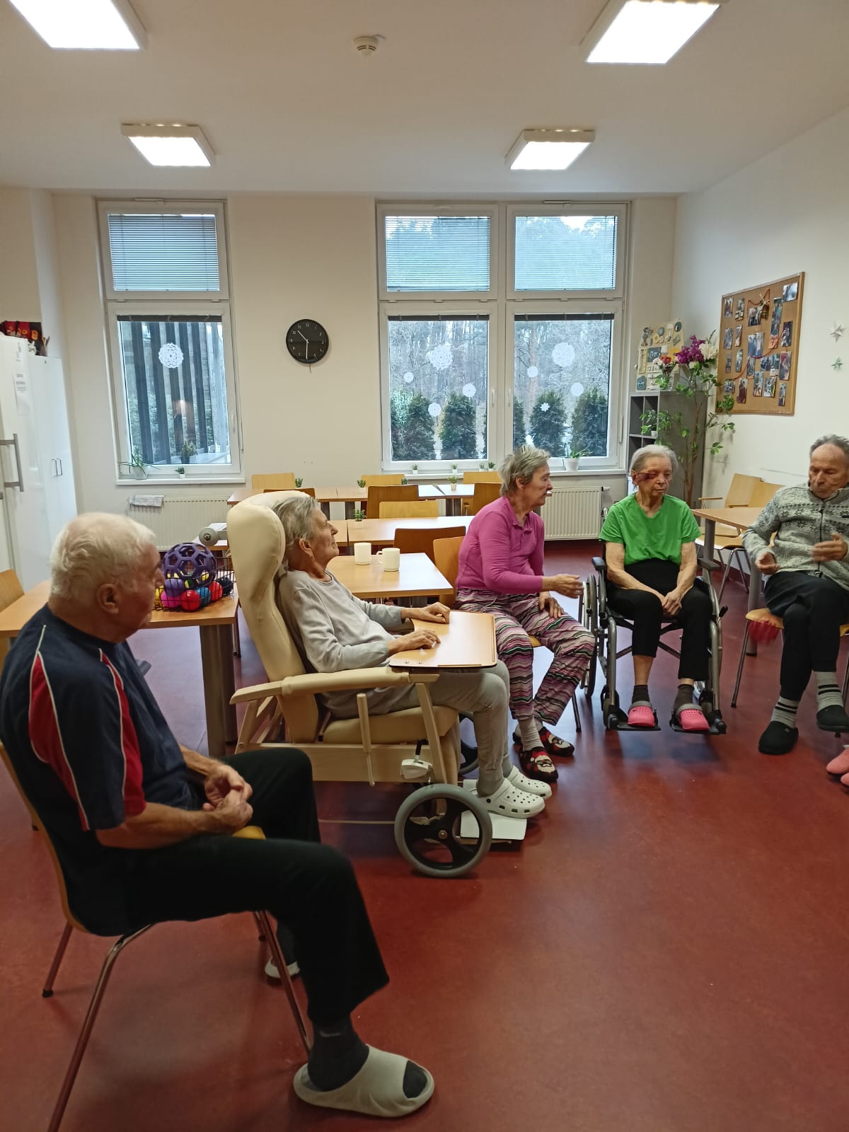 Klienti se zapojili do cvičení s využitím pomůcek. Cvičení probíhalo v klidném tempu.