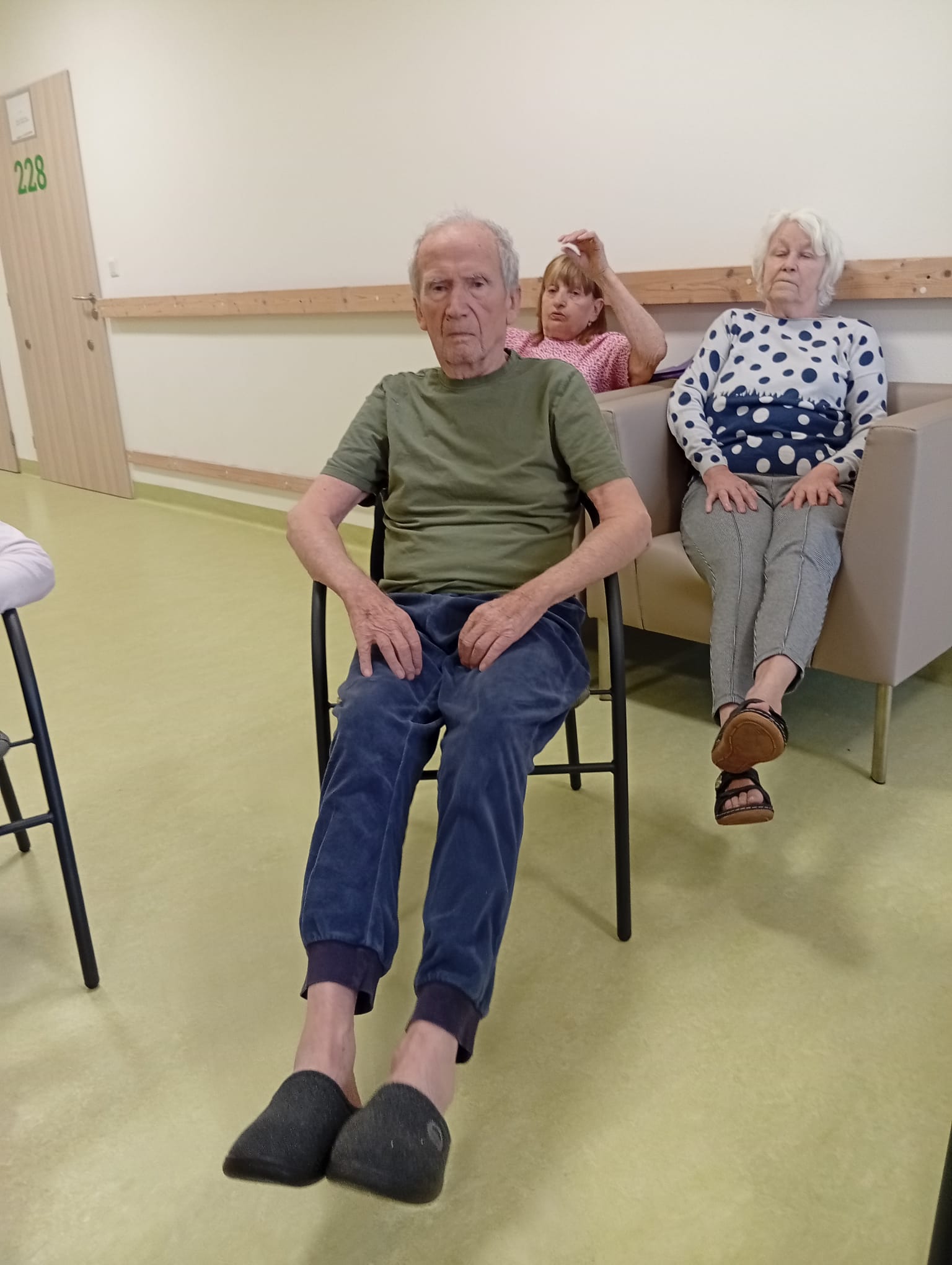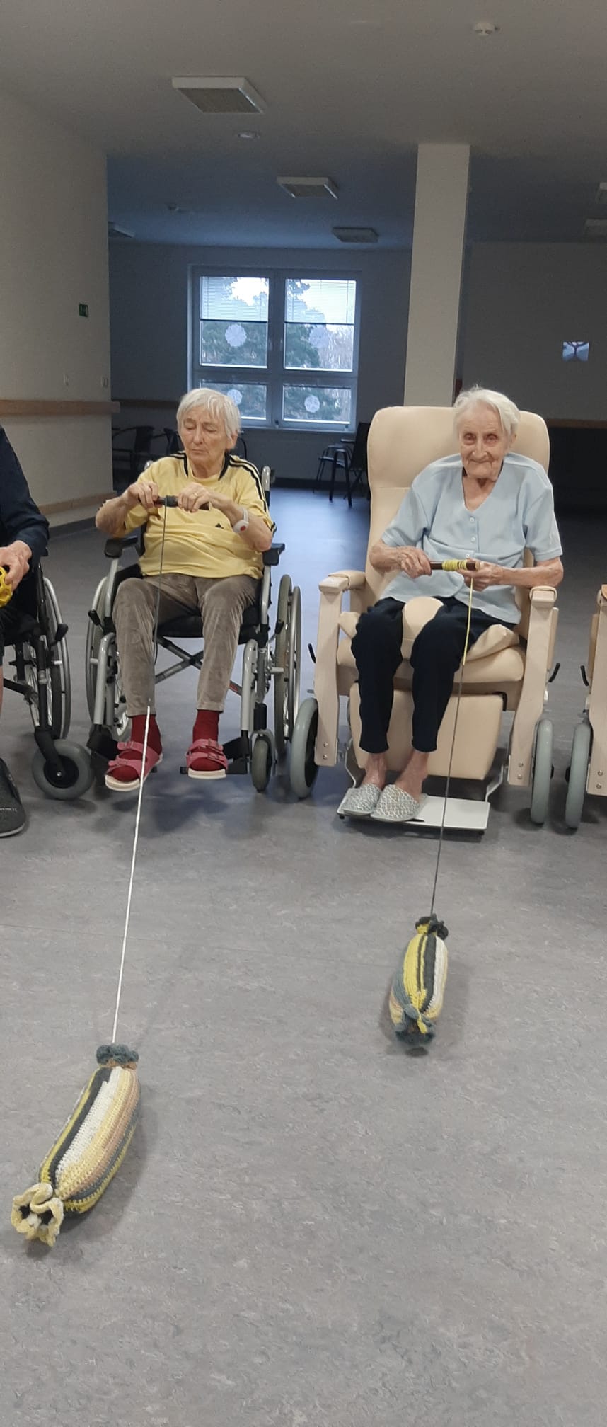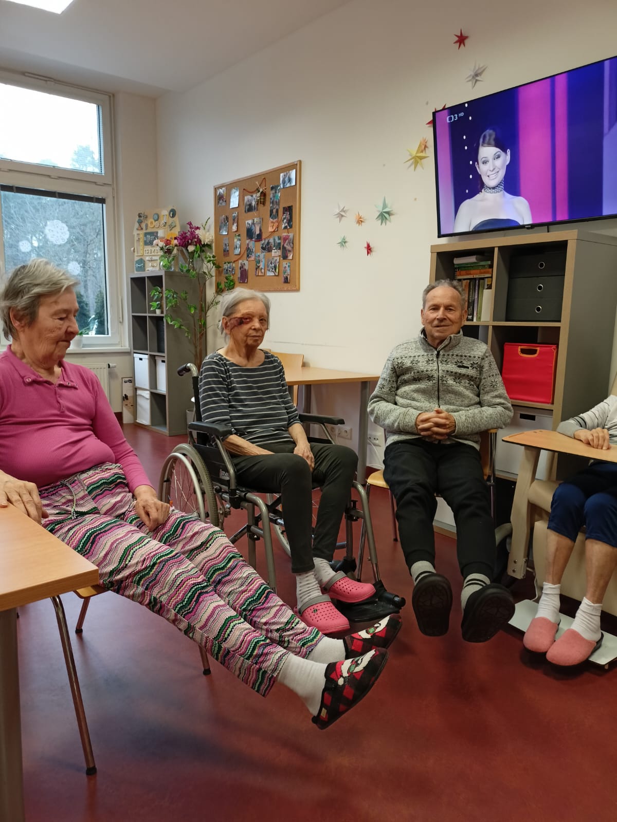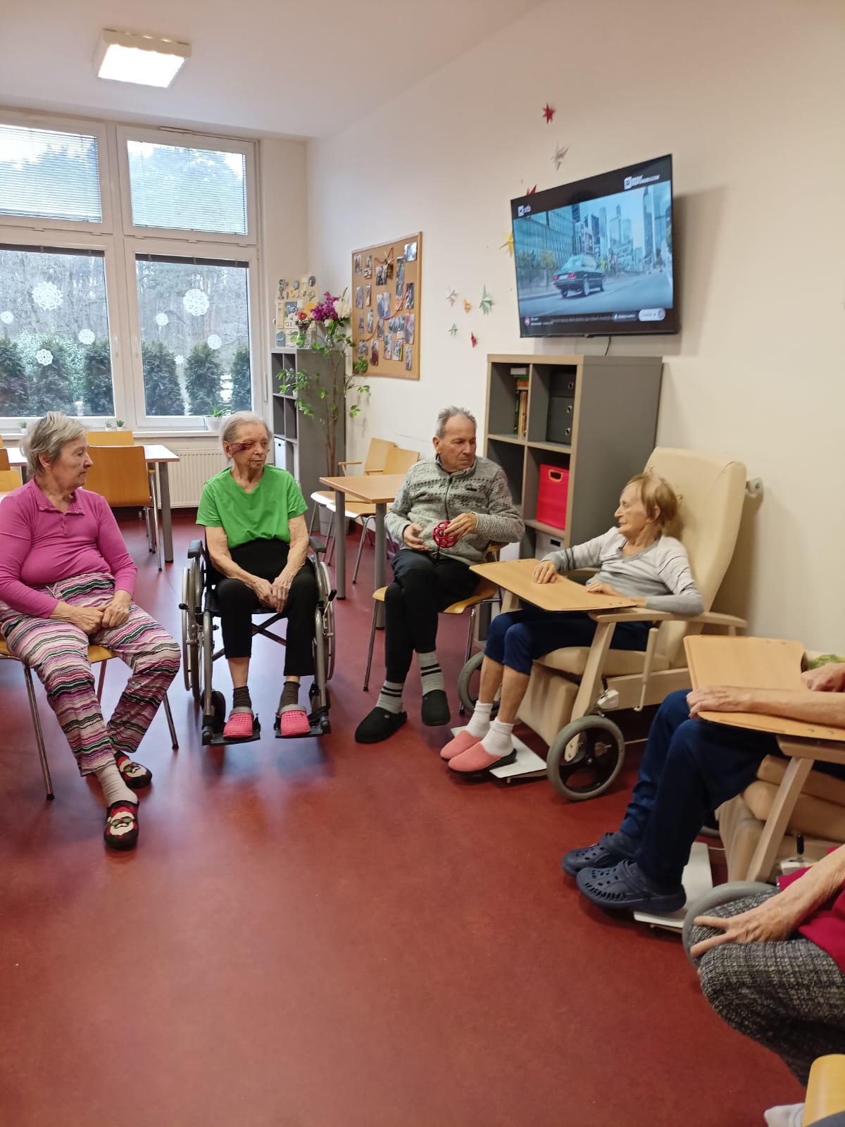 Klienti se zapojili do cvičení s využitím pomůcek. Cvičení probíhalo v klidném tempu.