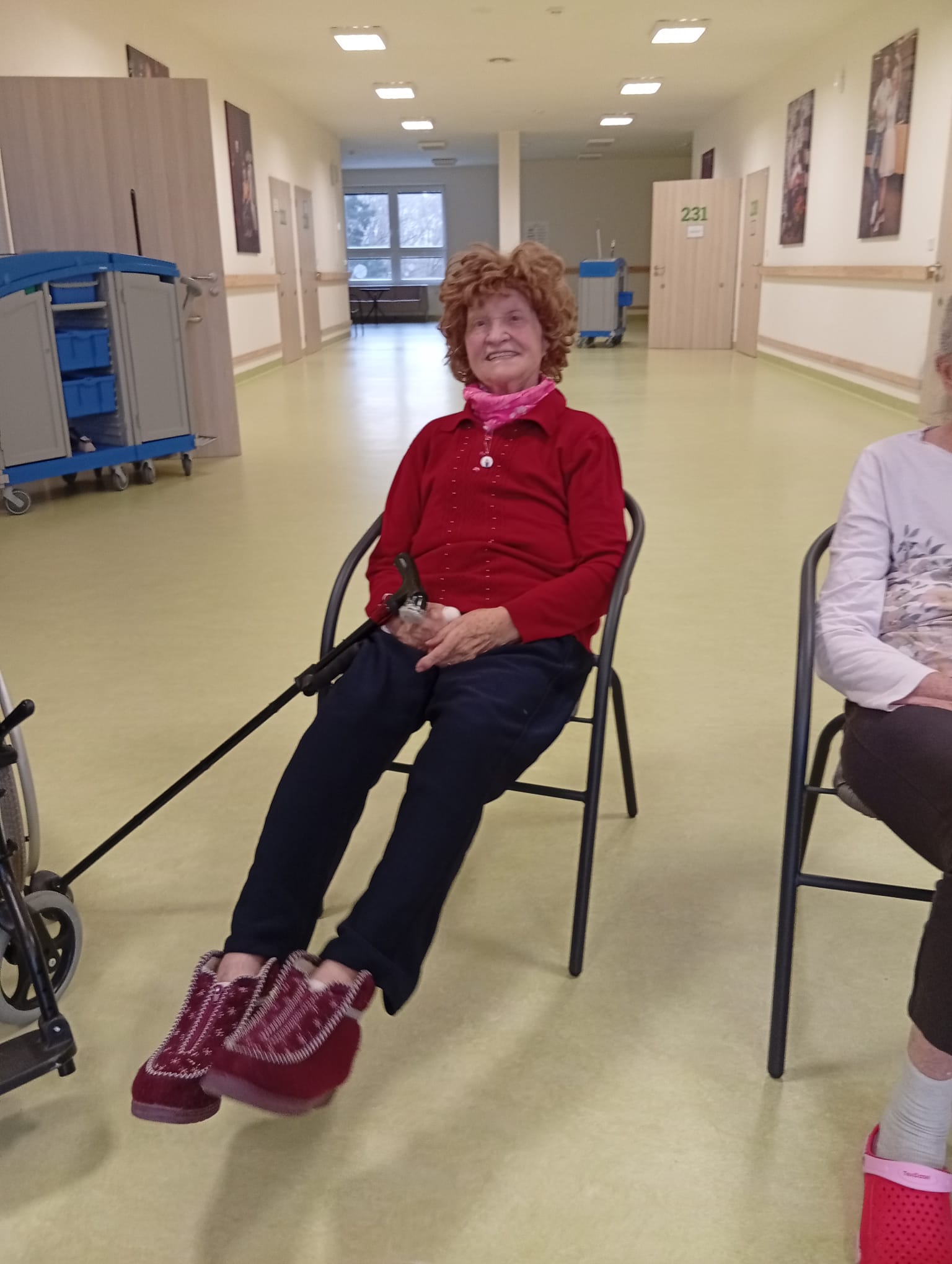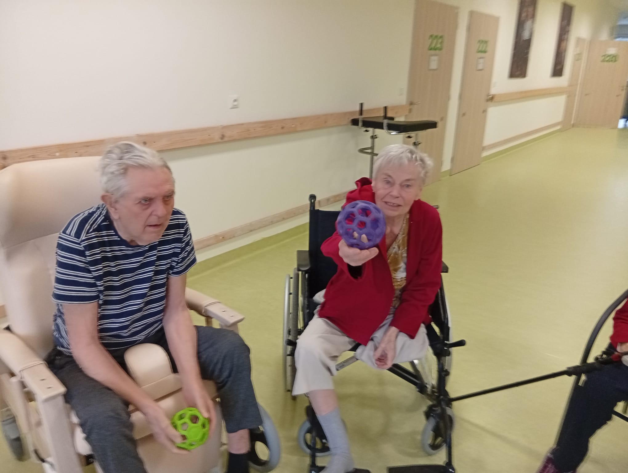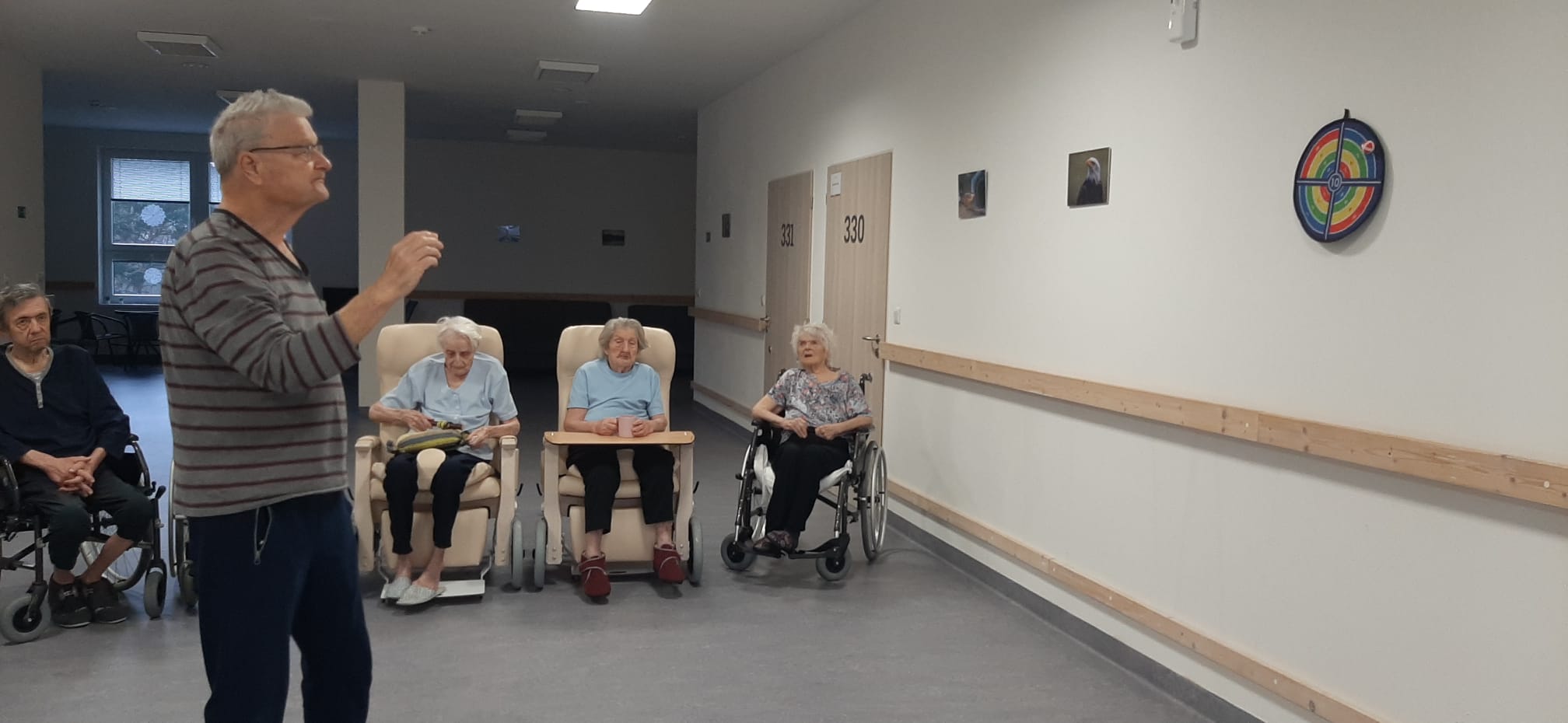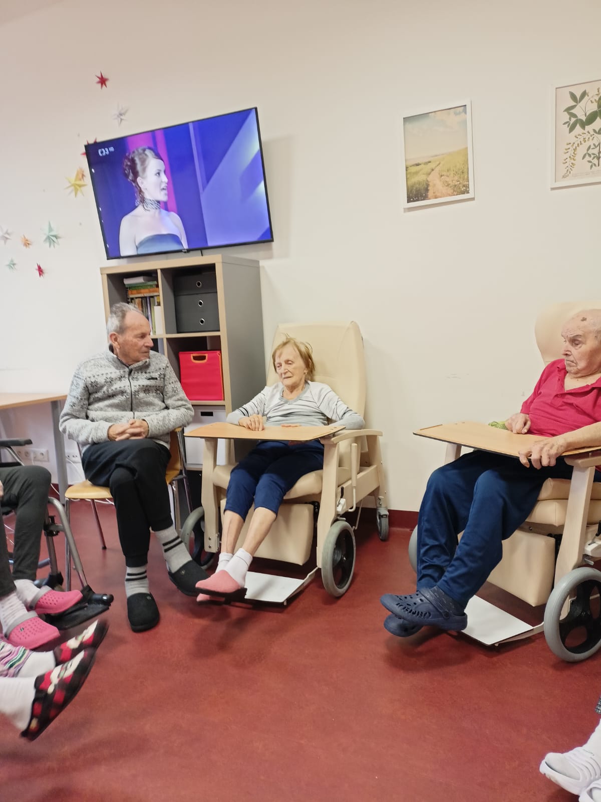 Klienti se zapojili do cvičení s využitím pomůcek. Cvičení probíhalo v klidném tempu.