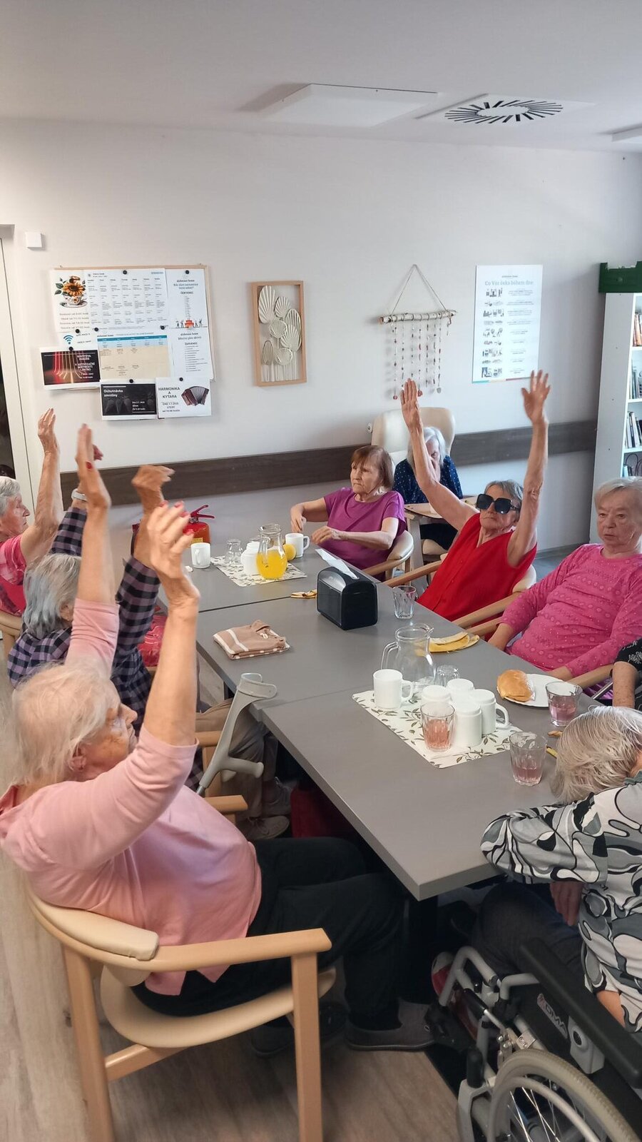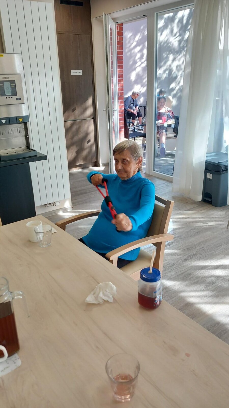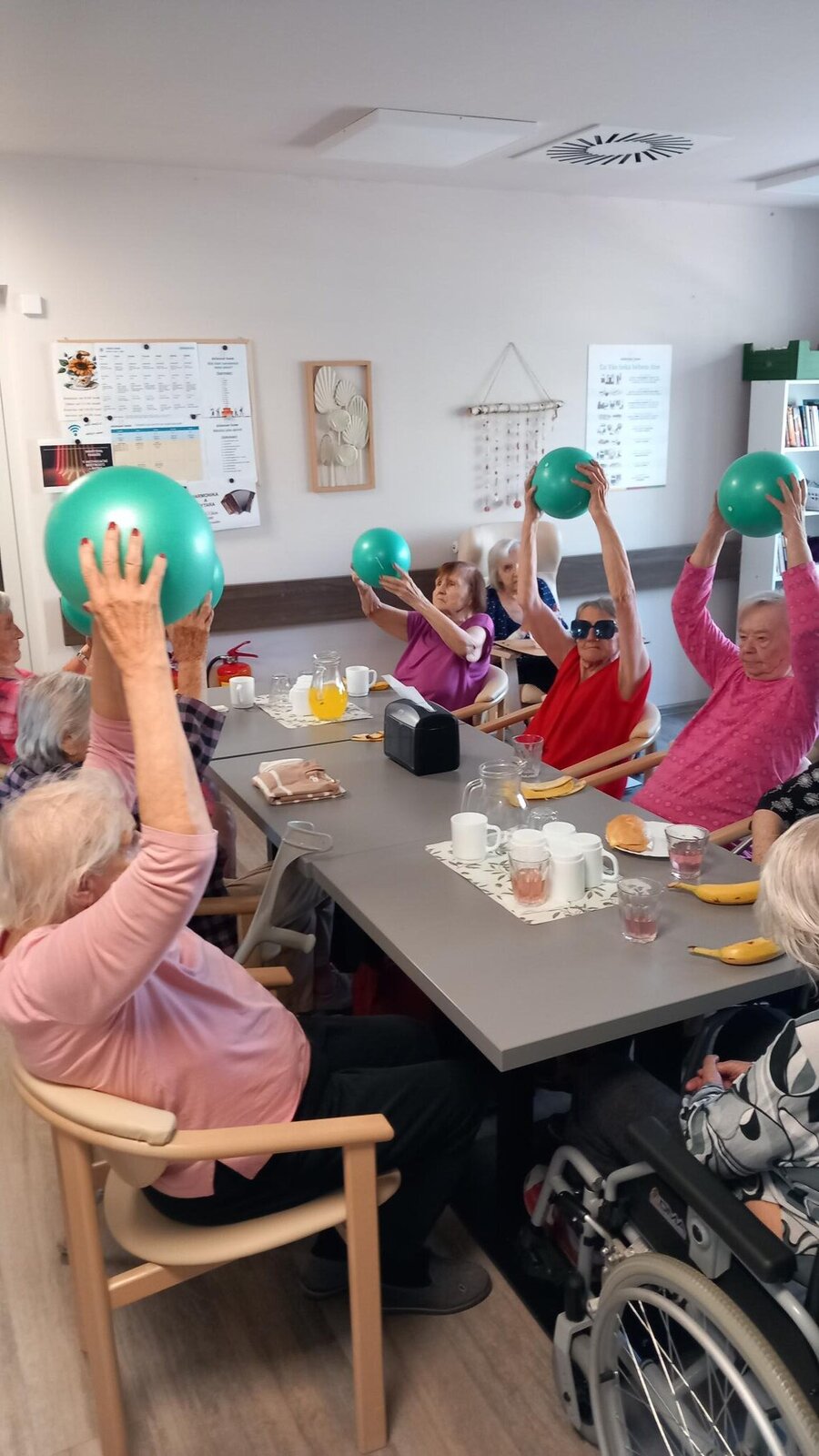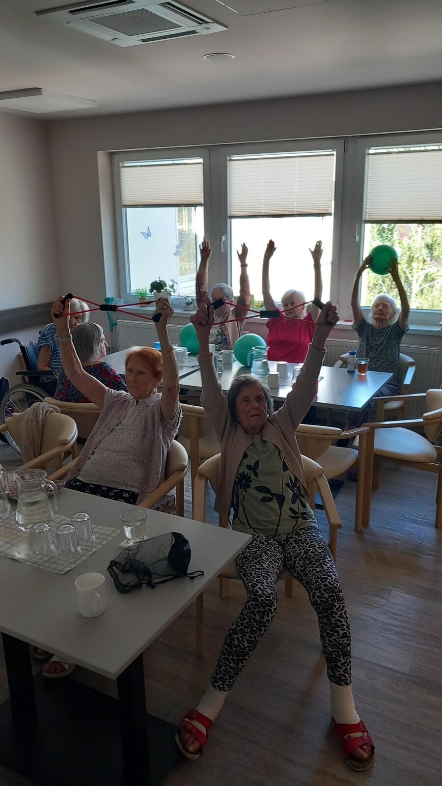 Dnes bylo dopoledne u nás v Senevida Lázně Bohdaneč věnováno cvičení. Klienti cvičili s natahovací gumou, gumovým míčem a také s vlastním tělem. Věříme, že klientům udělalo cvičení radost.