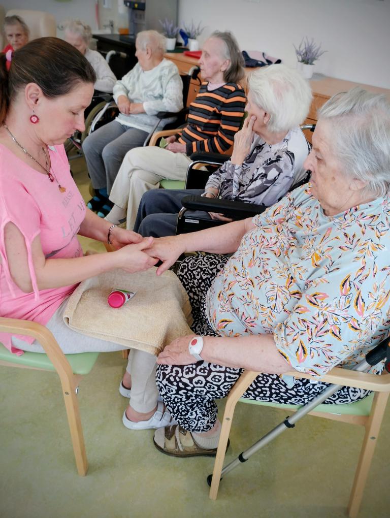 V dopoledních hodinách se konal dámský klub. Vzduch provoněla aroma lampa a a atmosféru dotvořila relaxační hudba. Klientky si užily masáž rukou i obličeje. Všechny si společně povídaly a četly dámské časopisy.