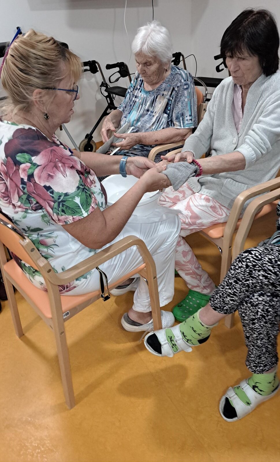 V Senevida Boskovice aktivizační pracovnice uspořádaly Dámský klub, který byl zaměřen na odpočinek, relaxaci a příjemně strávený čas ve společnosti. Klientky si užily masáž rukou a pleti, která přinesla pocit hýčkání a uvolnění. Celou místnost provoněl difuzér s esenciálními oleji, čímž se vytvořila klidná a harmonická atmosféra. Během setkání si dámy také společně četly časopisy, povídaly si o zajímavých tématech a sdílely své vzpomínky.