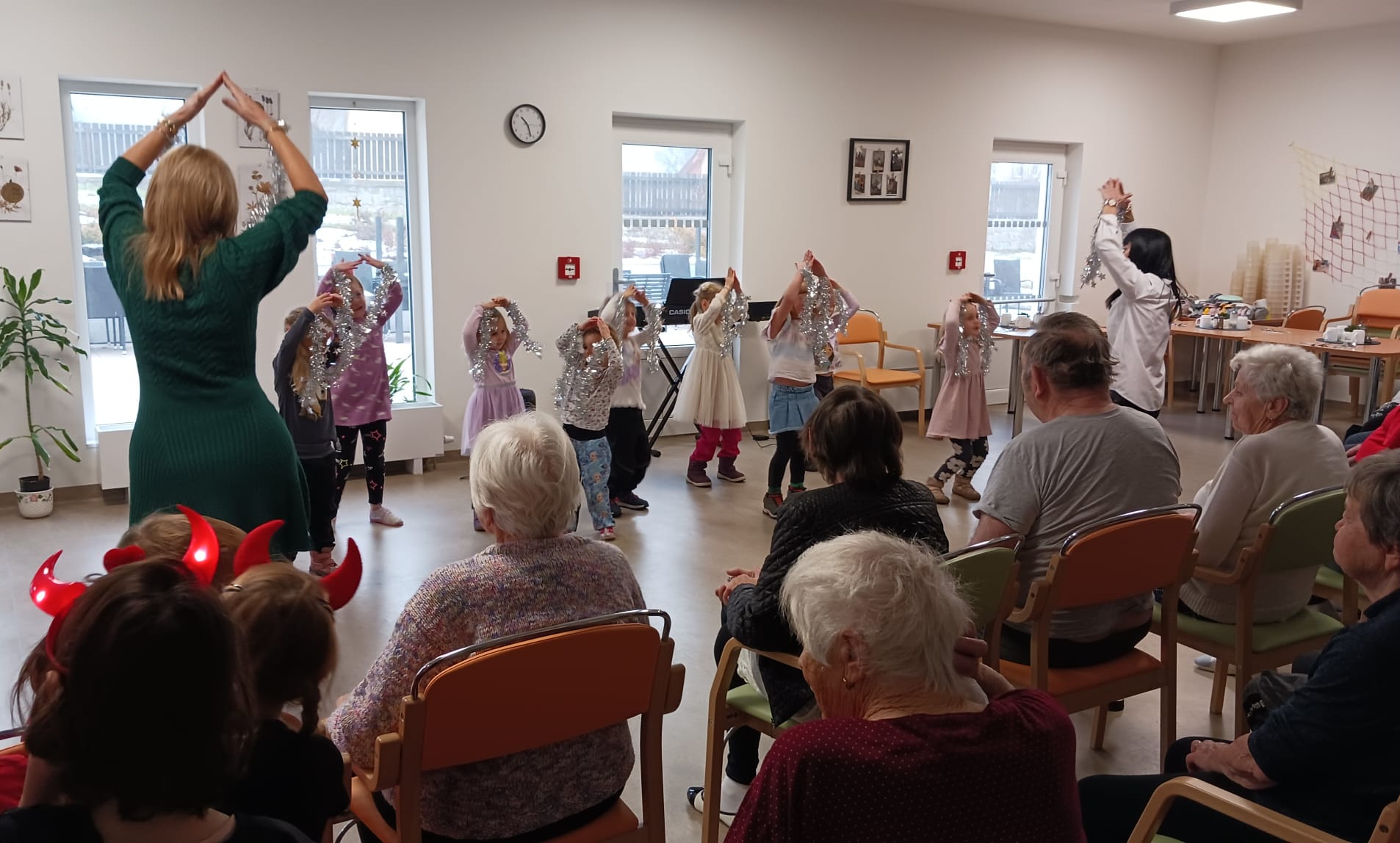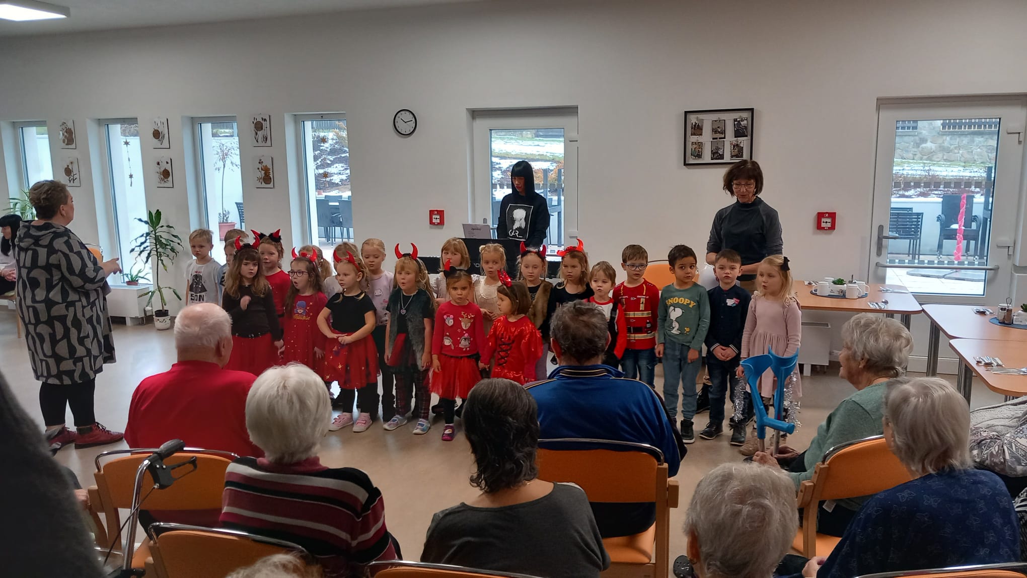 Naši klienti sledovali vystoupení s nadšením a dojetím, a společně strávené chvíle byly plné úsměvů. ❤️ Děkujeme dětem i pedagogům za jejich energii a ochotu přijít zpříjemnit dopoledne našim klientům. 🌟