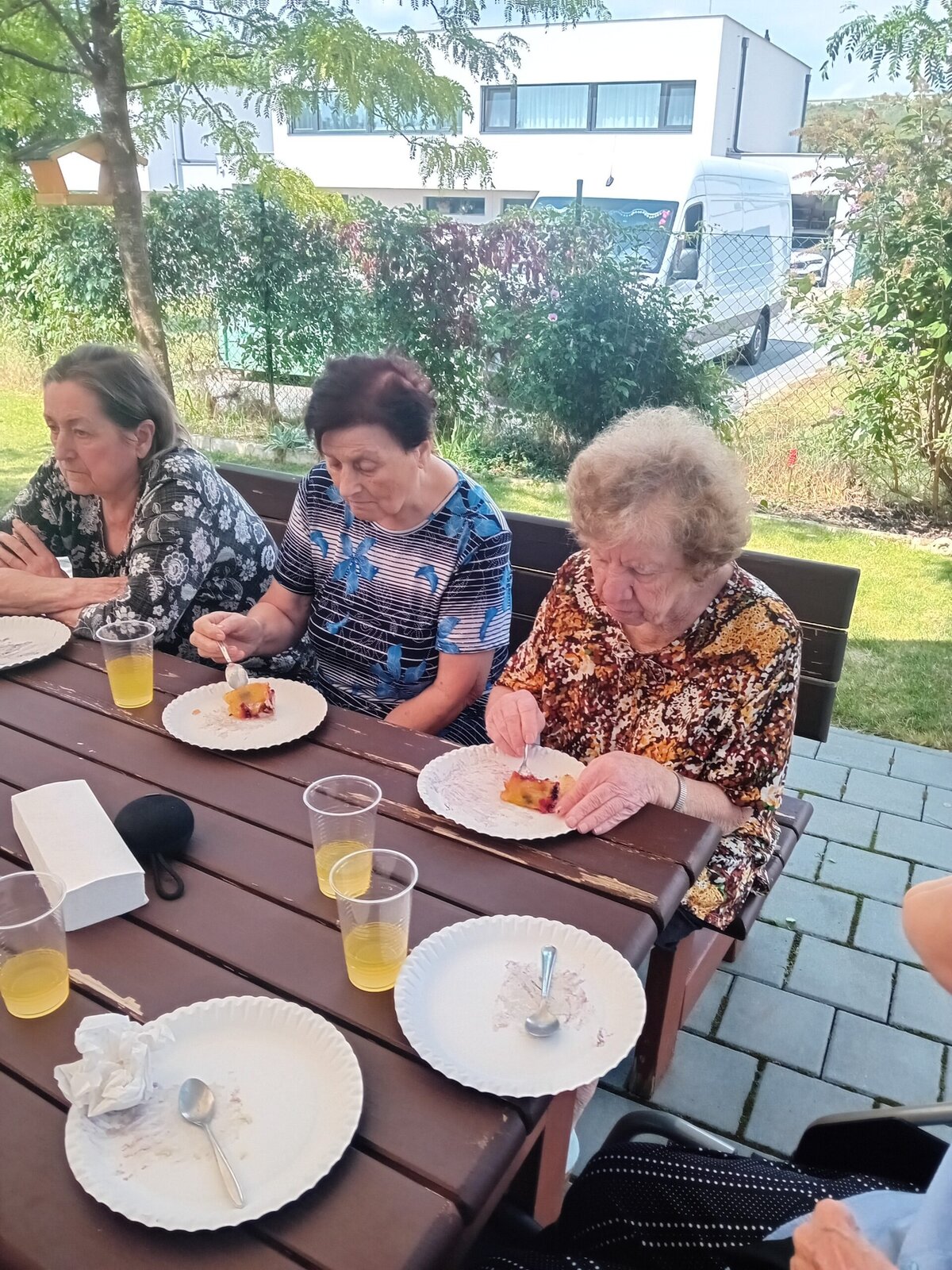 Ostružiny jsou znamením vrcholného léta. Krásné a velmi efektní plody jsou ozdobou každého dezertu. Ať už si ostružiny vypěstujete na zahrádce, nasbíráte v lese, koupíte v obchodě nebo jako naši klienti nasbíráte v zahradě Senevida. Určitě si na takovém dezertu z ostružin pochutnáte. Nám tedy s výbornou kávou a za zpěvu Hanky Zagorové moc chutnal.
