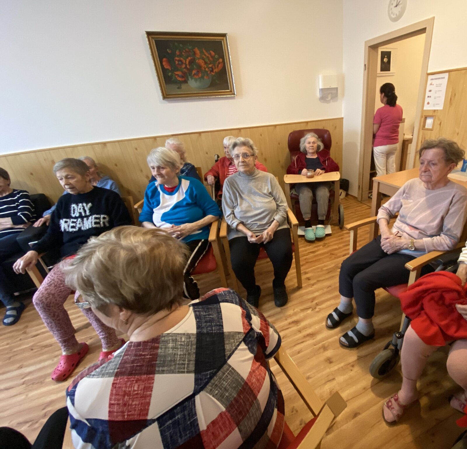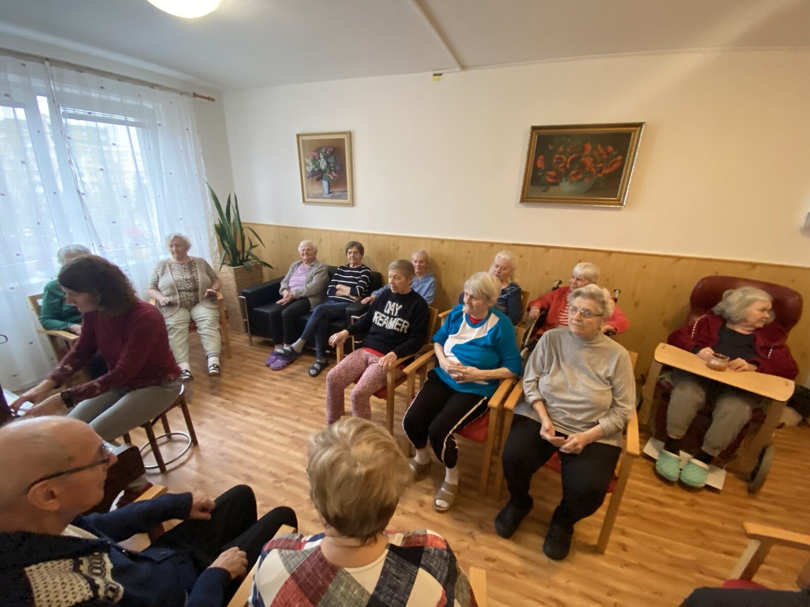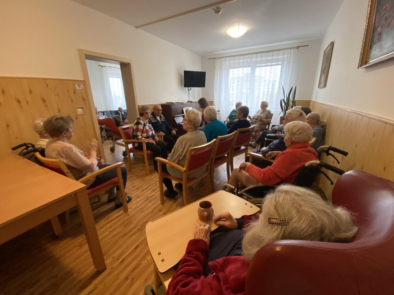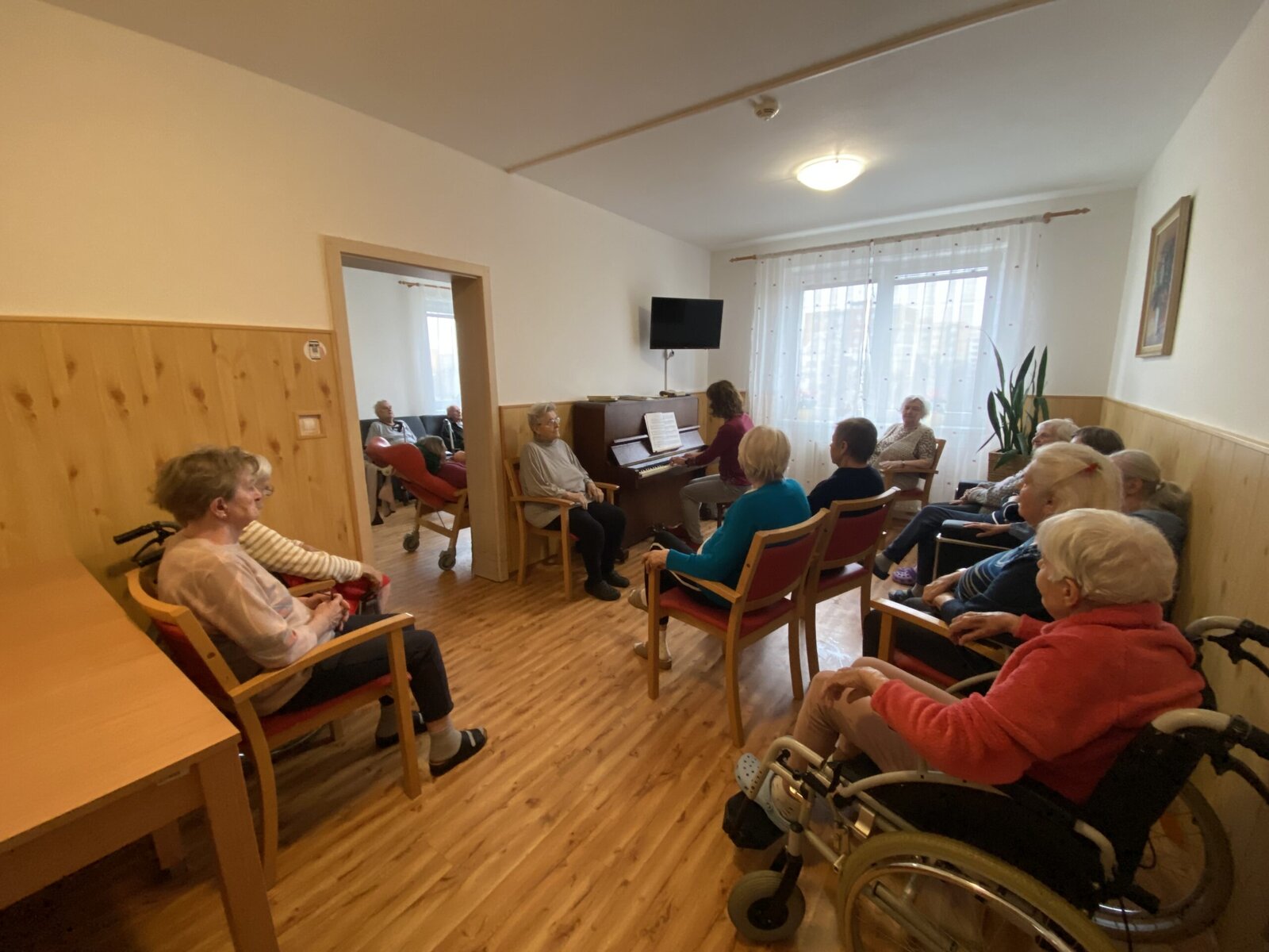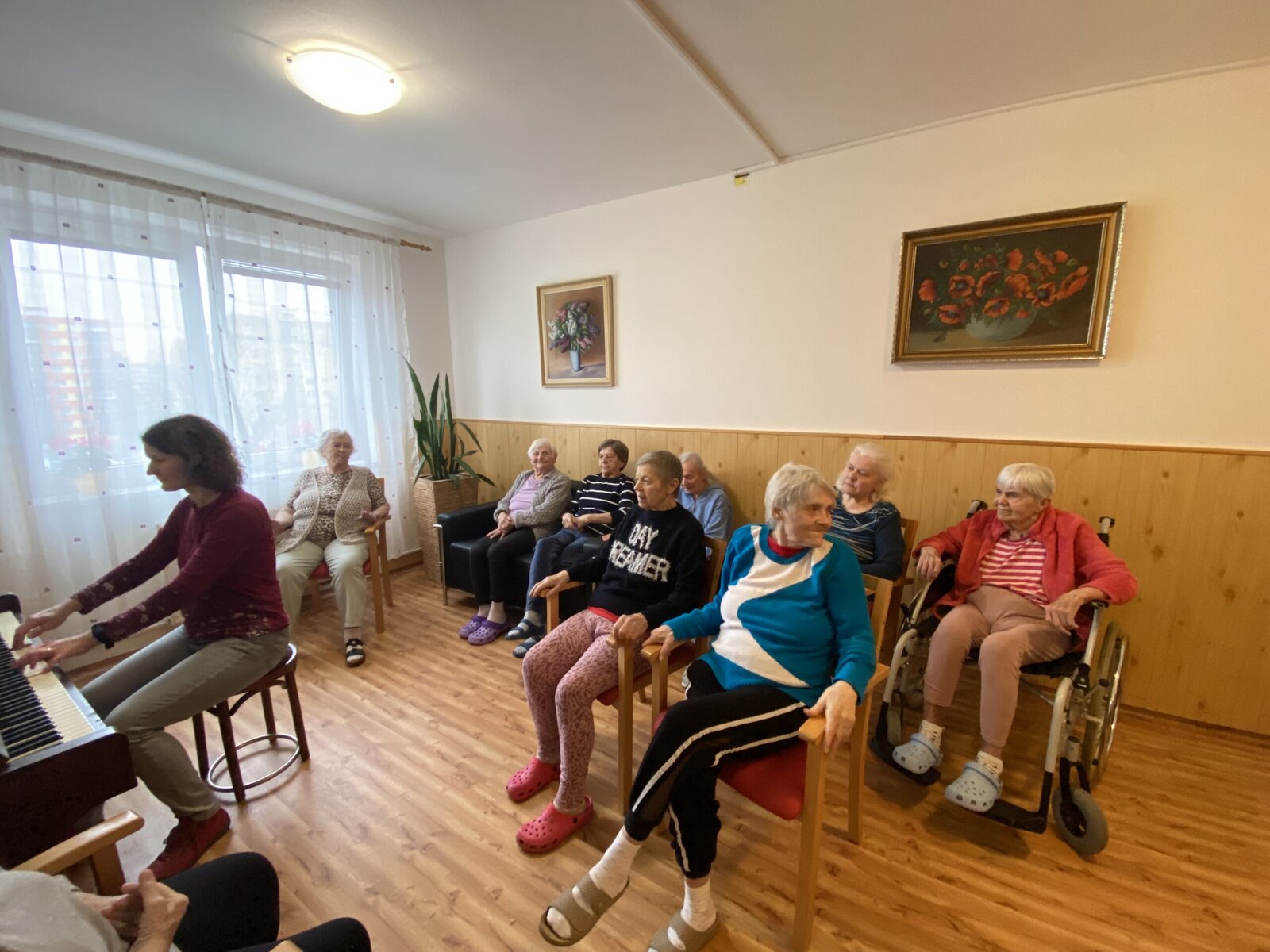 Pomineme-li období chřipek, dochází za námi naše šikovná dobrovolnice pravidelně. Vždy usedne za klavír ve 3. patře a příjemná hudba se line celým naším Domovem.