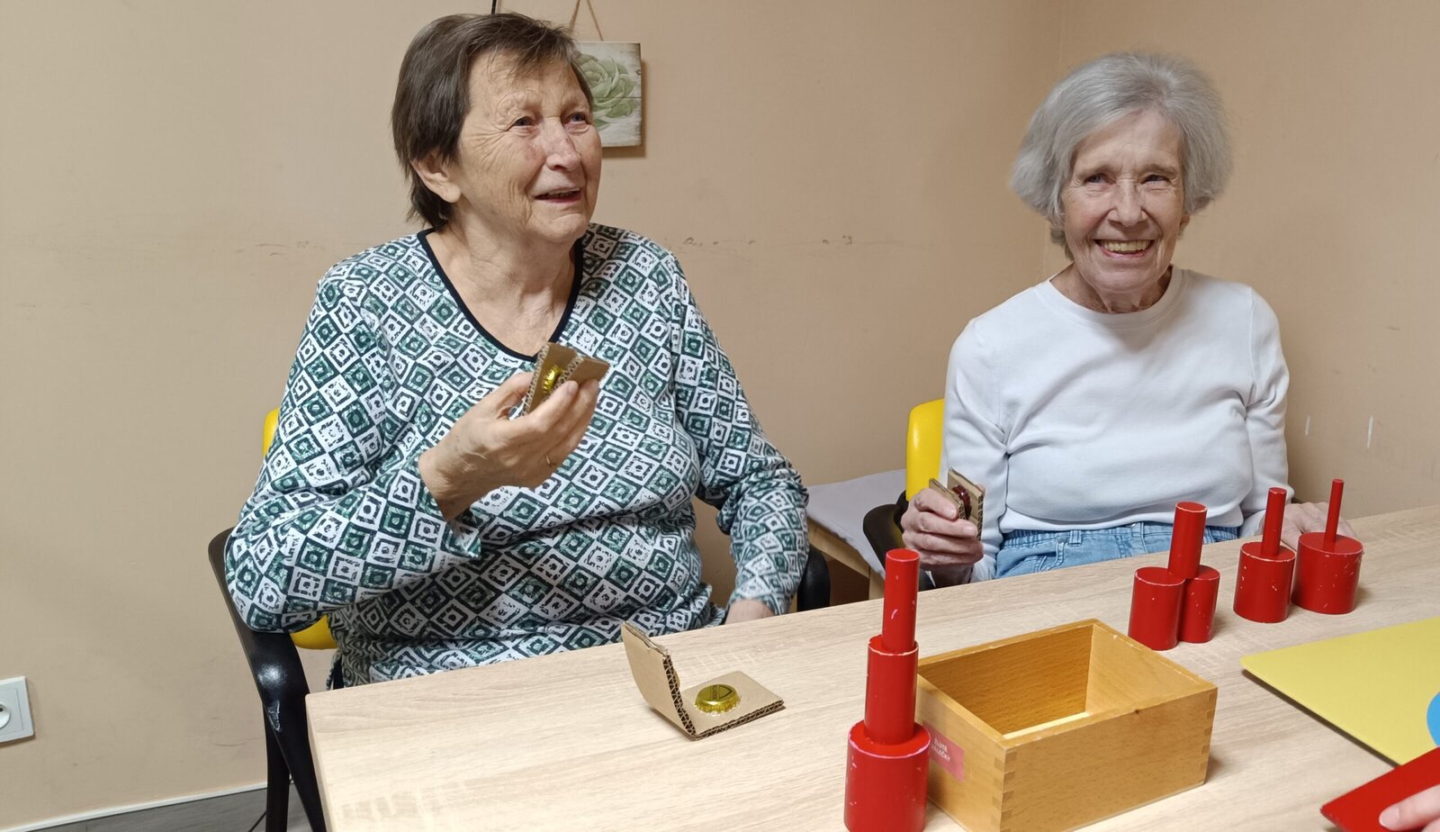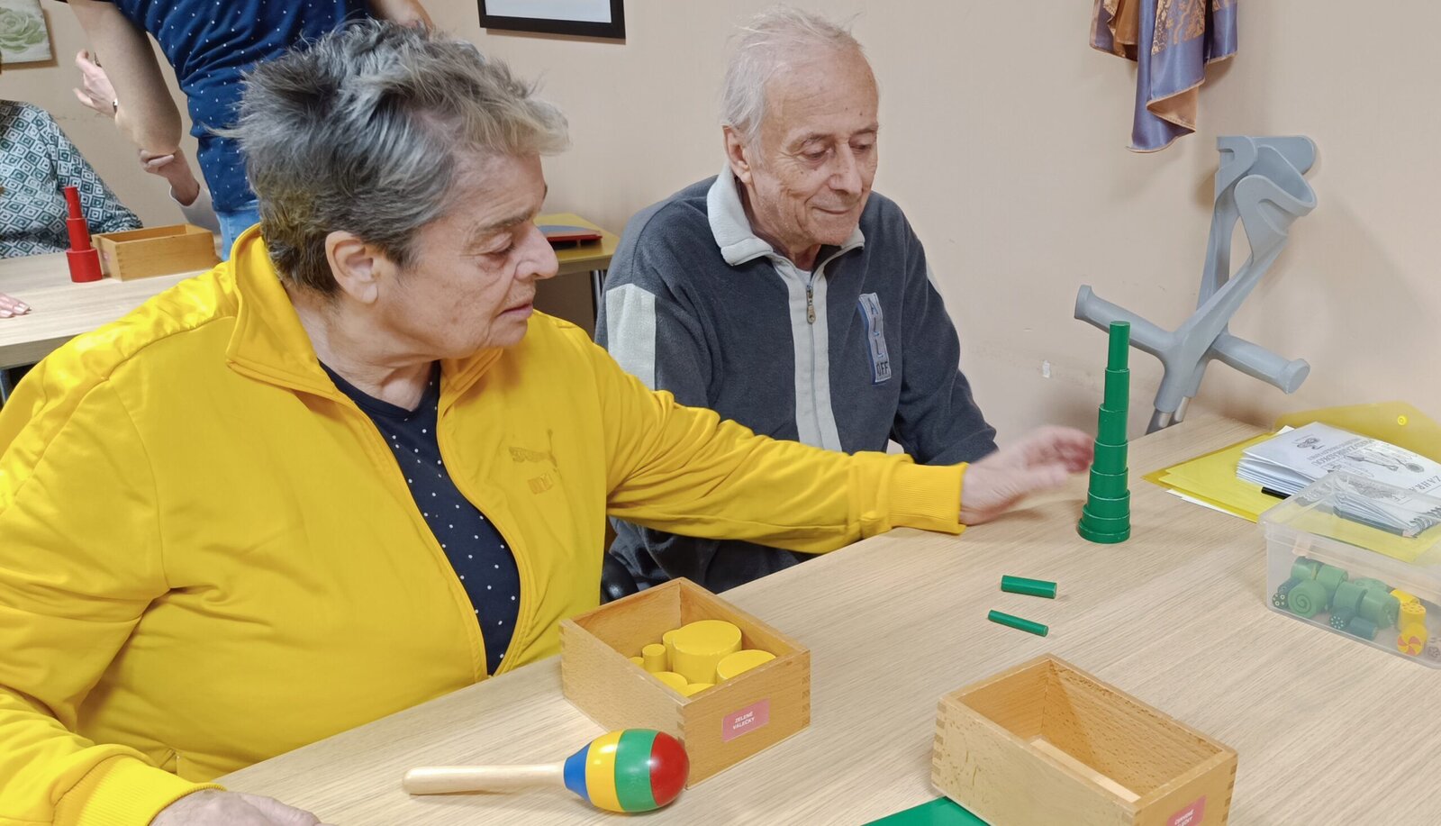 Dnes nás opět v Senevida Modřany navštívila ZŠ Na Beránku a přinesla s sebou opět zajímavé Montessori pomůcky. Vyzkoušeli jsme si obtahování obrázků jedním tahem, skládali jsme z válců věže, hledali dvě stejné velikonoční kraslice a mnoho dalšího. Nesměla chybět také muzika tak nám studenit a profesor zahráli-li na kytaru a Ukulele, společně jsme zazpívali pár písniček a zahráli jsme si u toho na dřívka , kastaněty nebo třeba rumbakoule.