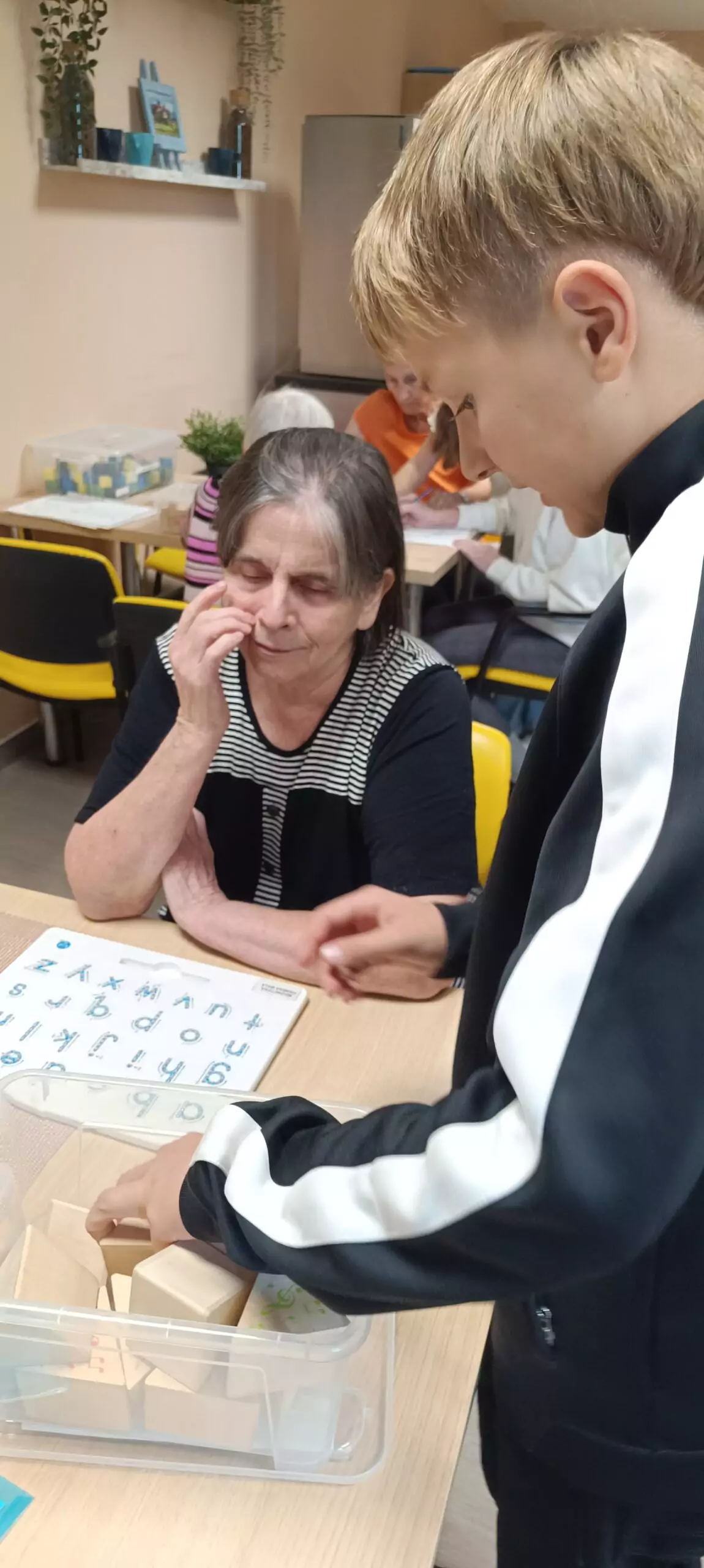 Dnes nás v Senevida Modřany po prázdninách navštívila ZŠ Na Beránku s Montessori pomůckami.👌👫🧠 Procvičili jsme hrubou i jemnou motoriku, pozornost, ale také barvy nebo vývoj jednotlivých zvířat. Mezigenerační setkání je jednou z oblíbených aktivit našich klientů.❤️👍