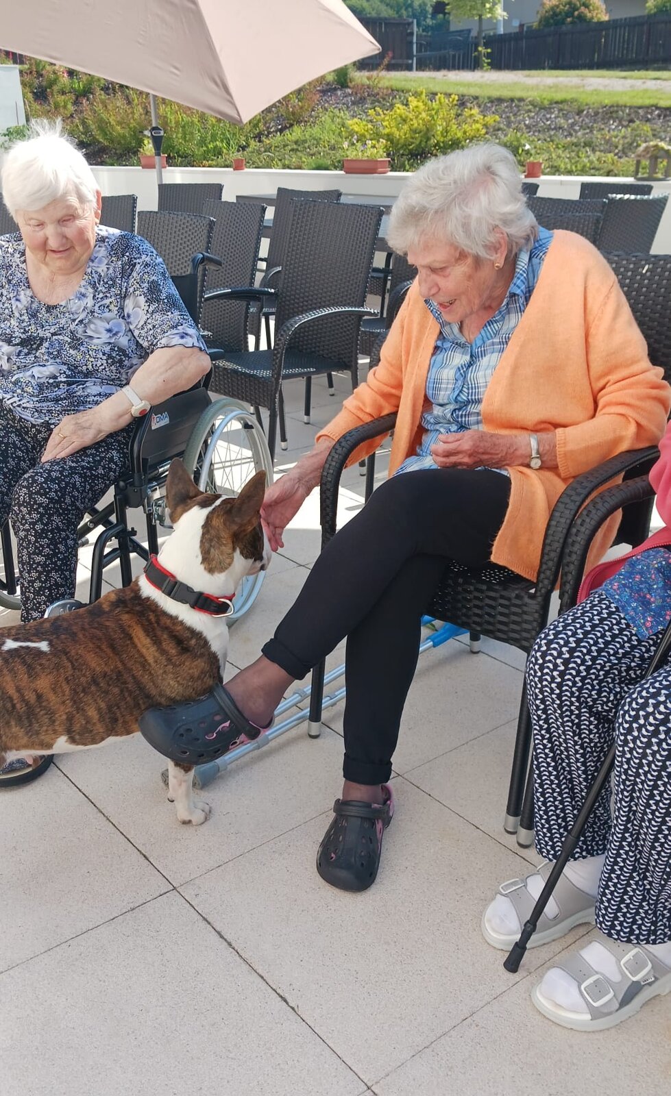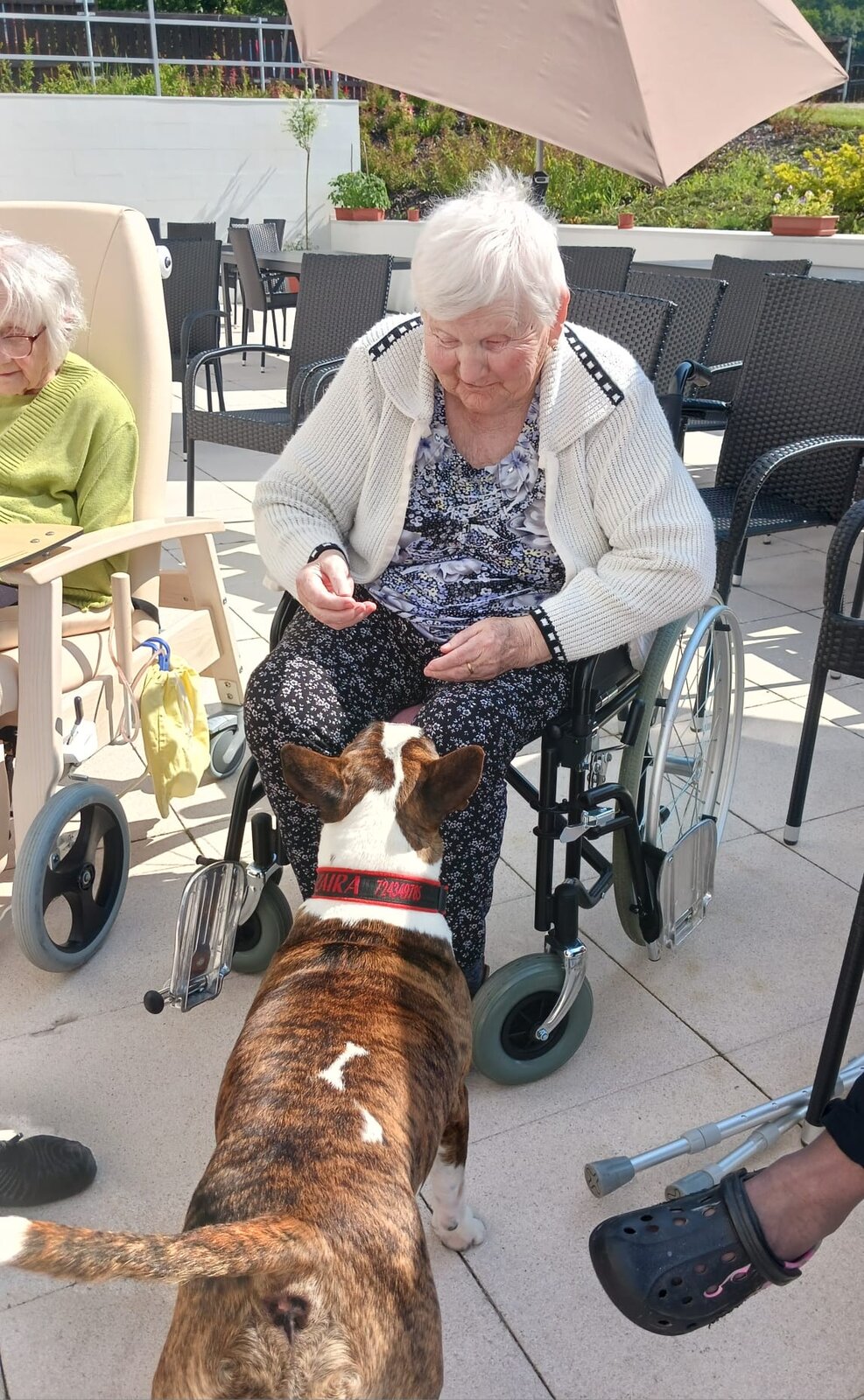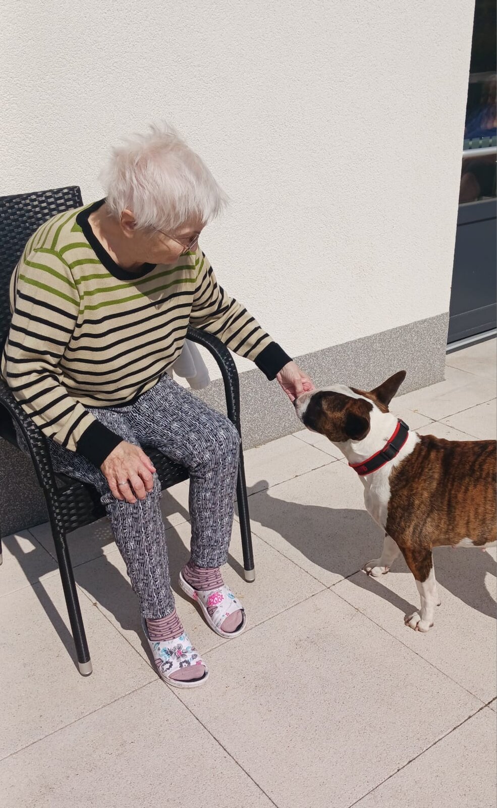 Klienti si užili nejen hlazení a kontakt se Zairou, ale také příjemný čas venku na čerstvém vzduchu. Zaira je oblíbenou návštěvou – její přítomnost dokáže zklidnit, rozveselit i navodit pocit bezpečí.