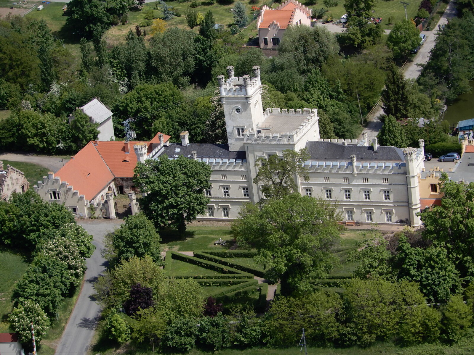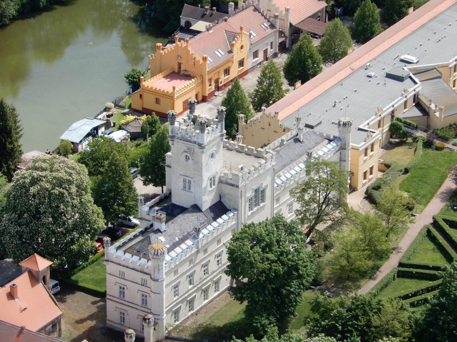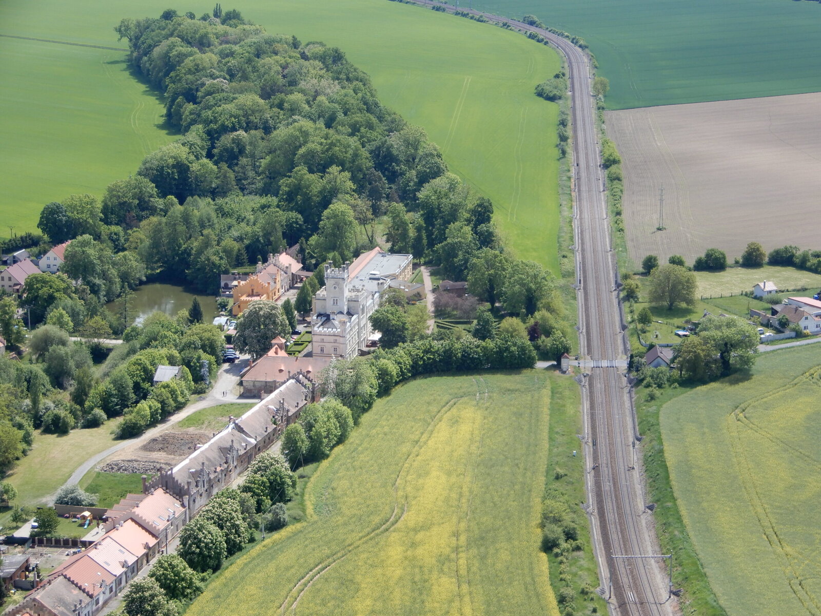 Na snímku je náš novorenezanční zámek s charakteristickými věžemi zachycen ze všech úhlů, a to včetně zámecké zahrady, pokračujícího parku a přilehlého okolí.