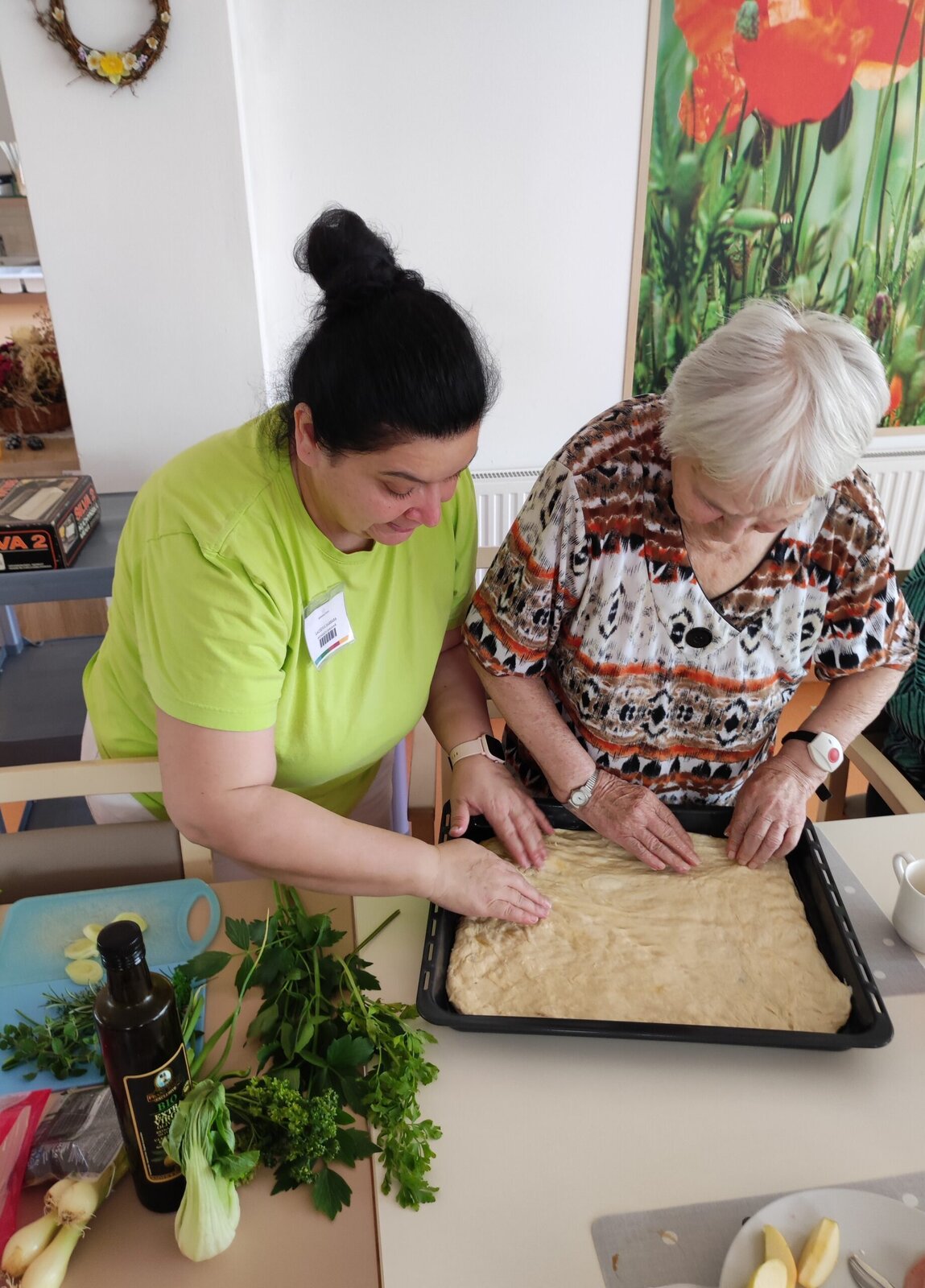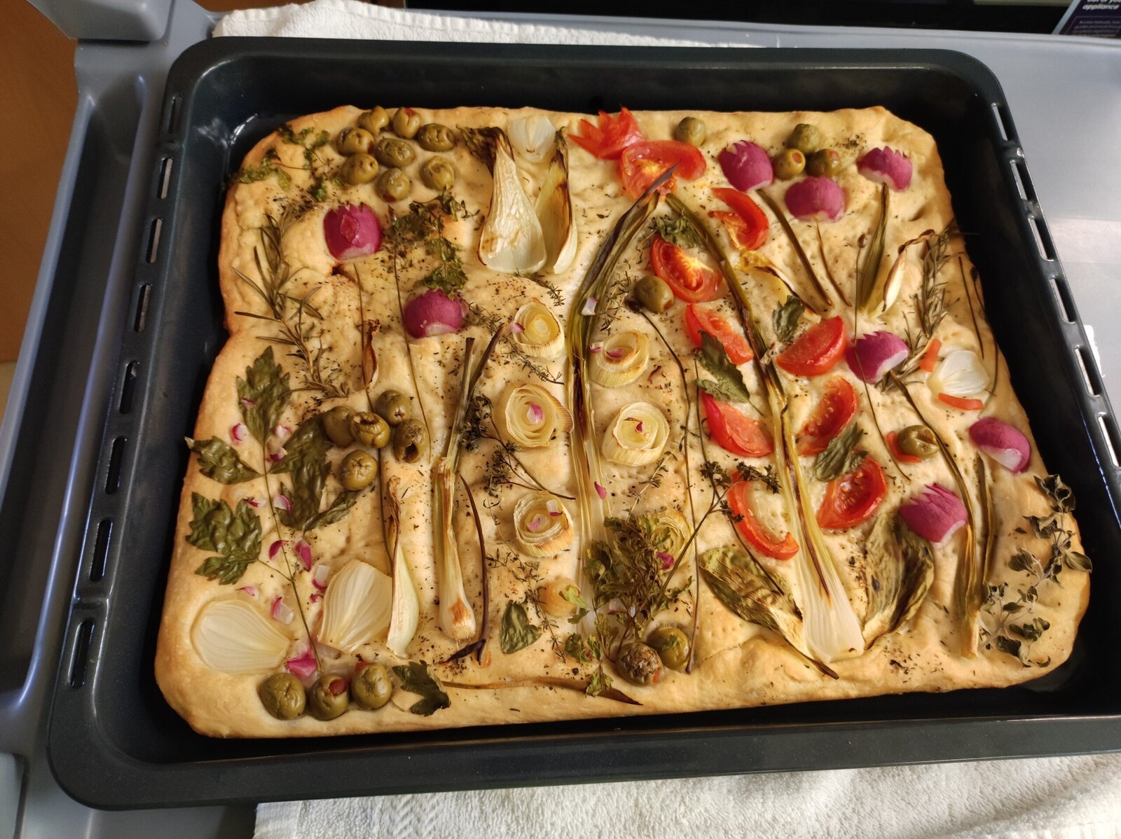 Tentokrát jsme si připravili italský chléb focacciu. Dnes je považován za typický druh pečiva, který v Itálii najdeme, ačkoliv údajně do Itálie dorazil z Řecka. Co nás velmi překvapilo, bylo zdobení zeleninou. Vyzdobili jsme jej podle vlastních představ, vypadal krásně a chutnal ještě lépe.