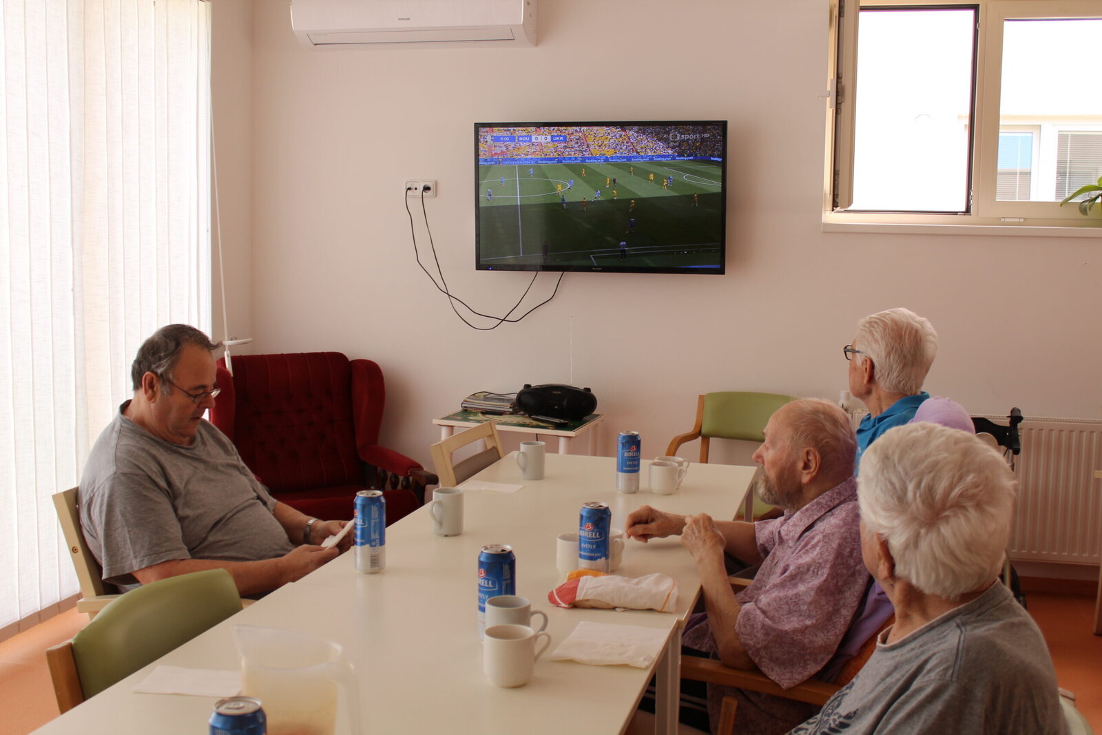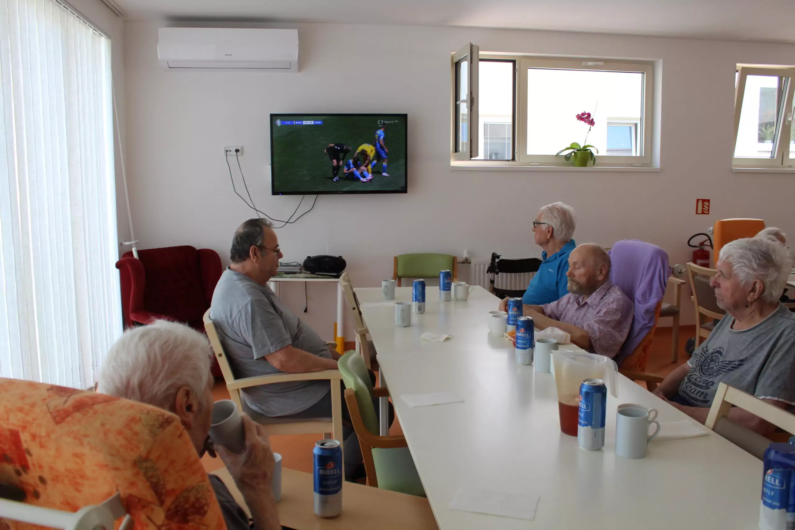 Probíhající Mistrovství Evropy ve fotbale si klienti v Senevida Zlín nenechali ujít. Ačkoliv dnes podle jejich slov nehrají jejich oblíbené týmy, sledovali zápas s hlasitým fanděním. "Zůstaneme neutrální," podotkl jeden z klientů, který zápas sledoval se zápalem a hráčům radili. Nechybělo ani drobné pohoštění.