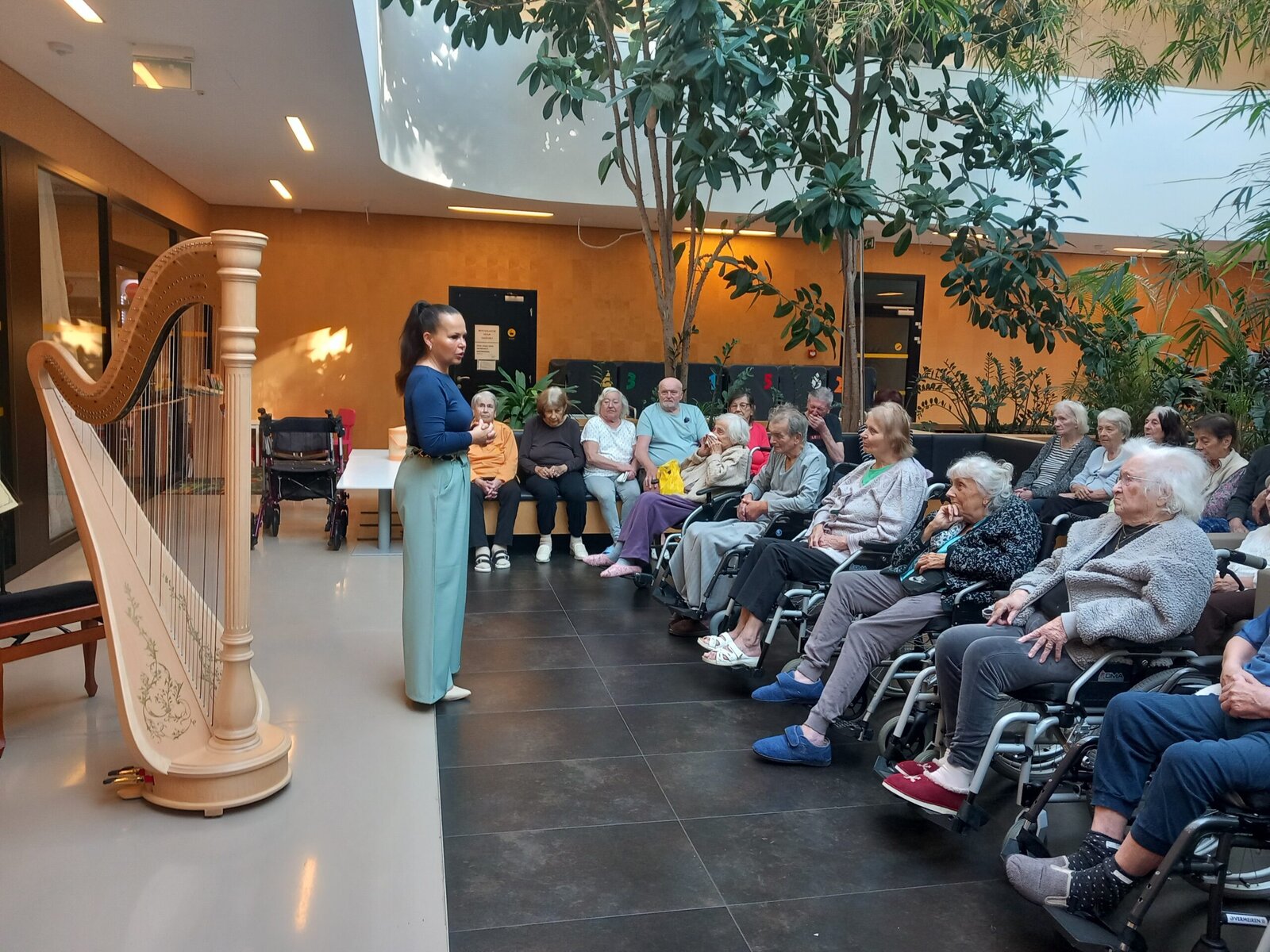Mezinárodní den seniorů jsme v Senevida Zátiší oslavili harfovým koncertem Kataríny Ševčíkové. Klienti si vychutnali krásné melodie a zároveň se dozvěděli zajímavosti o tomto jednom z nejstarších hudebních nástrojů. Hudba navodila příjemnou atmosféru a přinesla radost i klid. Oslava byla důstojným připomenutím významu starších lidí v naší společnosti. Jak lépe slavit než prostřednictvím hudby, která spojuje generace.