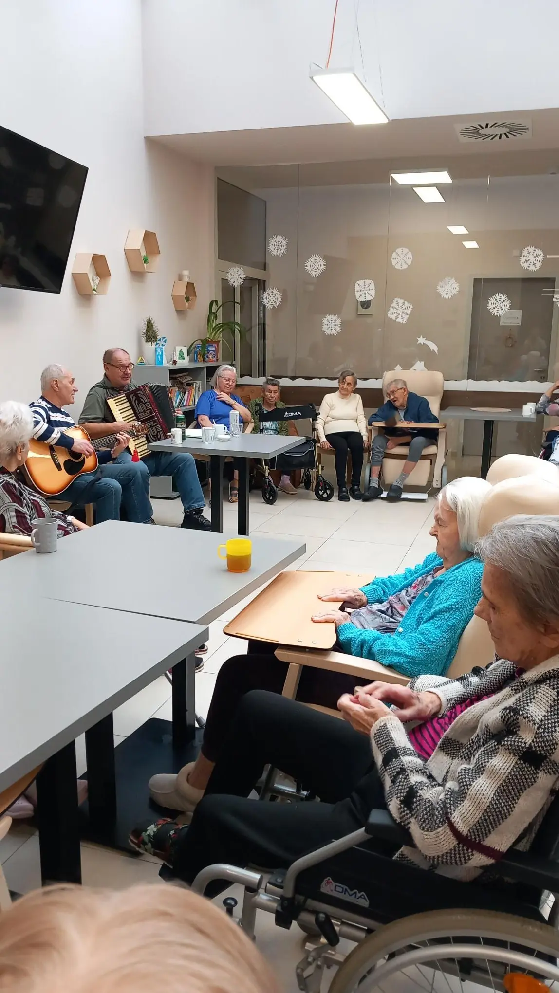 Do Senevida Lázně Bohdaneč přijeli oblíbení muzikanti s harmonikou a kytarou.🪗🎸 Tato hudební aktivita je mezi klienty velmi vyhledávaná. Zpívali se známé české písně, tleskalo se a tančilo.😊🎤 Na závěr se přidala píseň na přání a již nyní se těšíme na příště.❤️