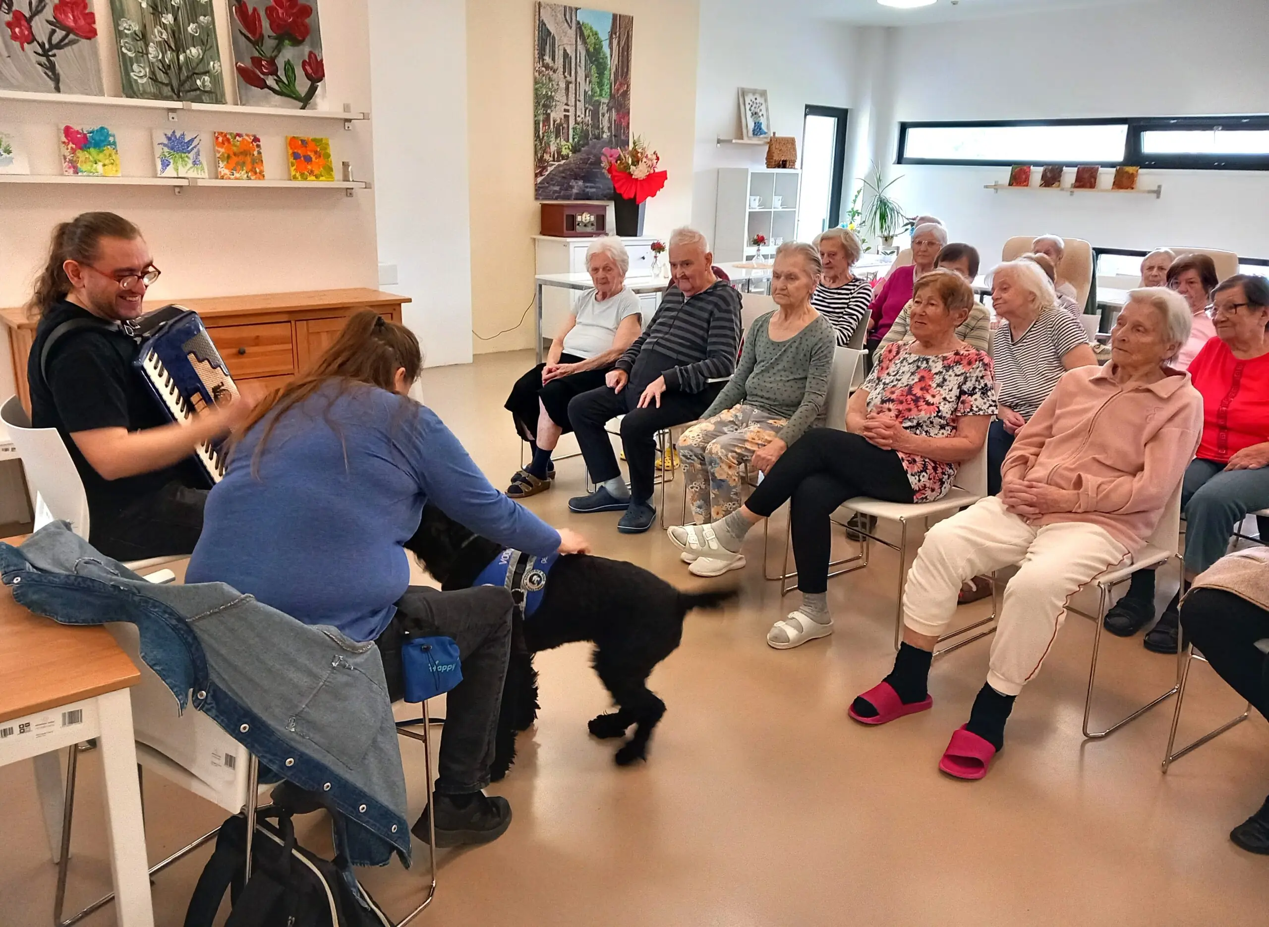 V Senevida Zátiší jsme opět rádi přivítali oblíbeného harmonikáře Míru. Tentokrát si pro nás připravil milé překvapení – dorazil se svou partnerkou a roztomilou psí společnicí. Jeho vystoupení obohatily krásné melodie, které navodily příjemnou atmosféru. Společně jsme zpívali známé písně, smáli se a prožili pohodové odpoledne plné radosti, hudby a přátelské pohody, na které budeme rádi vzpomínat.