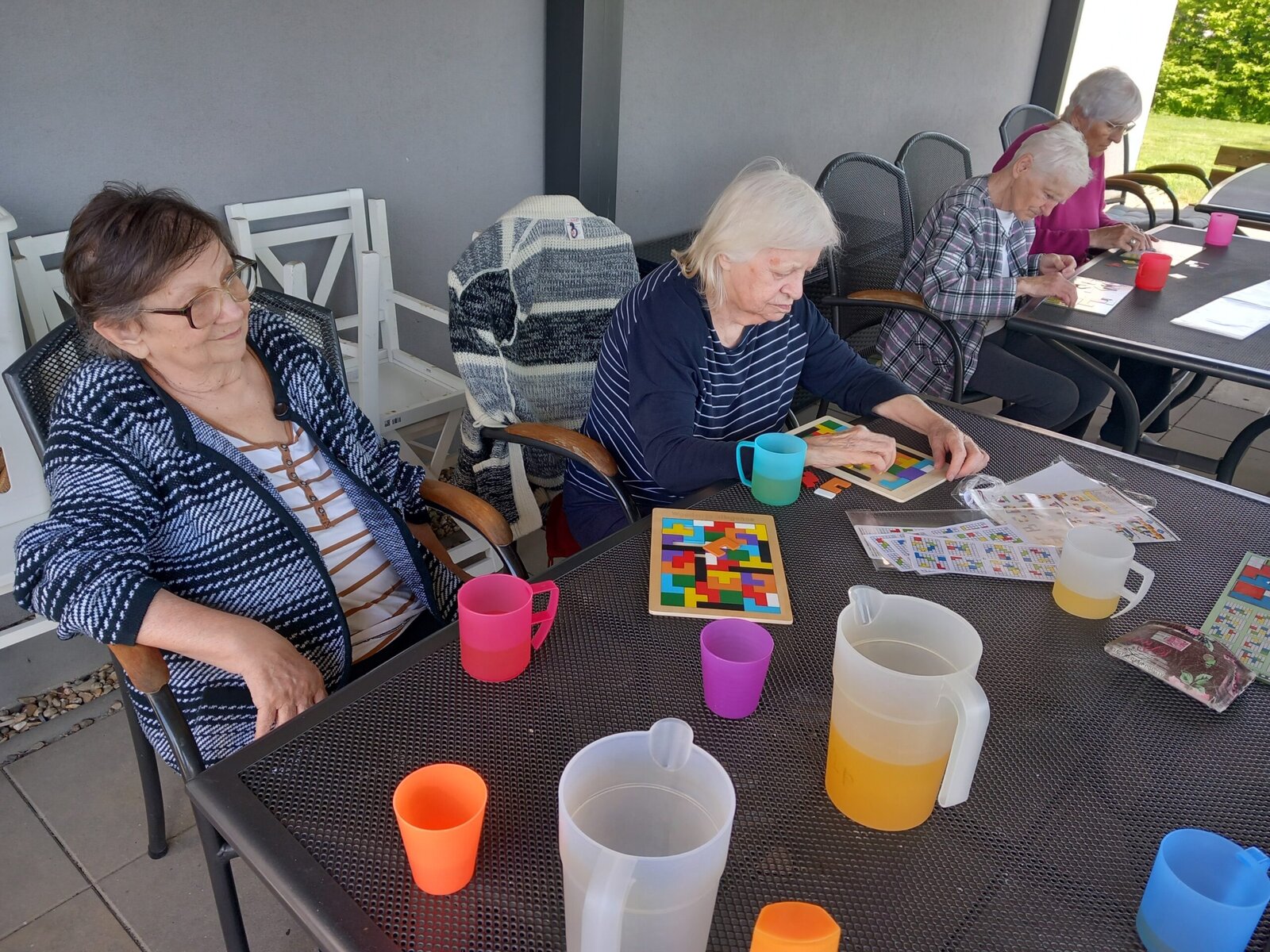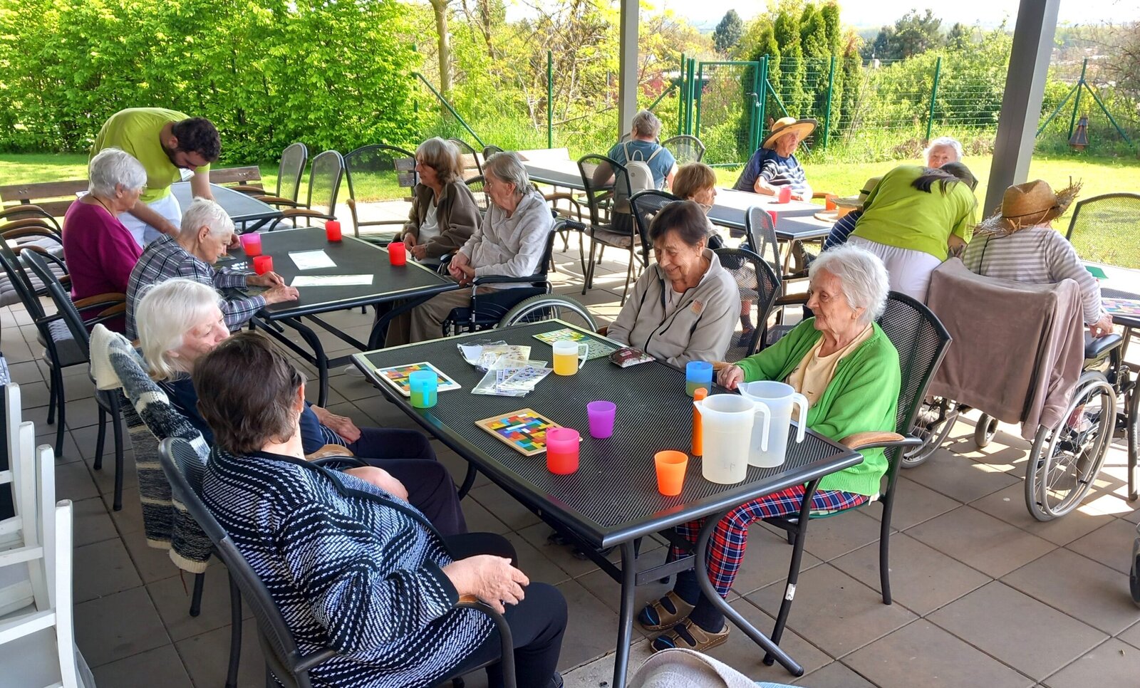 Krásného jarního počasí jsme plně využili k odpočinku na terase, kde jsme si společně uspořádali malý herní klub. V příjemné atmosféře jsme hráli deskové i karetní hry, povídali si a užívali si sluneční paprsky. Byl to pohodový den plný smíchu, přátelství a zábavy, který jsme si všichni velmi užili.