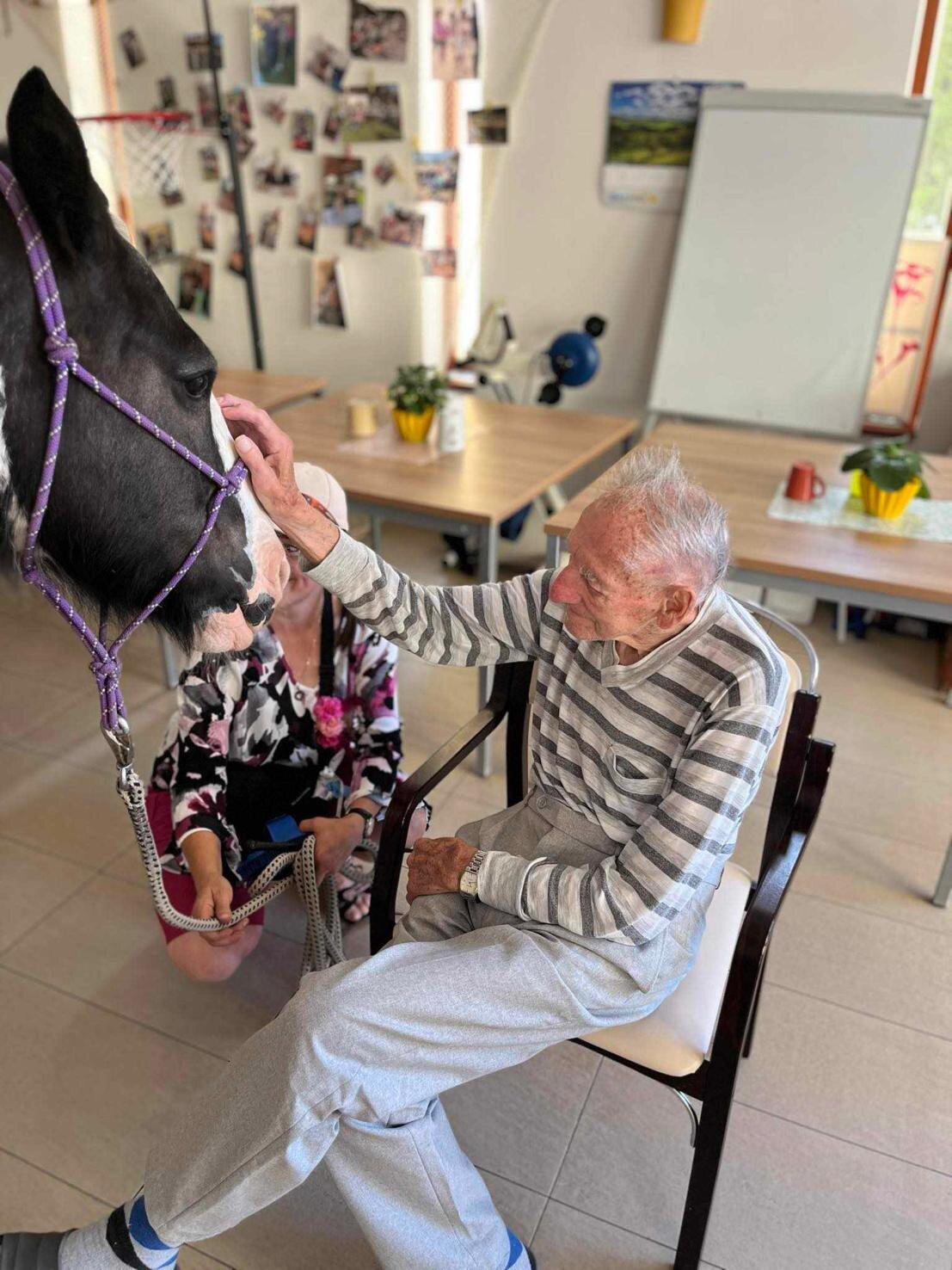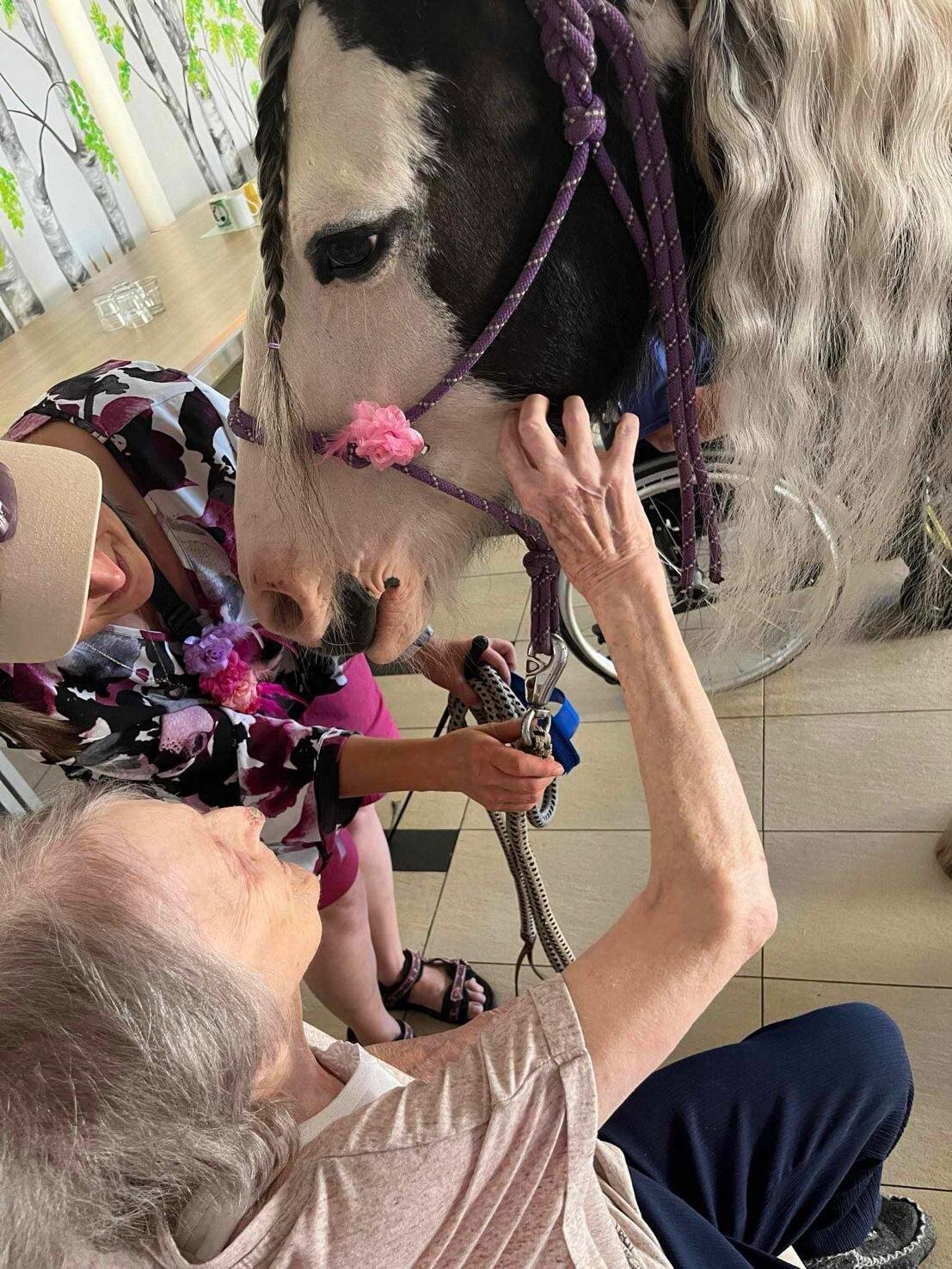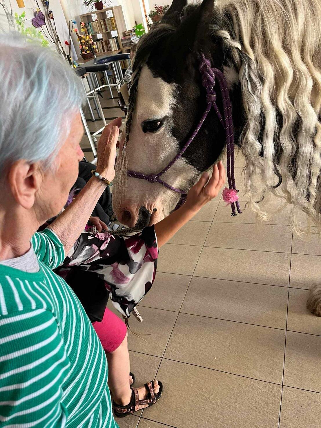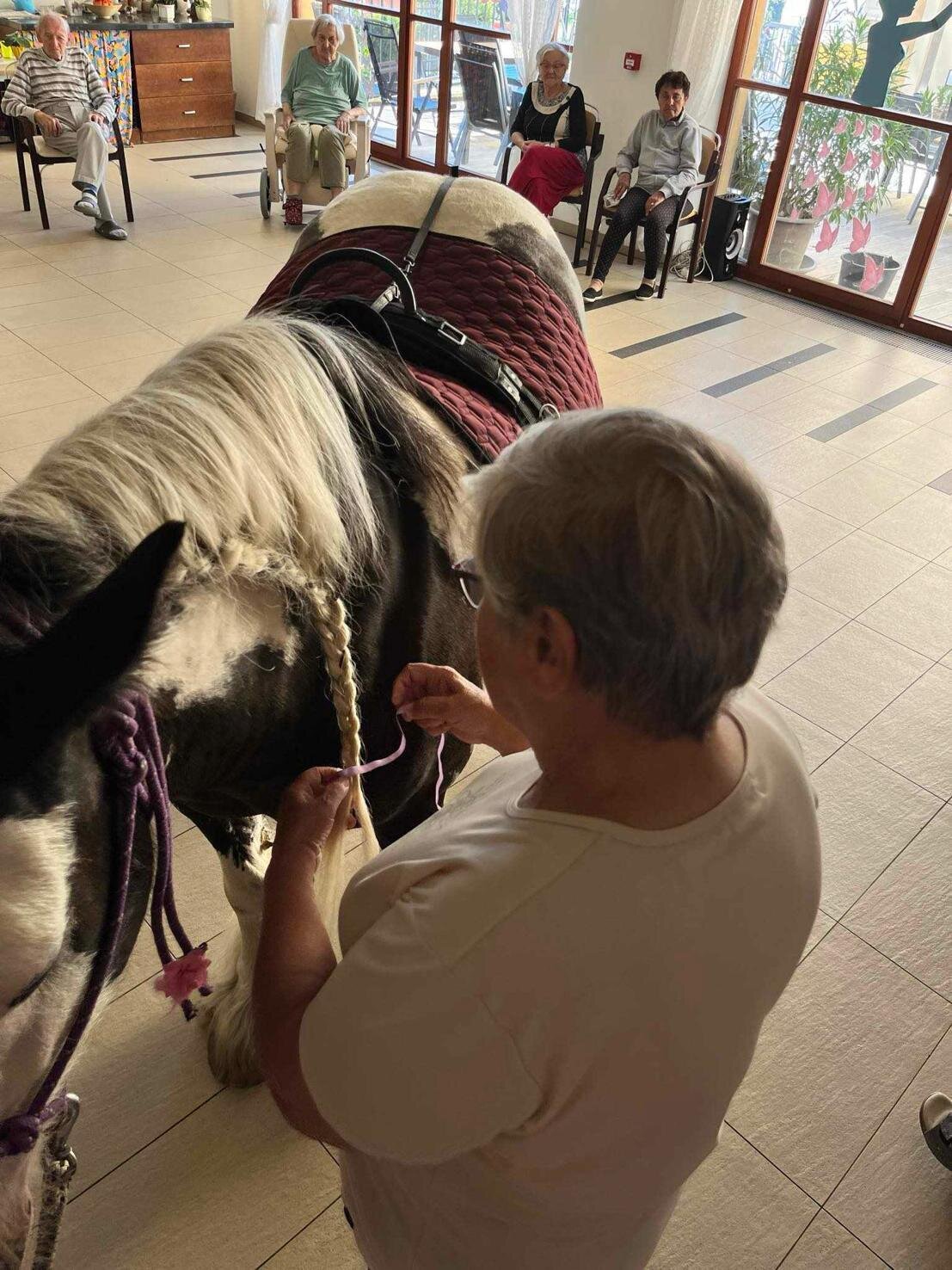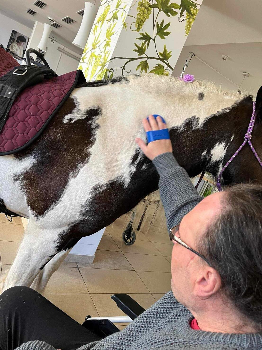 Klienty v Senevida Sychrov znovu navštívila paní Soňa Trsková s kobylkou Nevadou. Návštěva probíhala formou individuální hipoterapie, kdy každý ze zúčastněných klientů měl Nevadu na pár minut jen sám pro sebe. Paní Trskové moc děkujeme, že k nám pravidelně dochází a klienti mají možnost prožívat tento skvělý zážitek opakovaně.