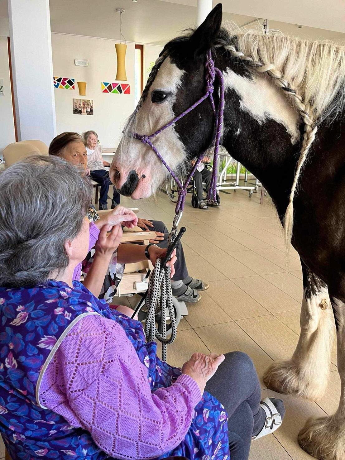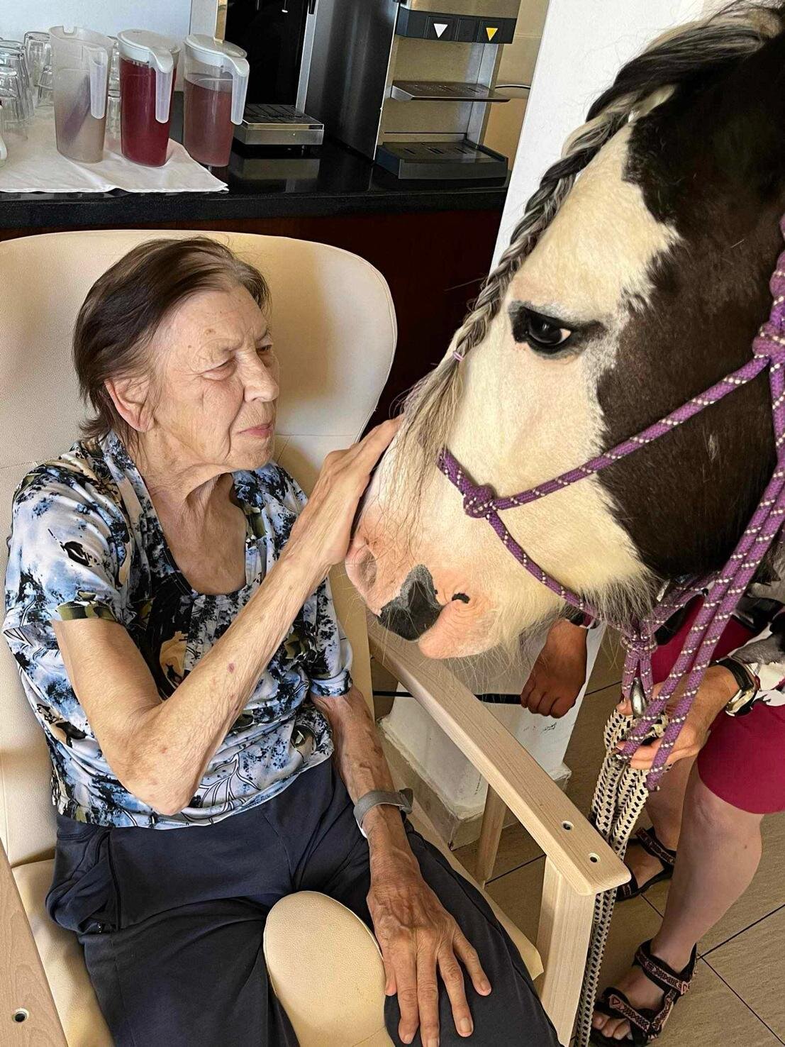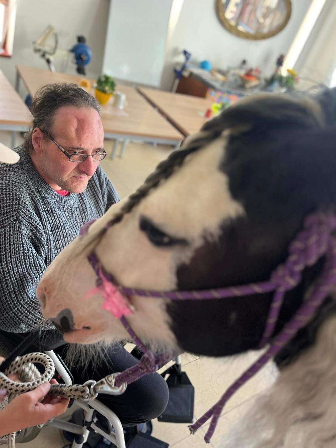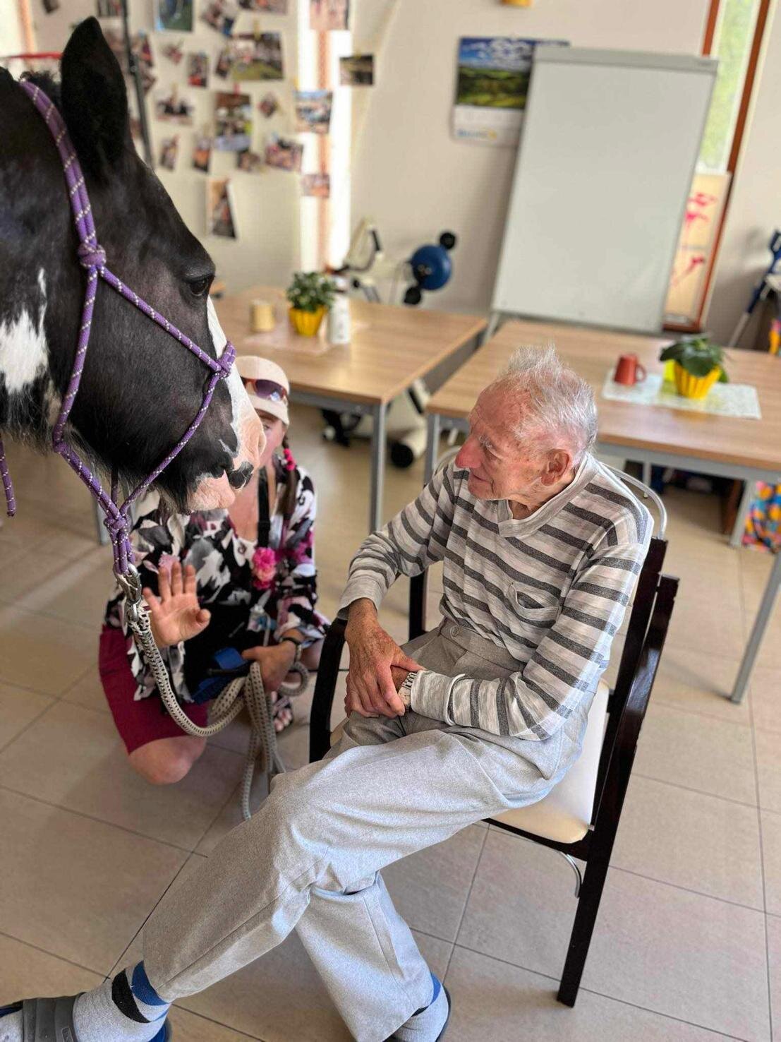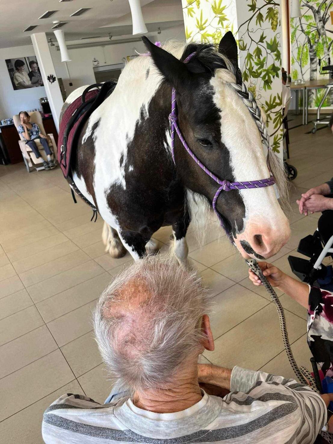 Klienty v Senevida Sychrov znovu navštívila paní Soňa Trsková s kobylkou Nevadou. Návštěva probíhala formou individuální hipoterapie, kdy každý ze zúčastněných klientů měl Nevadu na pár minut jen sám pro sebe. Paní Trskové moc děkujeme, že k nám pravidelně dochází a klienti mají možnost prožívat tento skvělý zážitek opakovaně.