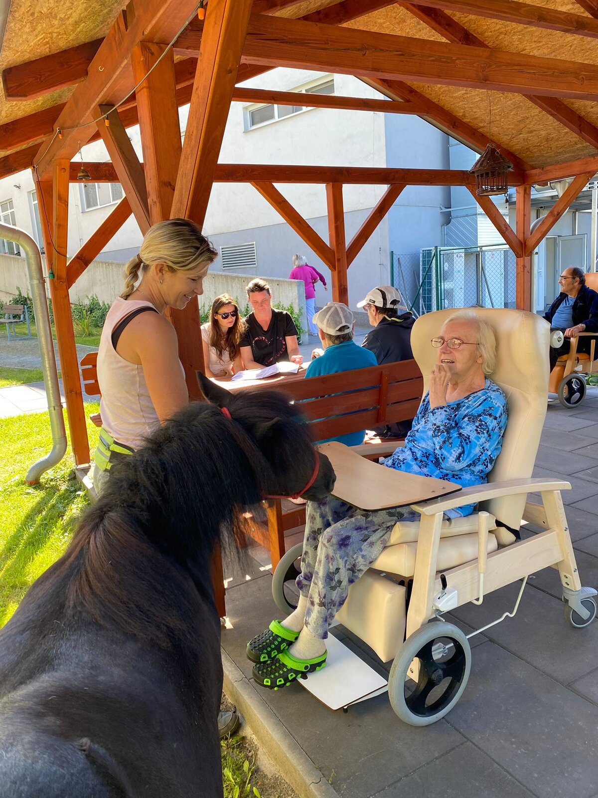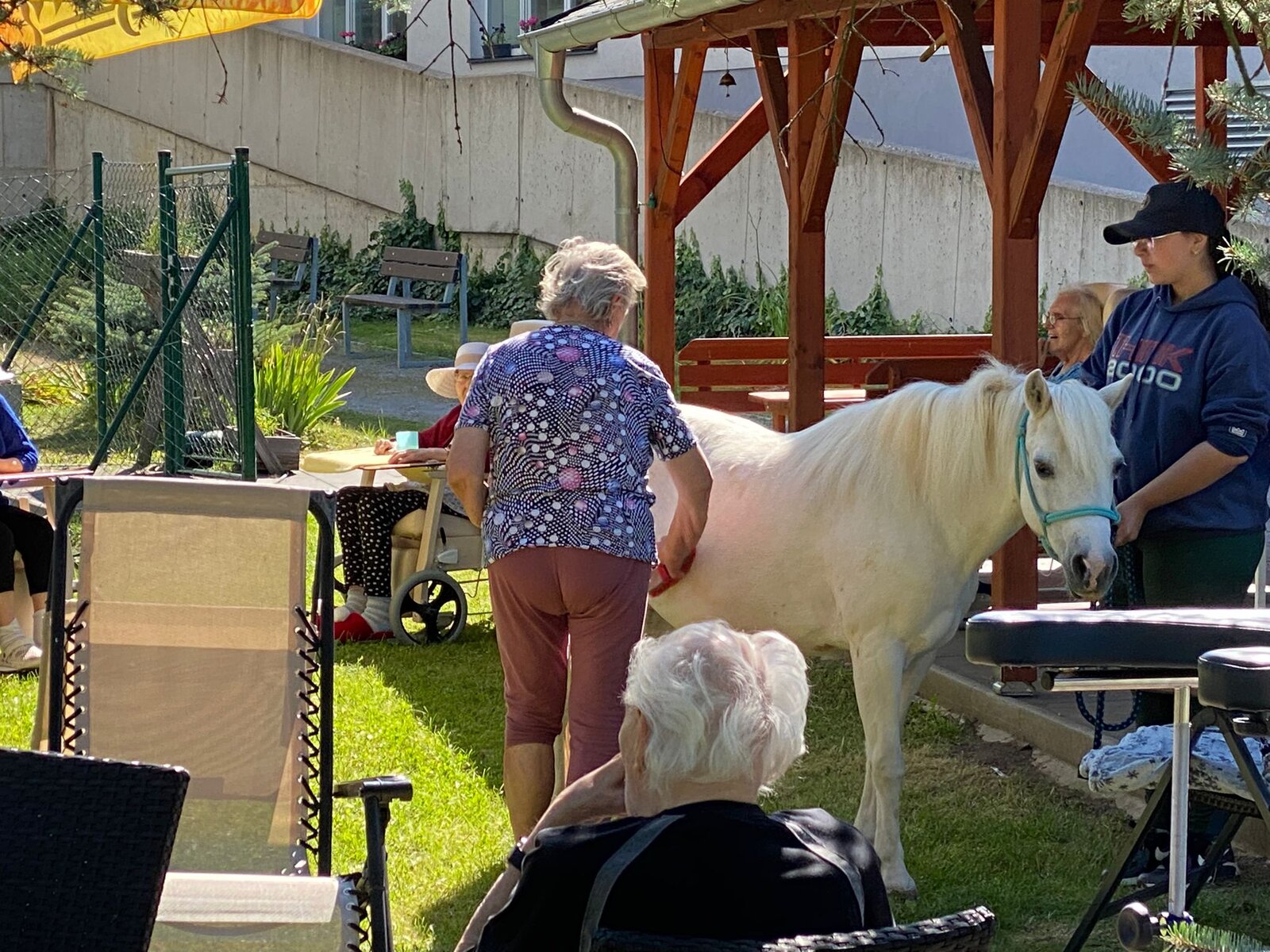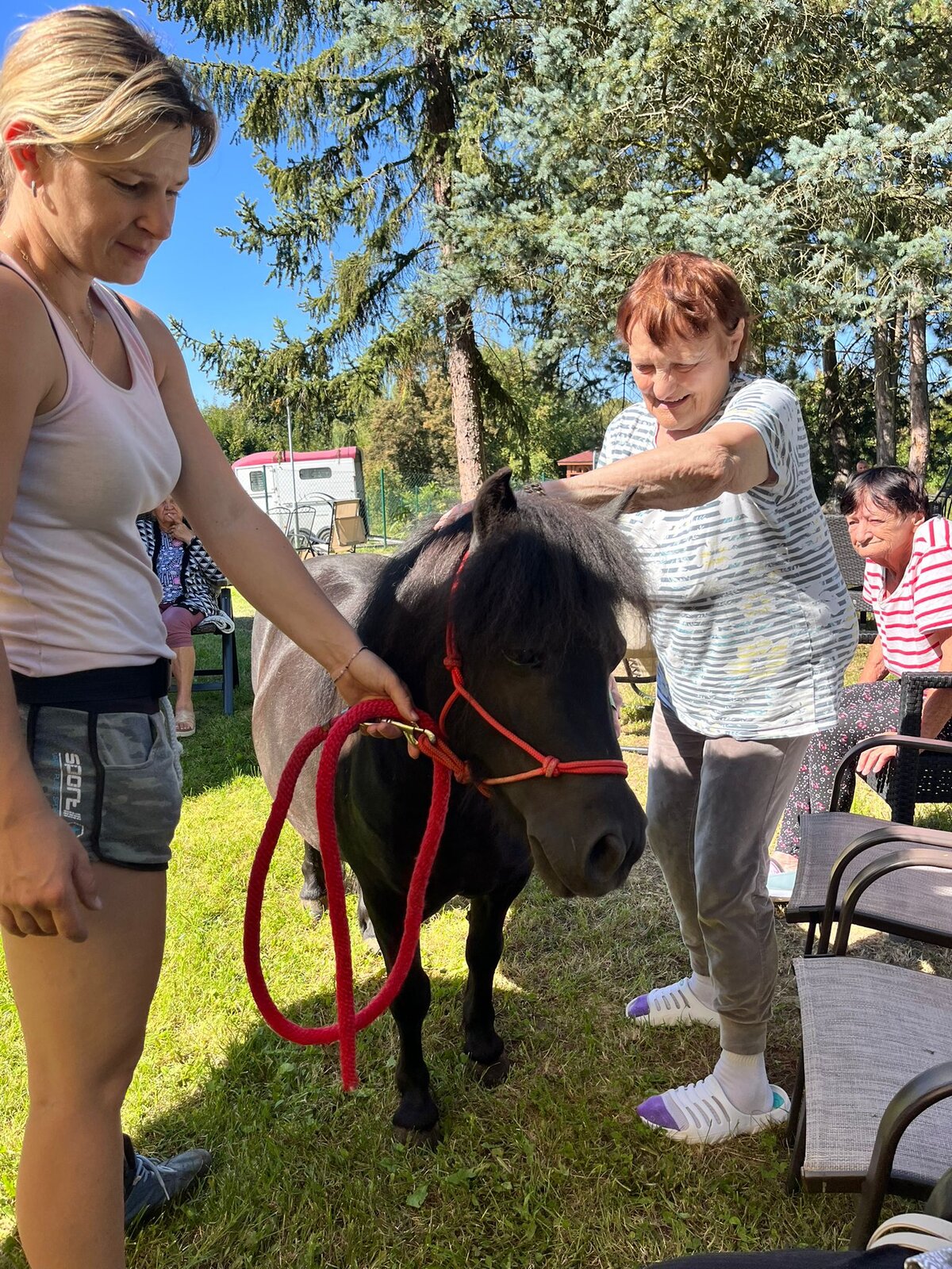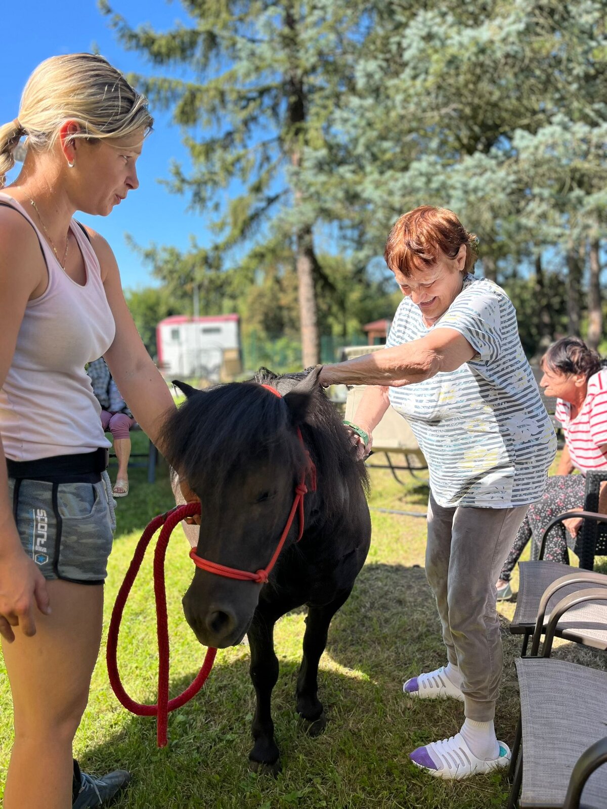 Úterní dopoledne klienti Senevida Česká Lípa strávili na zahradě se svými čtyřnohými kamarády z Českého Ranče. Ke Slávince a Diance se přidal další kamarád Sparty.😊