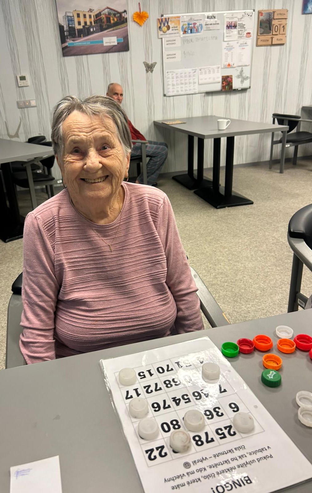 🎉 Dnešní bingo u nás mělo obrovský úspěch. 🎉 Naši klienti si společně užili odpoledne plné smíchu, napětí a radosti z každého vyhraného řádku. 💛 Bingo je skvělý způsob, jak trénovat paměť, pozornost i rychlé reakce - a hlavně přináší spoustu dobré nálady. 🤩🎯🎲