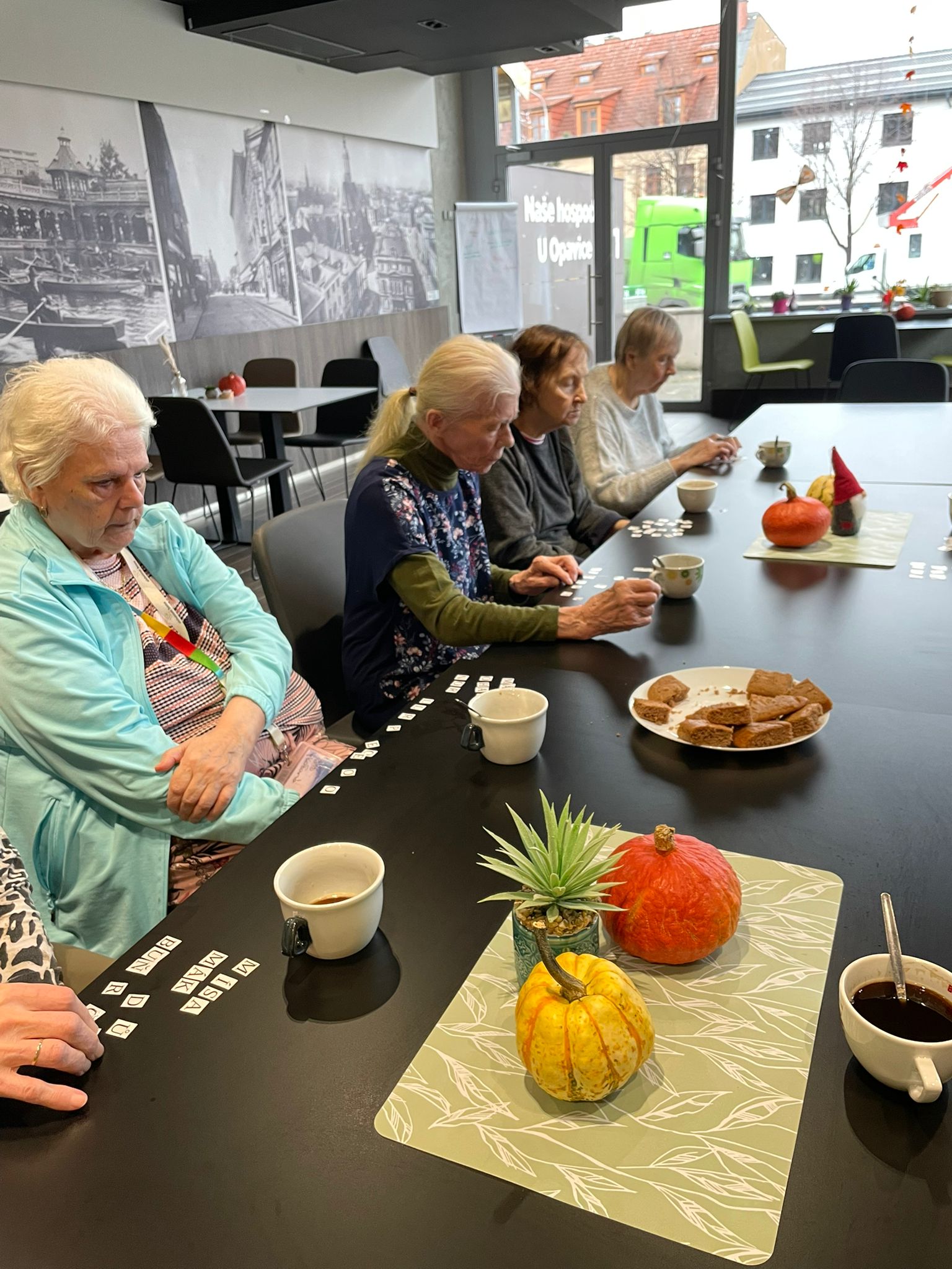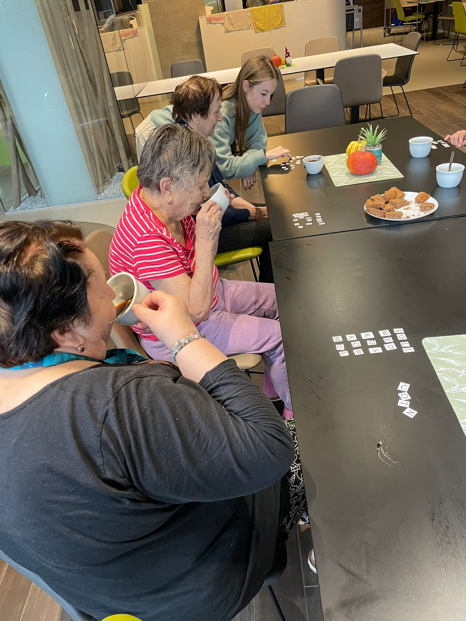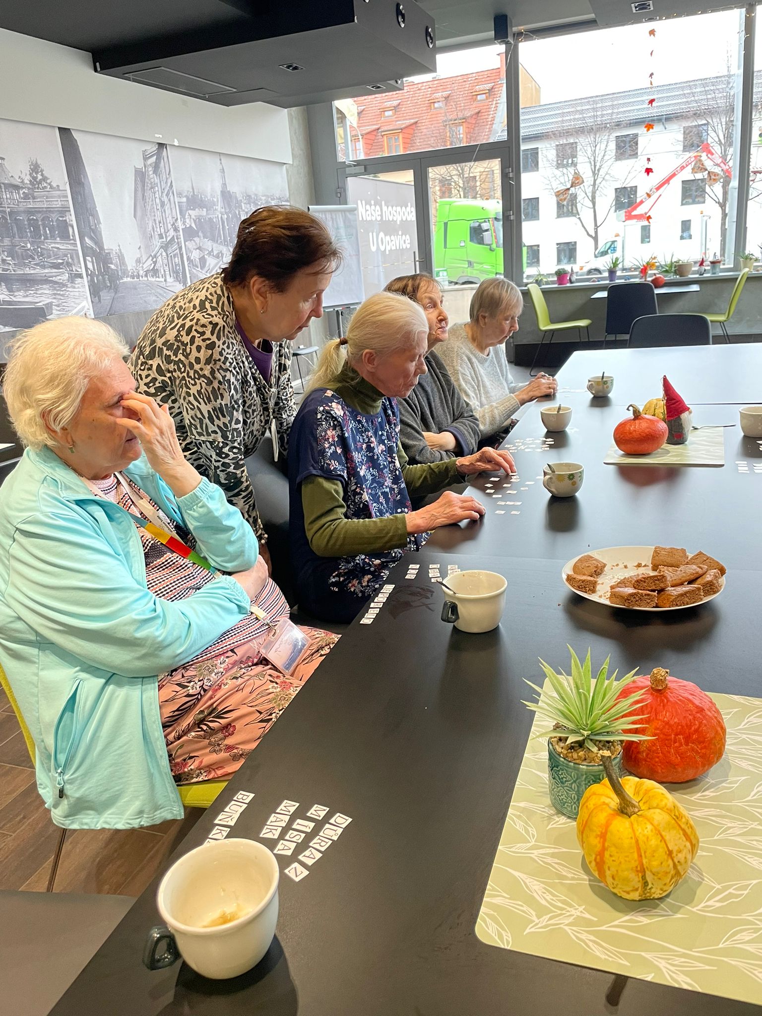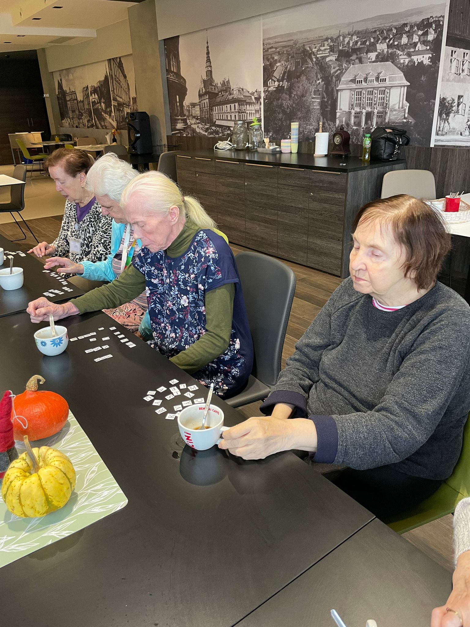 Aktivita přinesla nejen úsměvy, ale i milé momenty překvapení, když se podařilo vytvořit nečekaná či dlouhá slova. Atmosféra byla uvolněná, hravá a plná vzájemného povzbuzování.