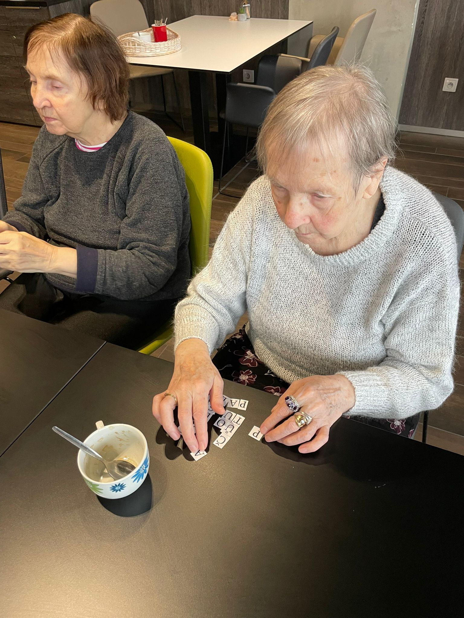 Společně jsme skládali slova z jednotlivých písmen a klienti si s chutí zkoušeli různé kombinace i délky slov.