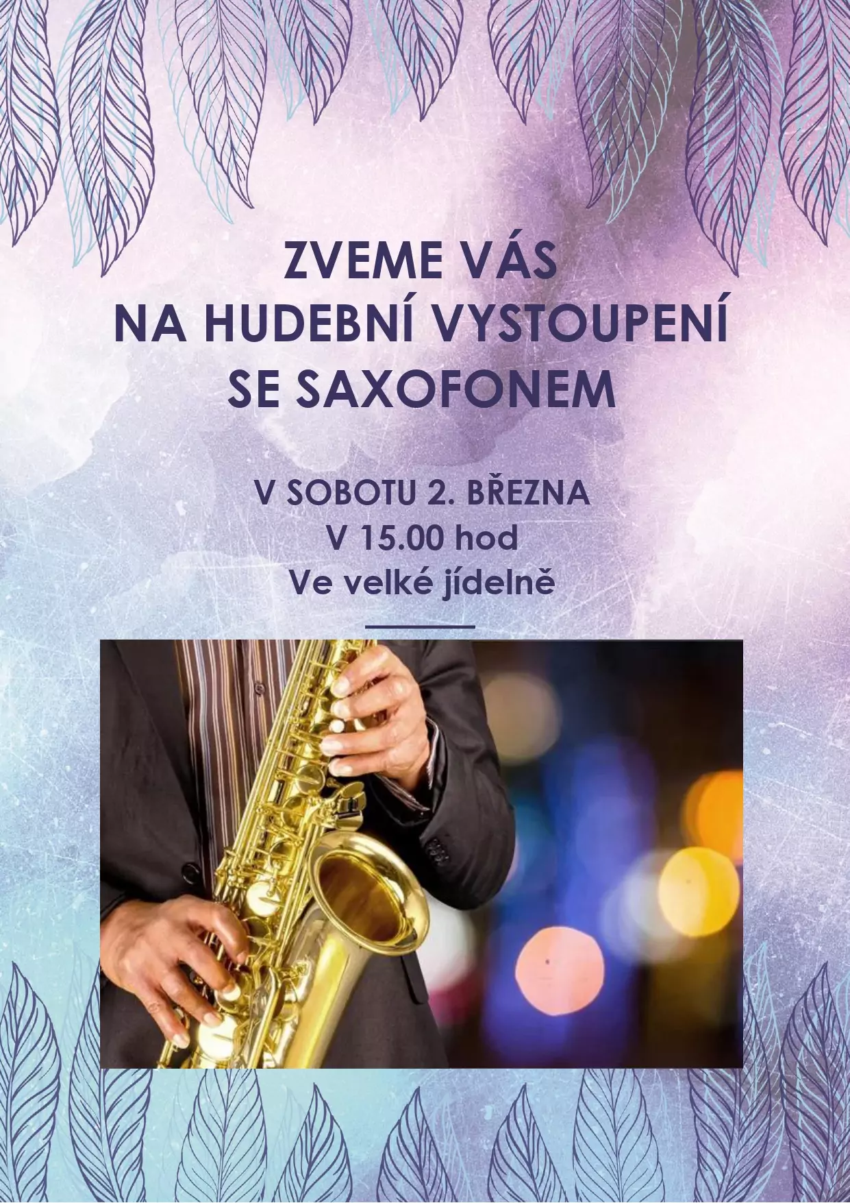 srdečně vás zveme na hudební vystoupení se saxofonem, které se uskuteční v zařízení Senevida Ostrava v sobotu 2.3.2024 od 15:00.