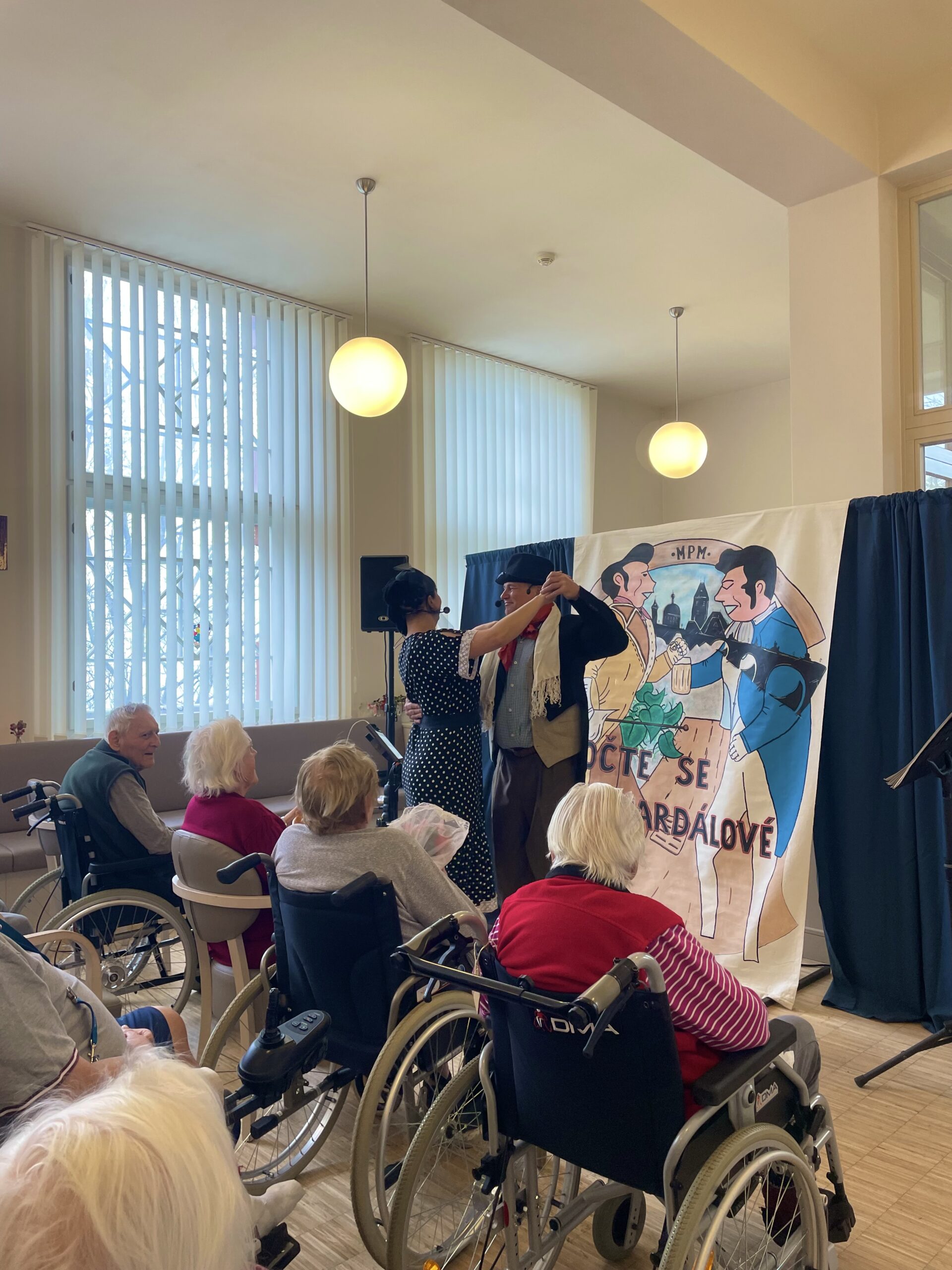 Do našeho domova Senevida Chrudim za námi přijelo oblíbené hudební vystoupení „Točte se pardálové", které přineslo spoustu radosti a dobré nálady.
