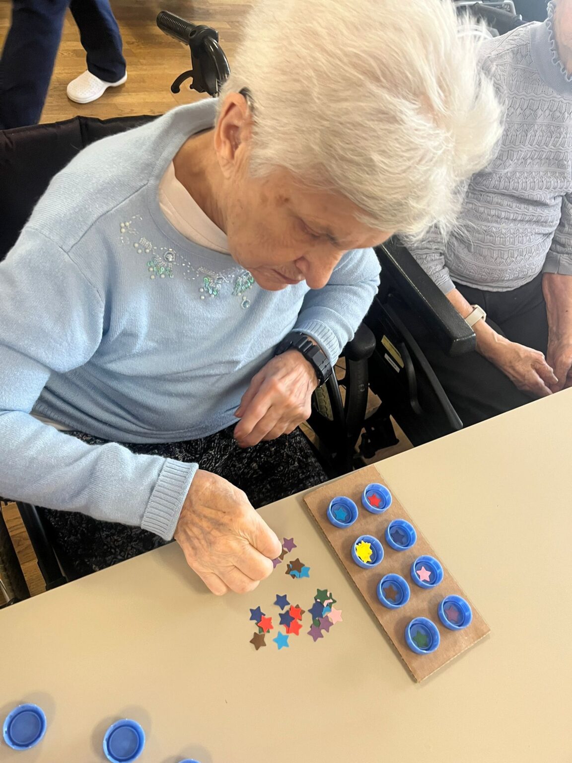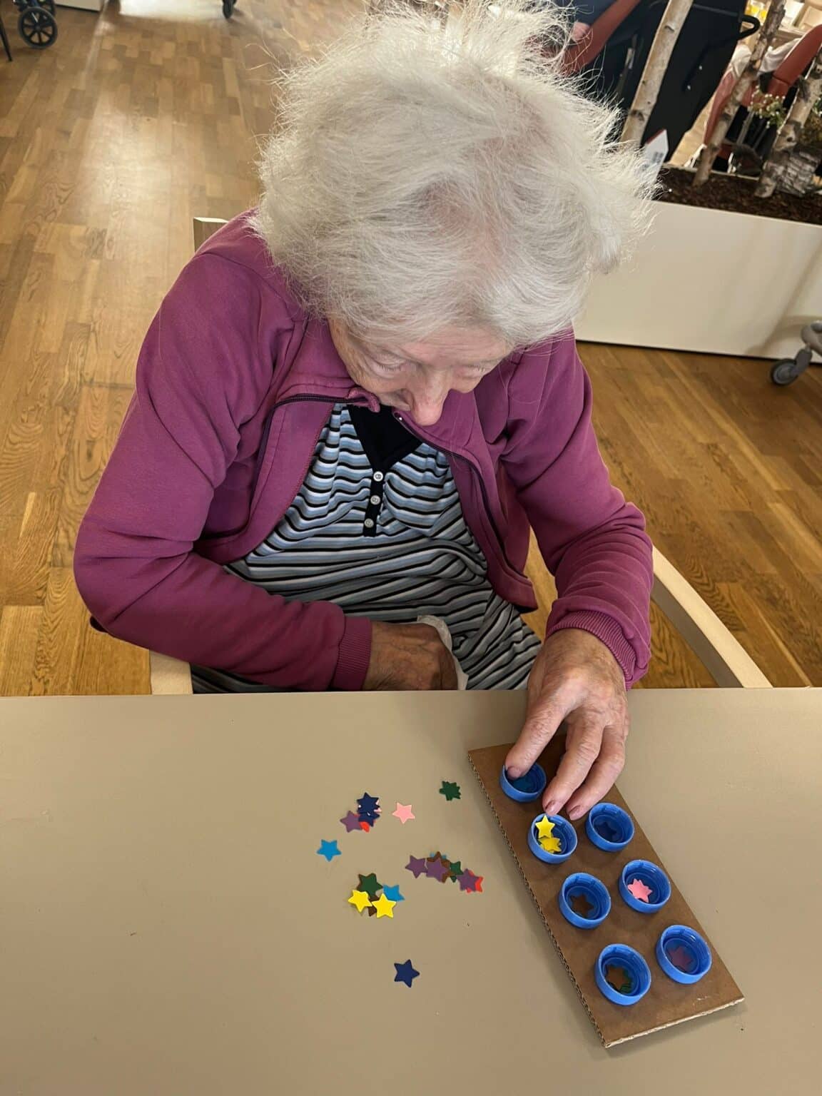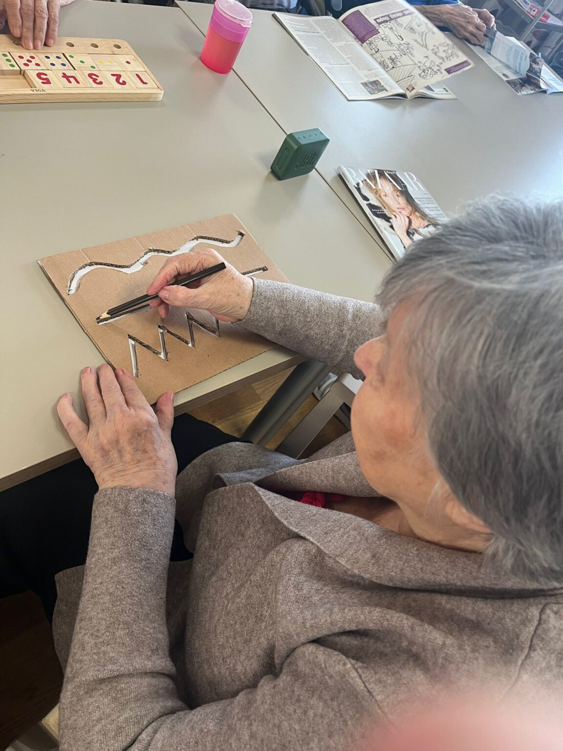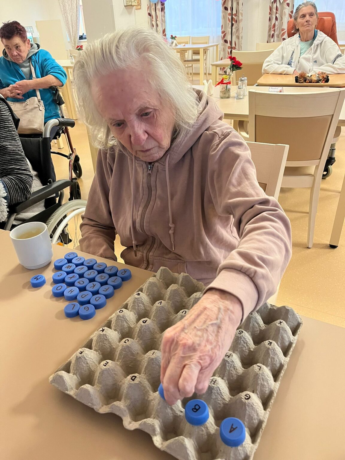 V Senevida v Modřicích si aktivizační pracovnice uvědomují důležitost individuálního přístupu ke každému klientovi. Proto se jedna z nich rozhodla vytvořit vlastní hry a pomůcky, které nejen plní terapeutickou funkci, ale zároveň přinášejí radost a zábavu.