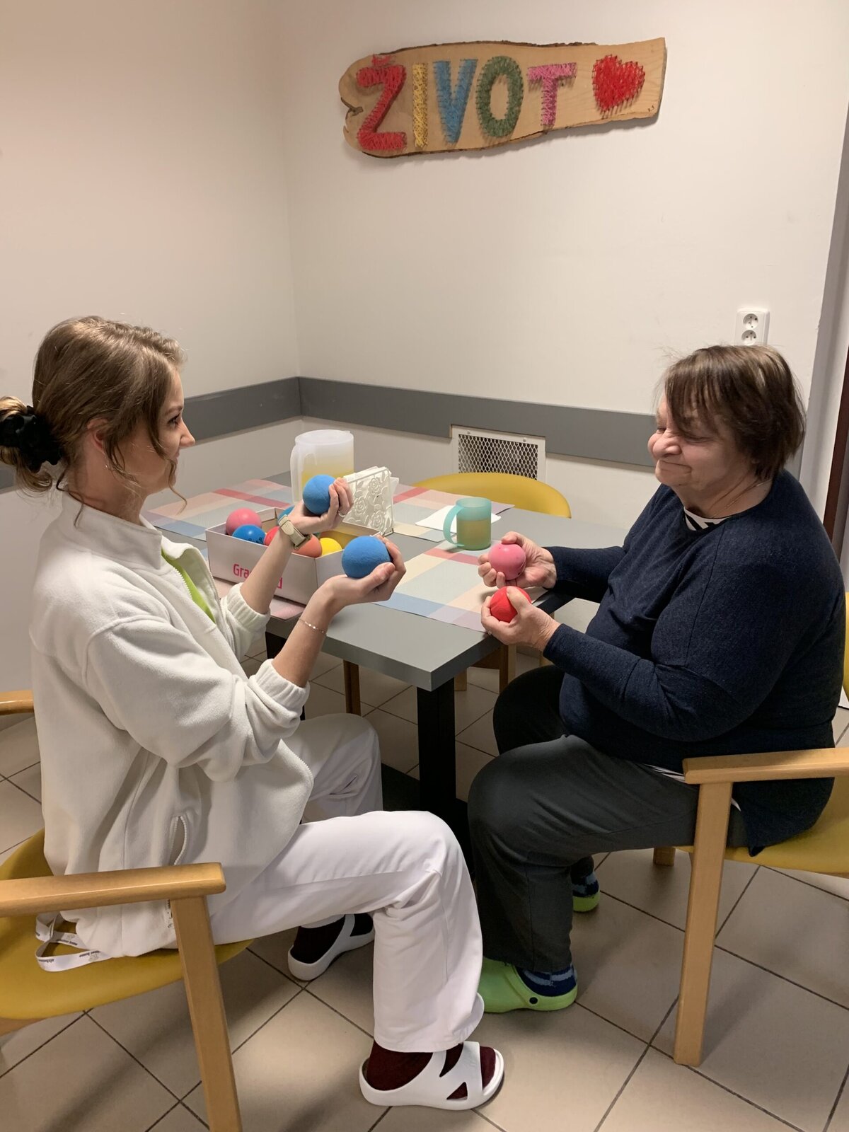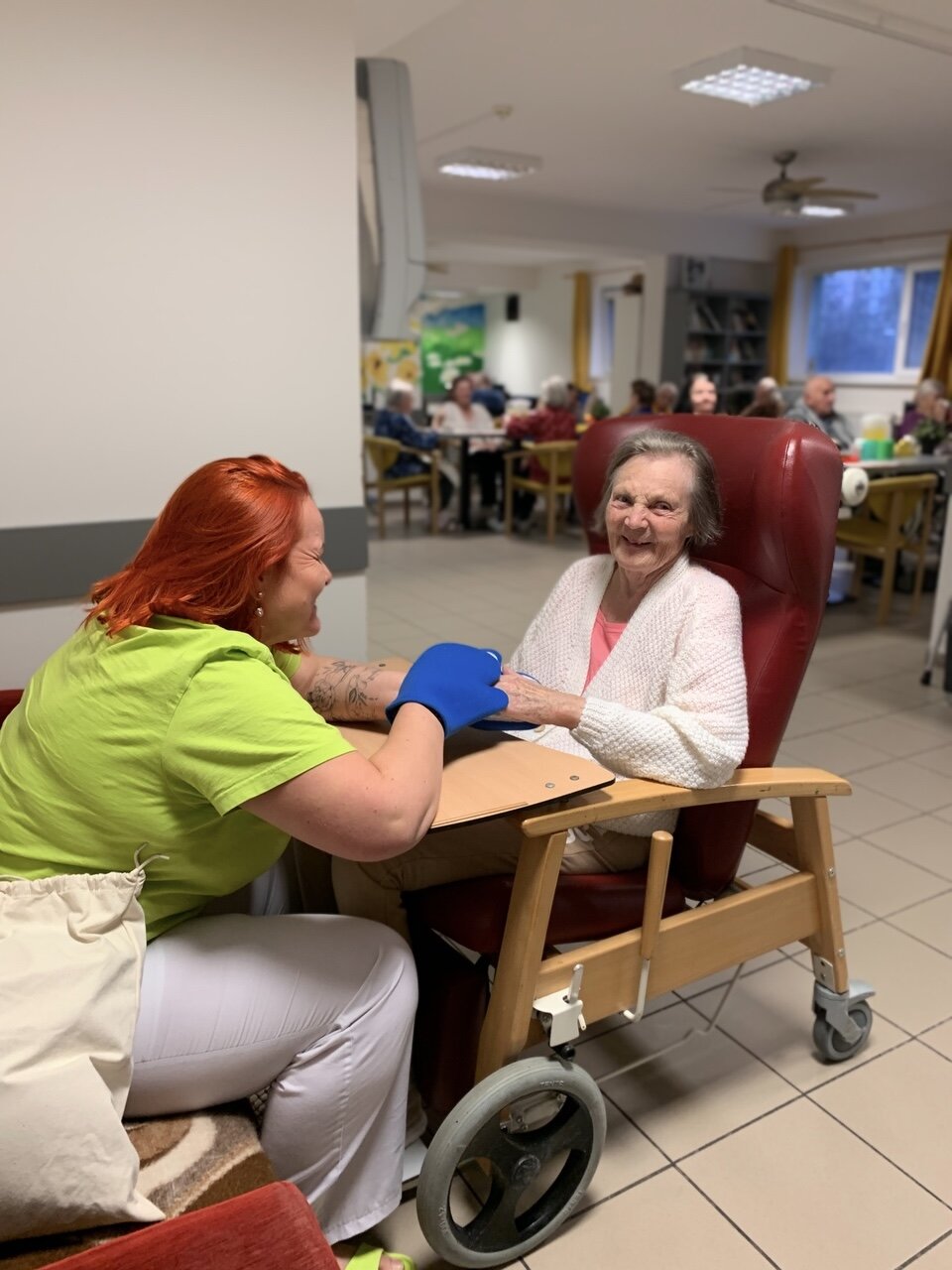 Naše milé aktivizační pracovnice se nám u nás v Senevida v Českých Budějovicích mnohdy věnují jednotlivě. Vždy je na domluvě, na jakou aktivitu zrovna máme náladu. Může jít o čtení, zpívání, péči o tělo nebo třeba domácí práce.![]()