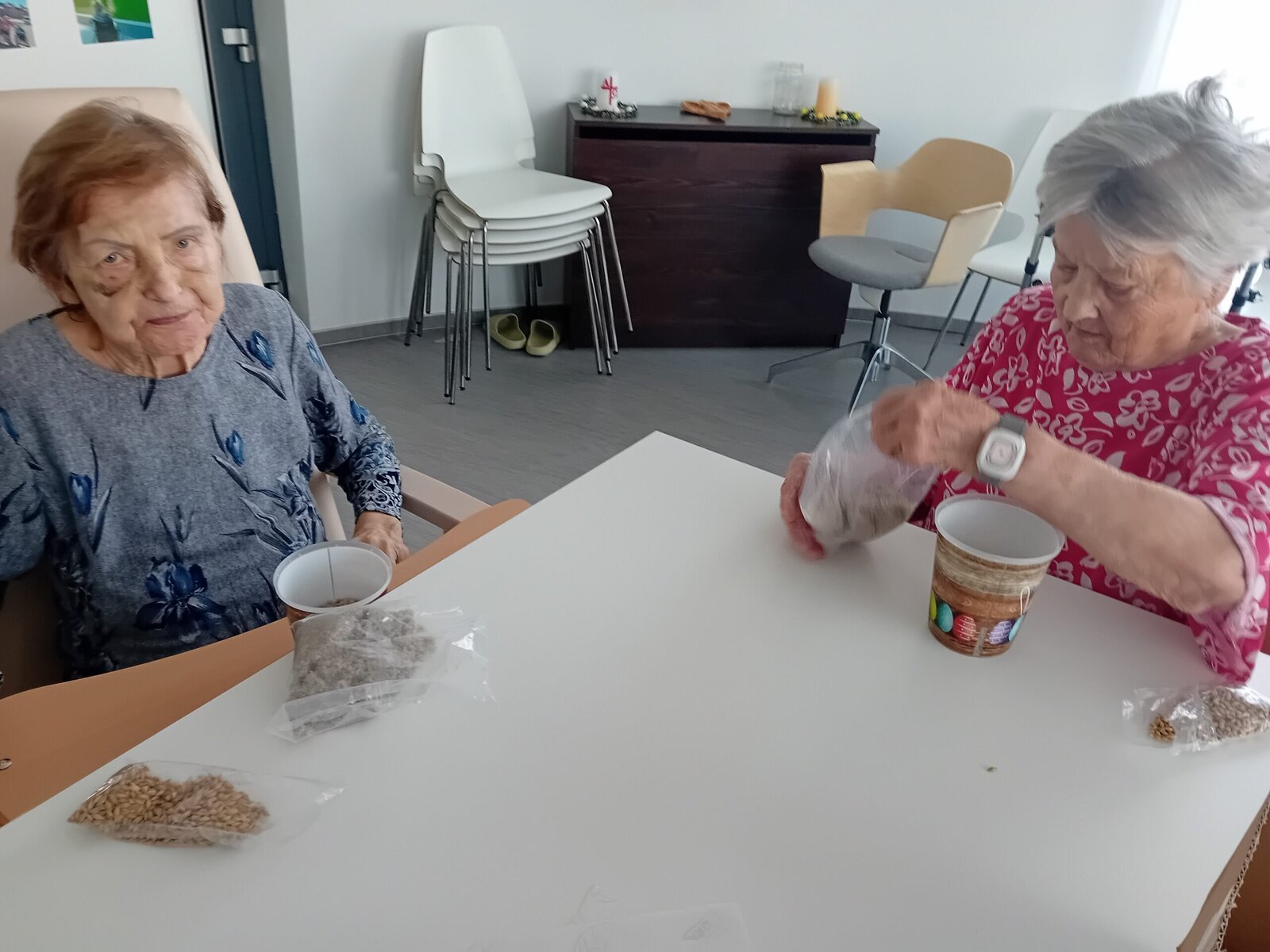 Krásné dekorační květináčky nám už zdobí v Senevida SLAVKOV U BRNA společenskou místnost. A teď už jen čekáme, až nám vyroste jarní osení, které jsme společně zaseli. Někteří klienti vyjádřili přání pozorovat každý den, jak osení roste. Proto si vzali to svoje na pokoje a mají ho pod bedlivým dohledem.