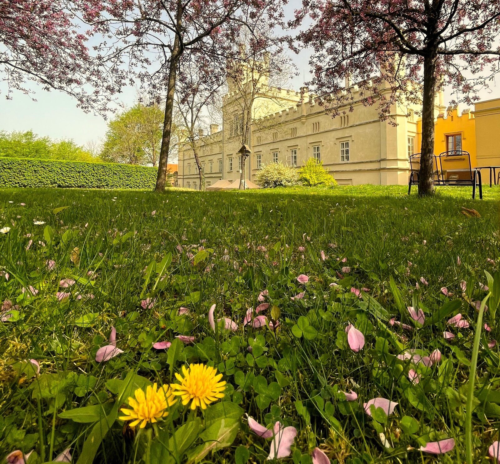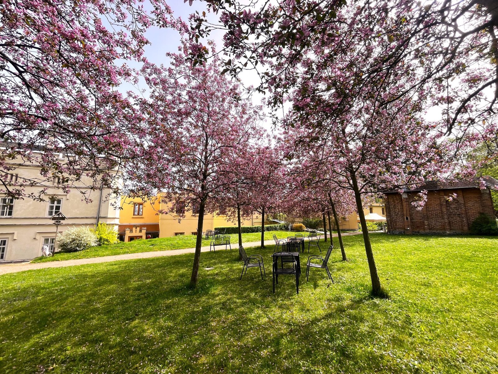 Letní teploty, a pýcha naší zámecké zahrady - okrasné jabloně, nám již na začátku dubna daly jasně najevo, že není nač čekat, a tak jsme připravili naši zámeckou zahradu k příjemnému posezení a odpočinku jak ve společnosti, tak soukromí ☀️