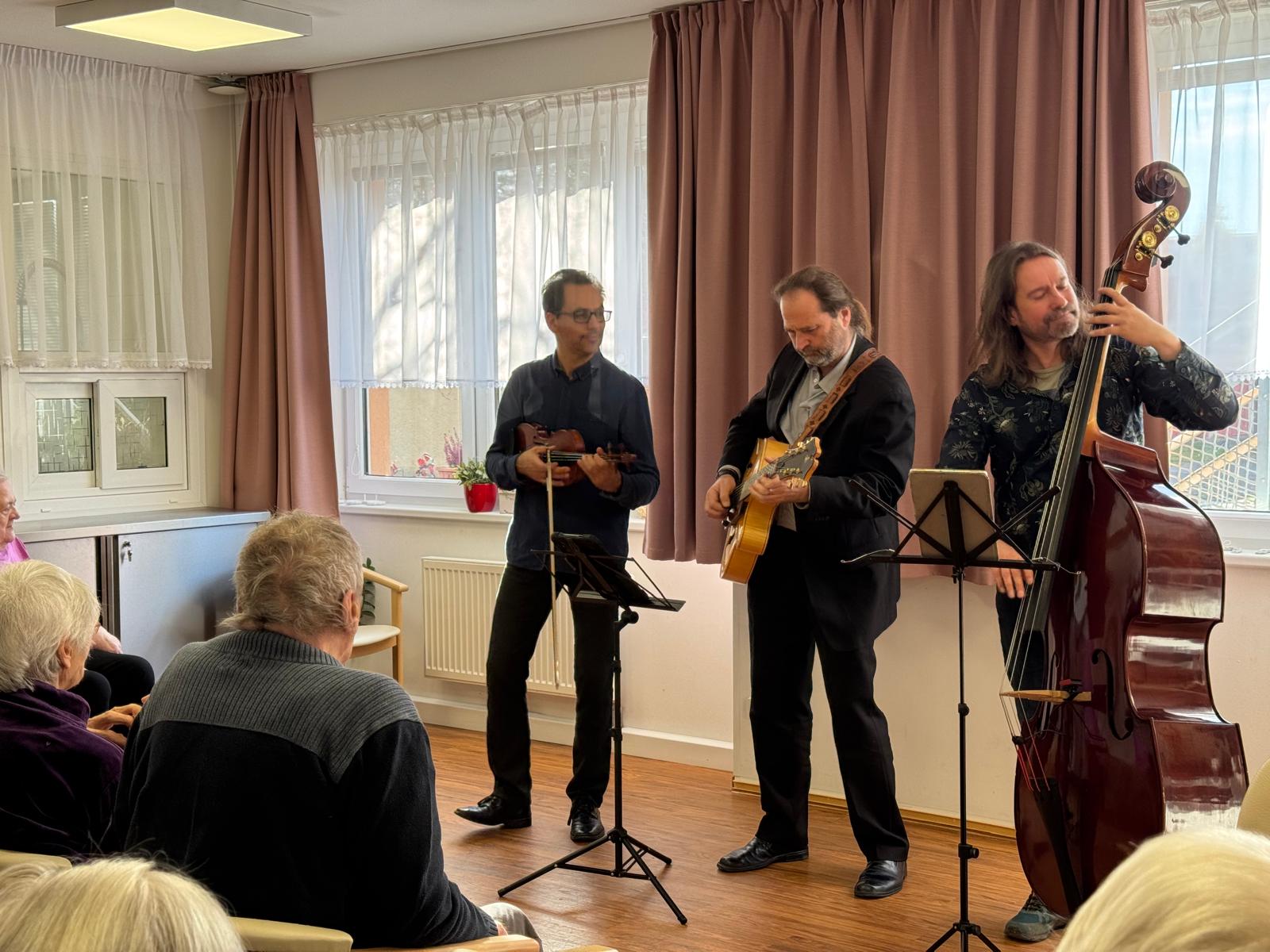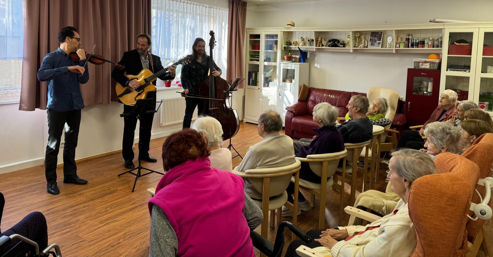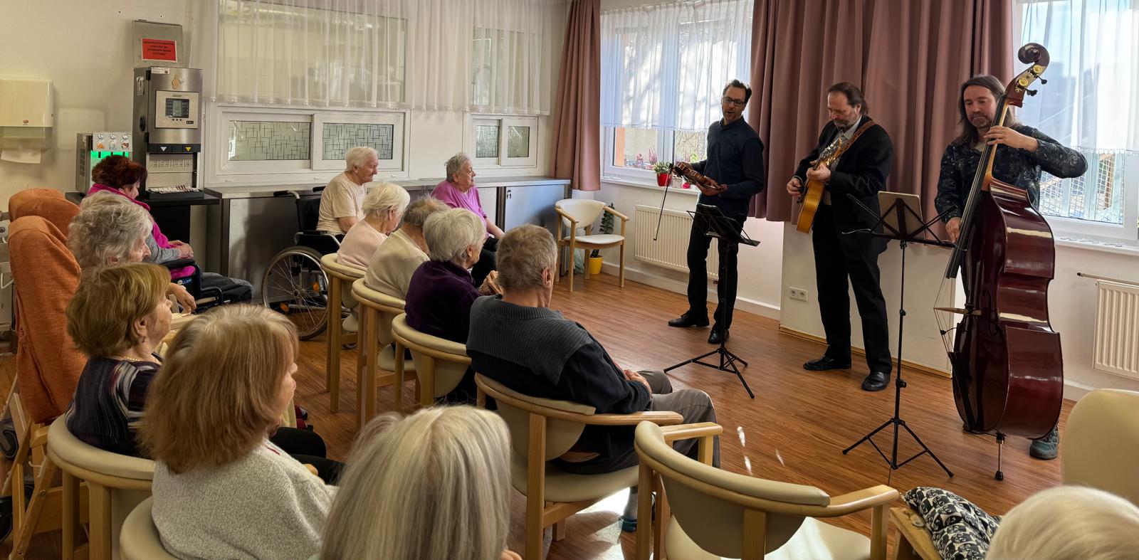 V Senevida Prácheň nás opět navštívila hudební skupina Jazzové perutě. 🎶🪕 Našim klientům zahráli k poslechu známé písně a krásně jim tak zpříjemnili den. 🙂💙