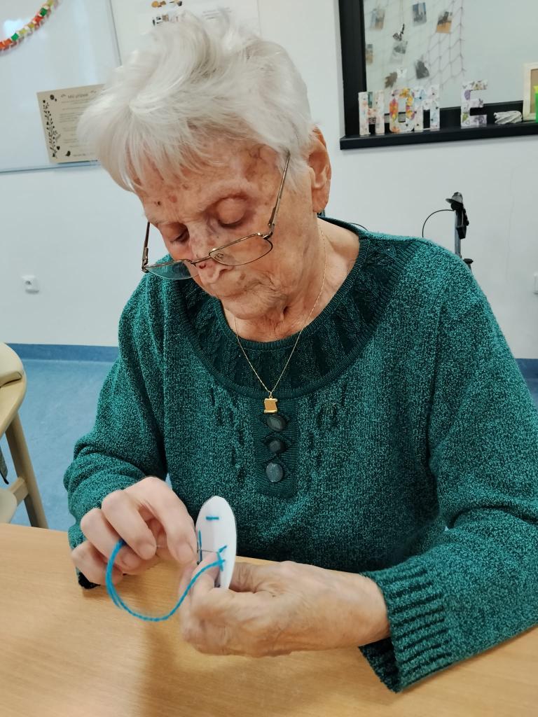Jemná motorika je důležitá pro každodenní činnosti, a proto se jí u nás věnujeme pravidelně. Klienti si procvičují prsty a ruce pomocí jednoduchých, ale zábavných aktivit – navlékání korálků, třídění drobných předmětů, skládání puzzle nebo tvoření dekorací. 🌟