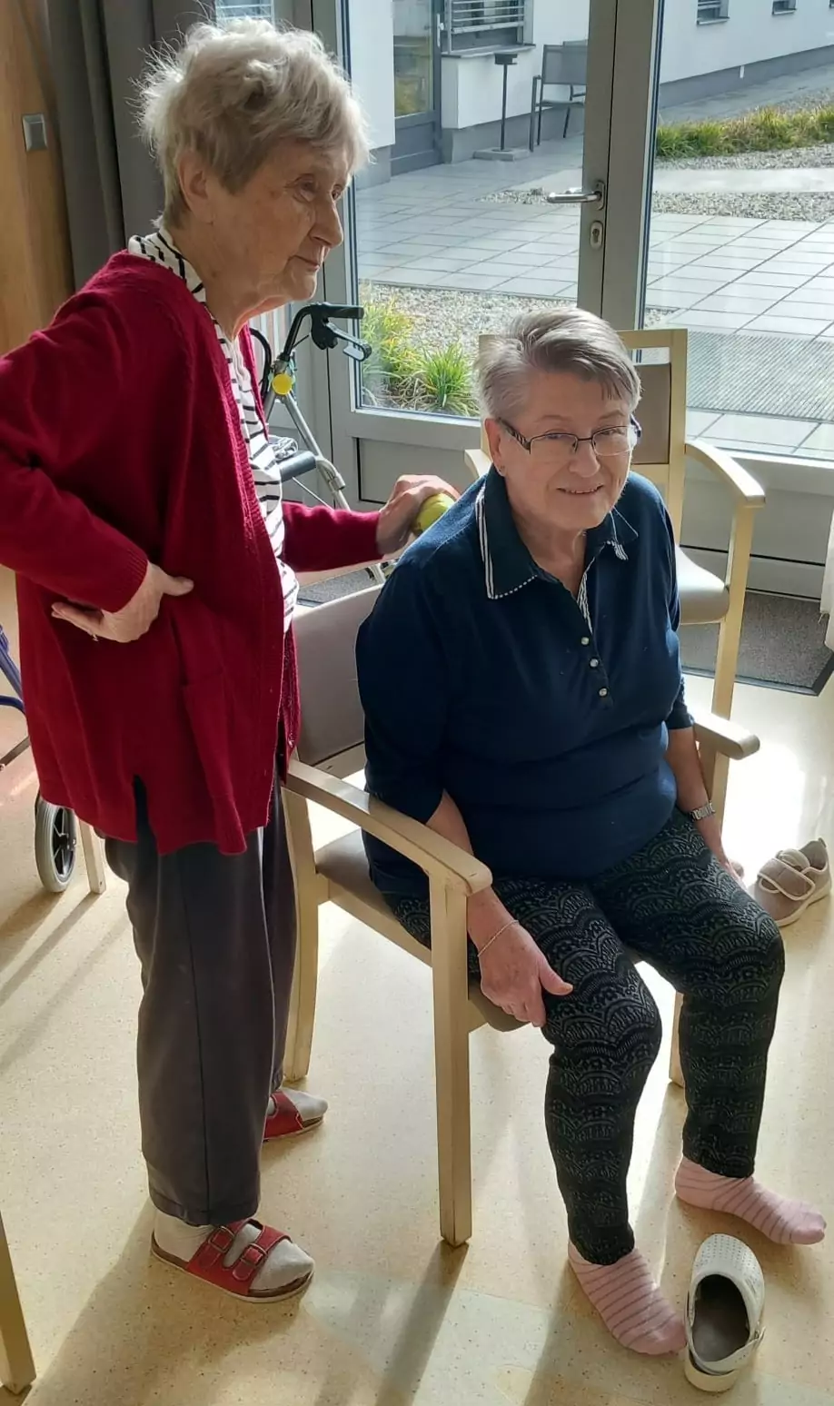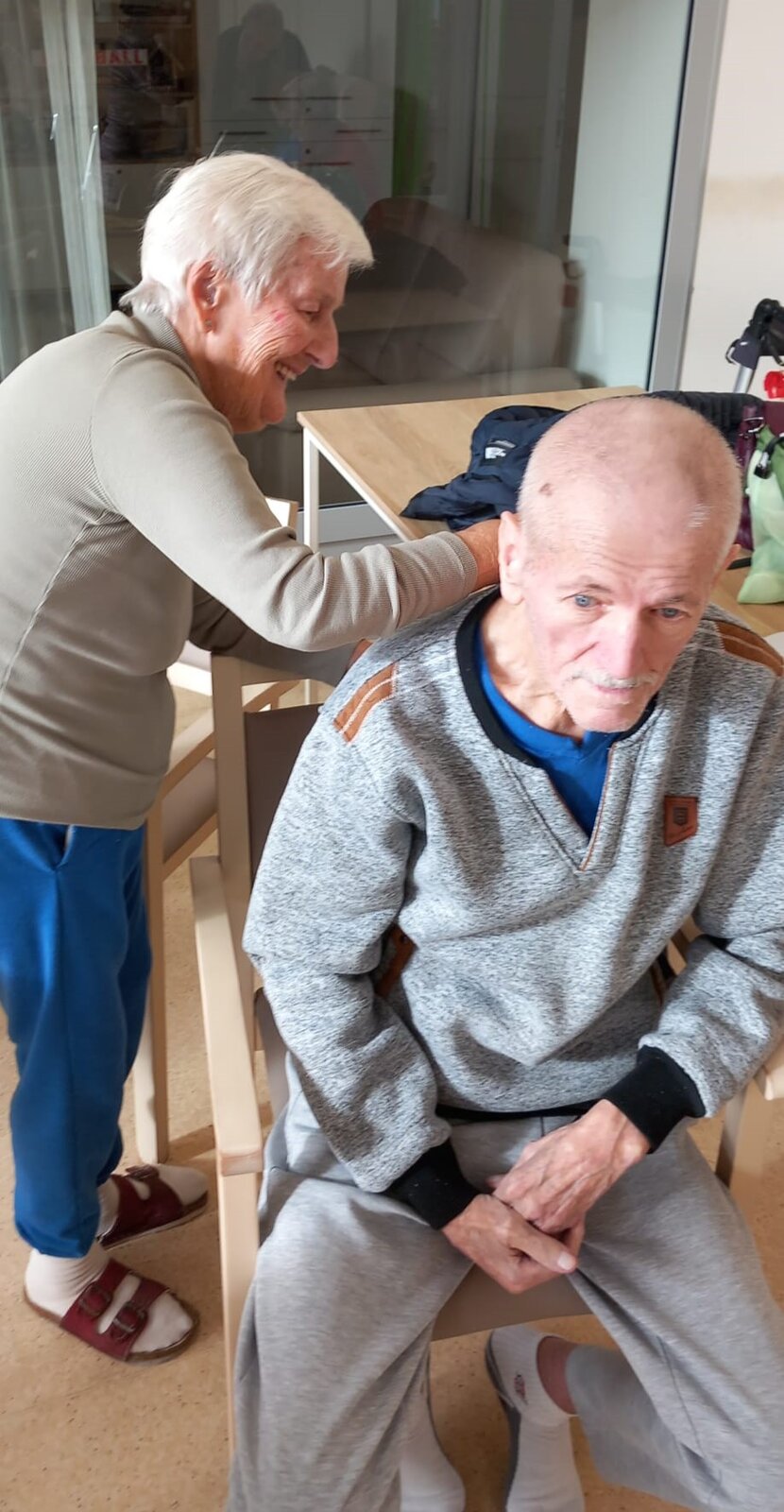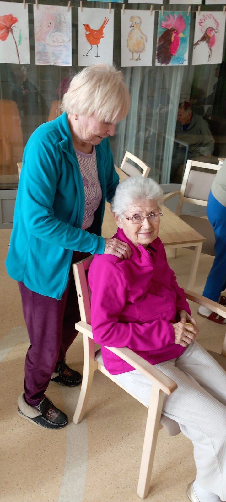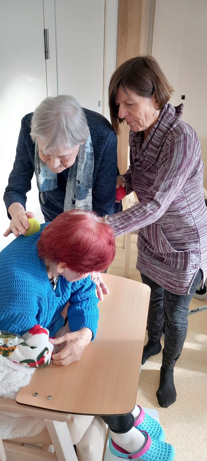 Jóga s dobrovolnicí a vzájemná masáž s míčky přinesly pohodu, uvolnění a spoustu úsměvů mezi klienty Senevida Ostrava. 🧘♀️✨