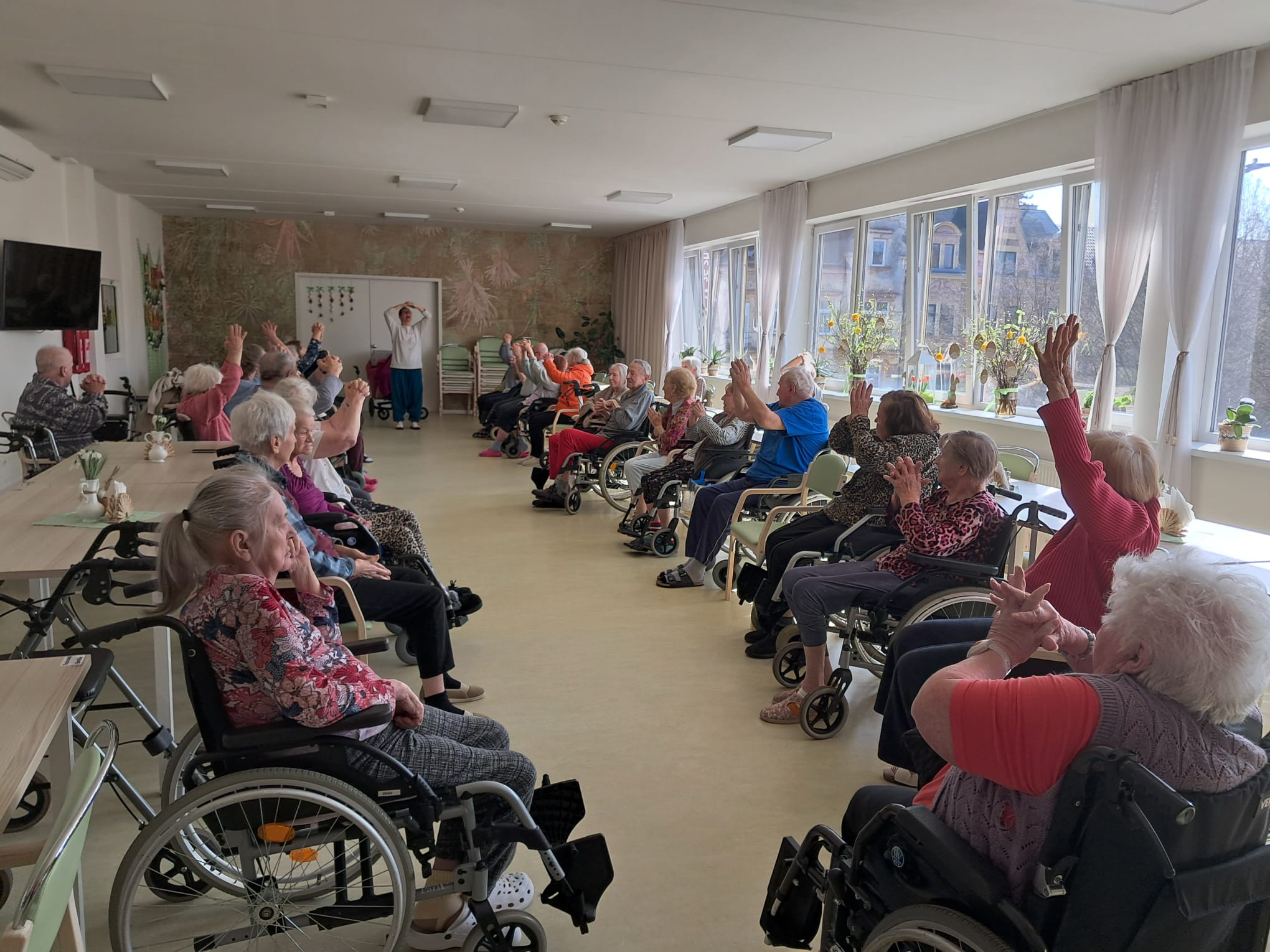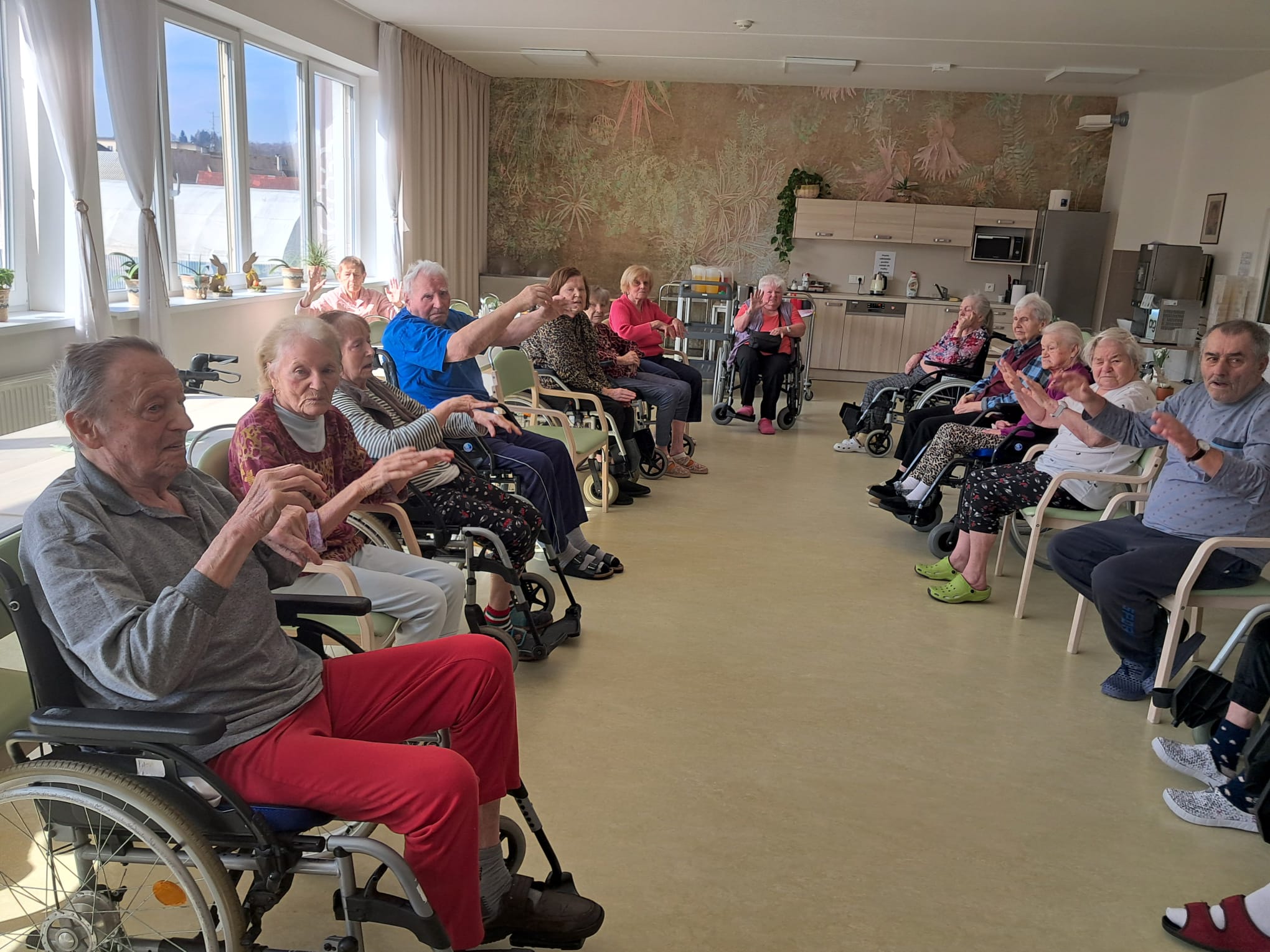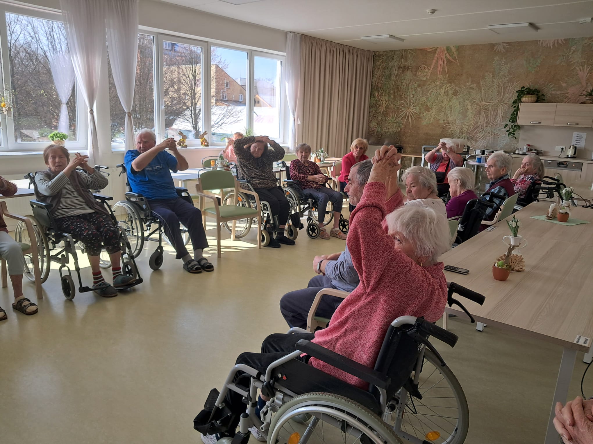 V našem Domově se každých čtrnáct dnů koná oblíbená lekce jógy, při které si klienti příjemně protáhnou svaly a zlepší svou pohyblivost.