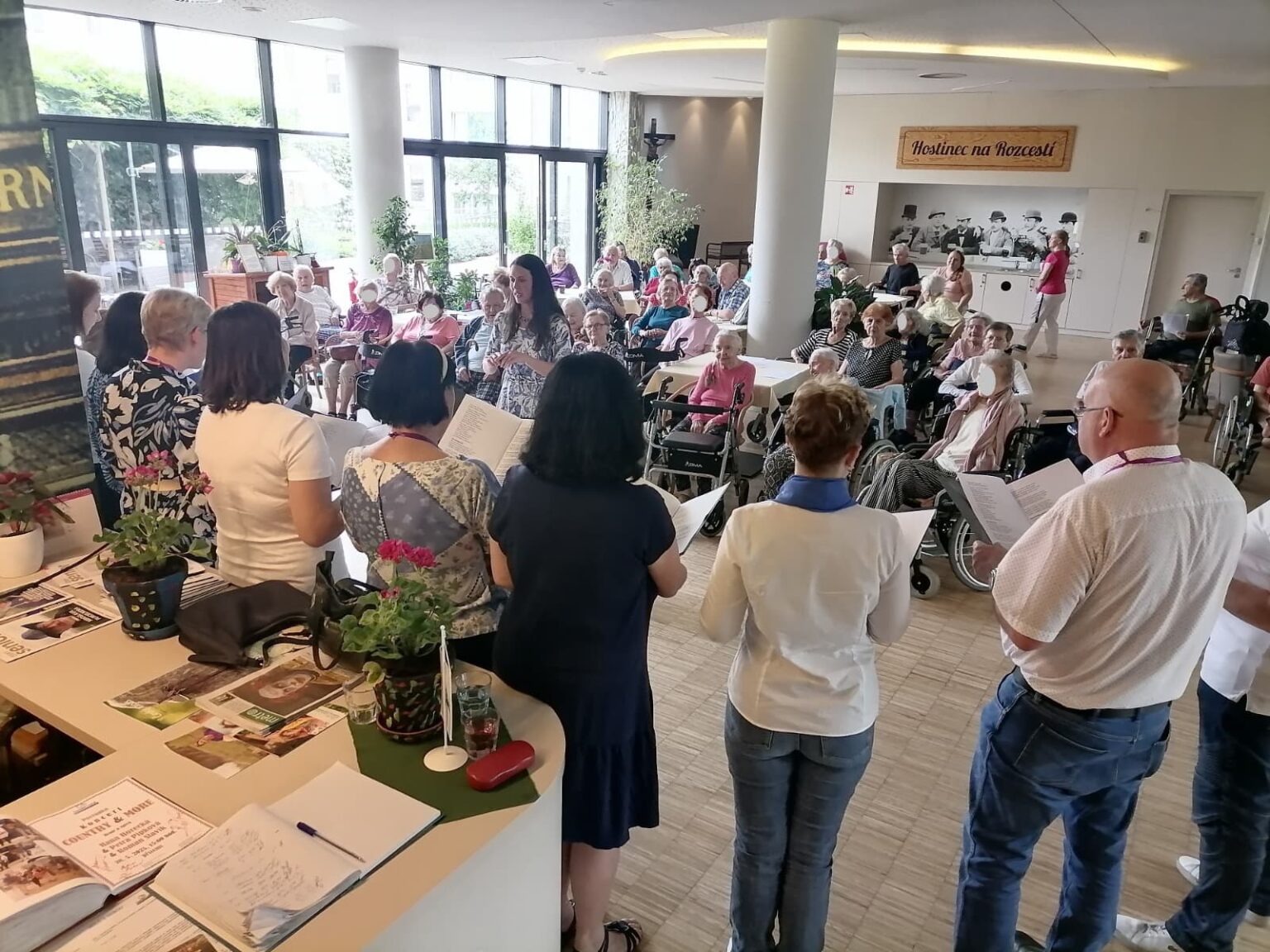 Kafky z náplafky nejsou pro klienty neznámé, vystupovali u nás během loňského adventu. Opět s sebou přinesli zpěvníky, takže kdo chtěl, a neznal text písniček, mohl nahlédnout do připraveného listu.