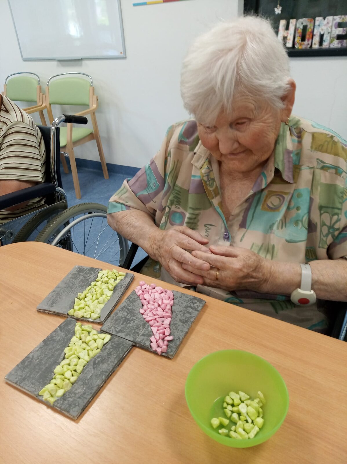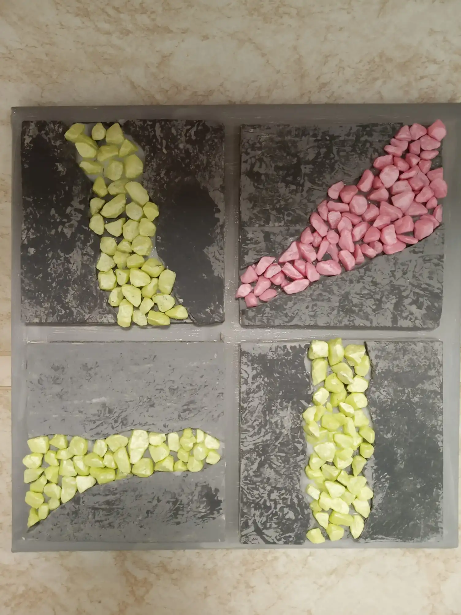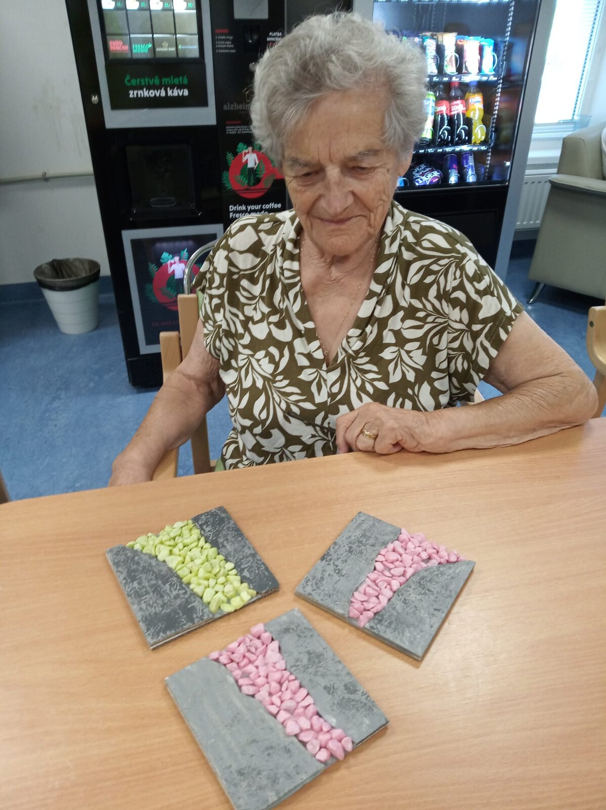 V Senevida Kamenice nad Lipou jsme se opět pustili do tvořivé práce, tentokrát trochu netradičně – z kartonu, lepidla a barevných kamínků vznikly krásné dekorativní dlaždice.