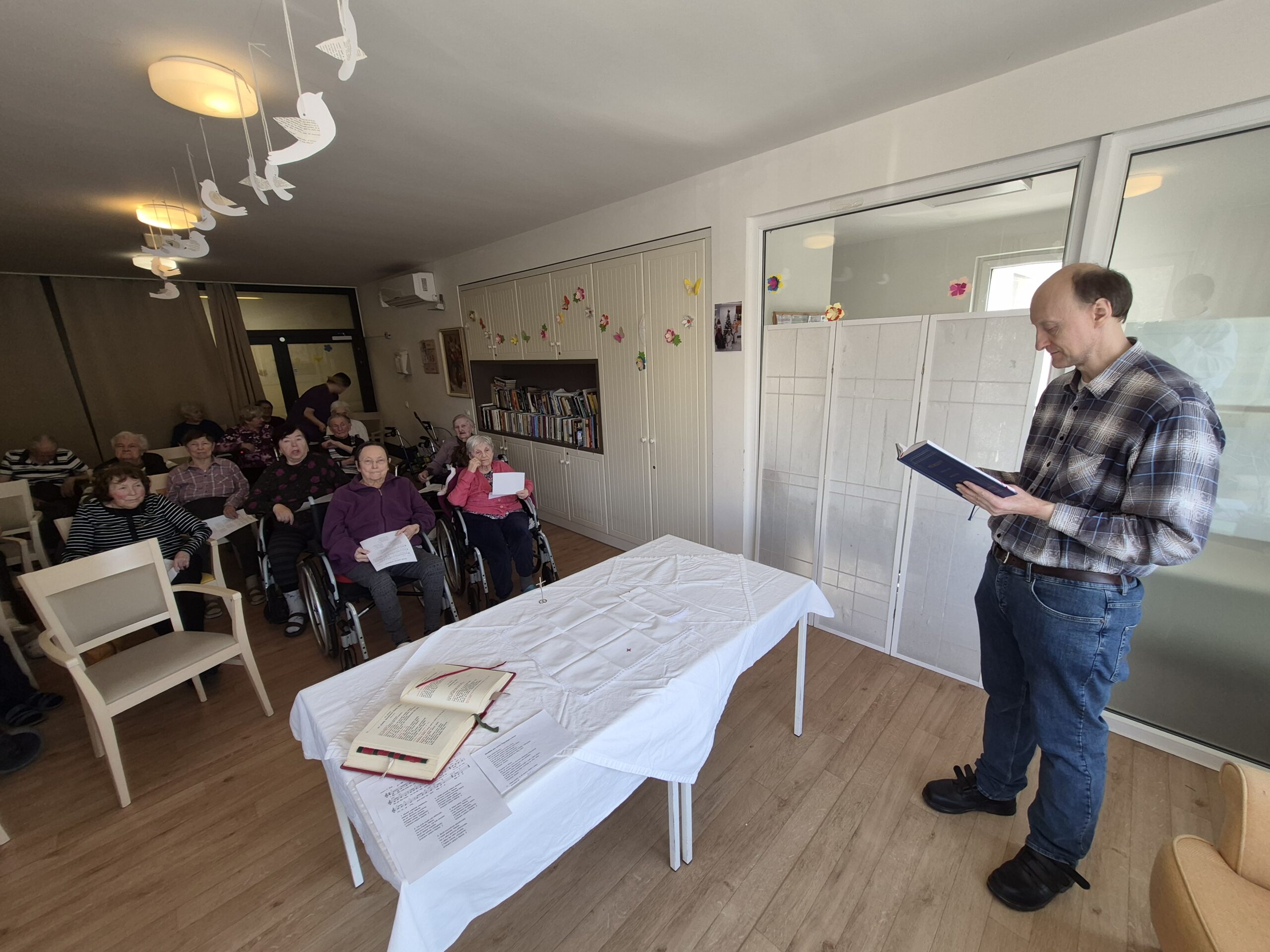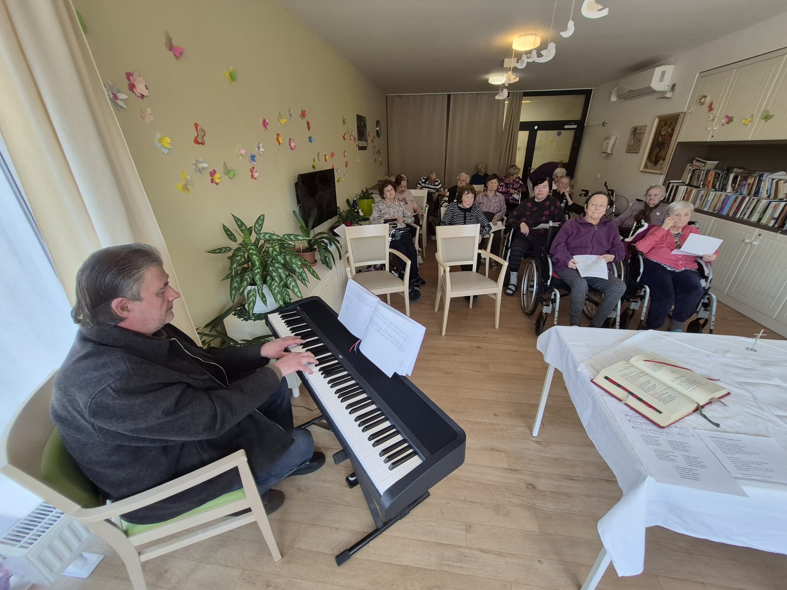 Opět nás navštívil farář z římskokatolické církve se svým varhaníkem.