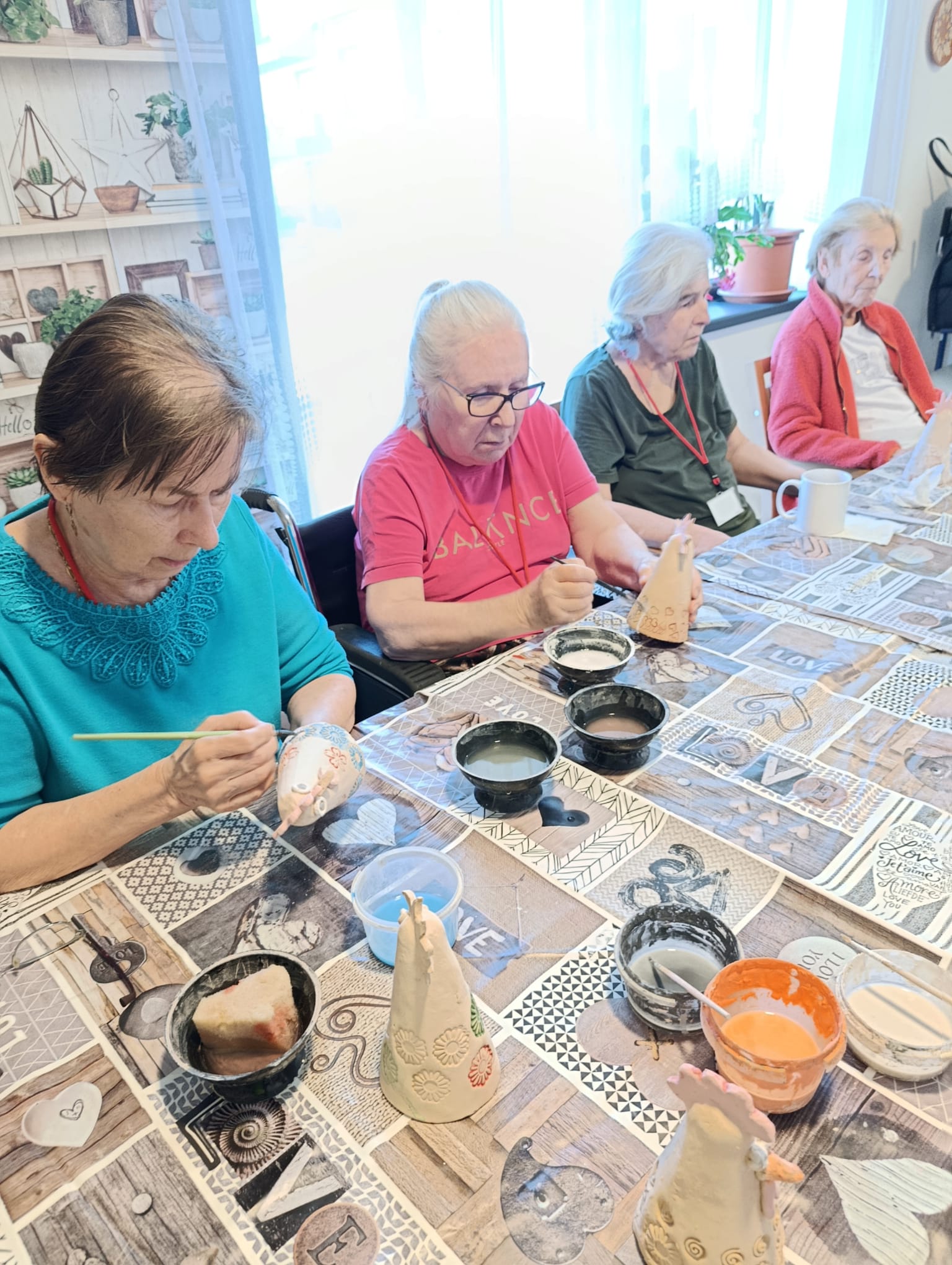 Ve středu si klientky dodělaly své keramické výrobky a každému kohoutovi či slepičce dodaly barvu dle svého gusta.