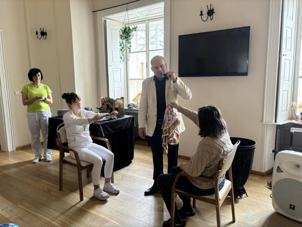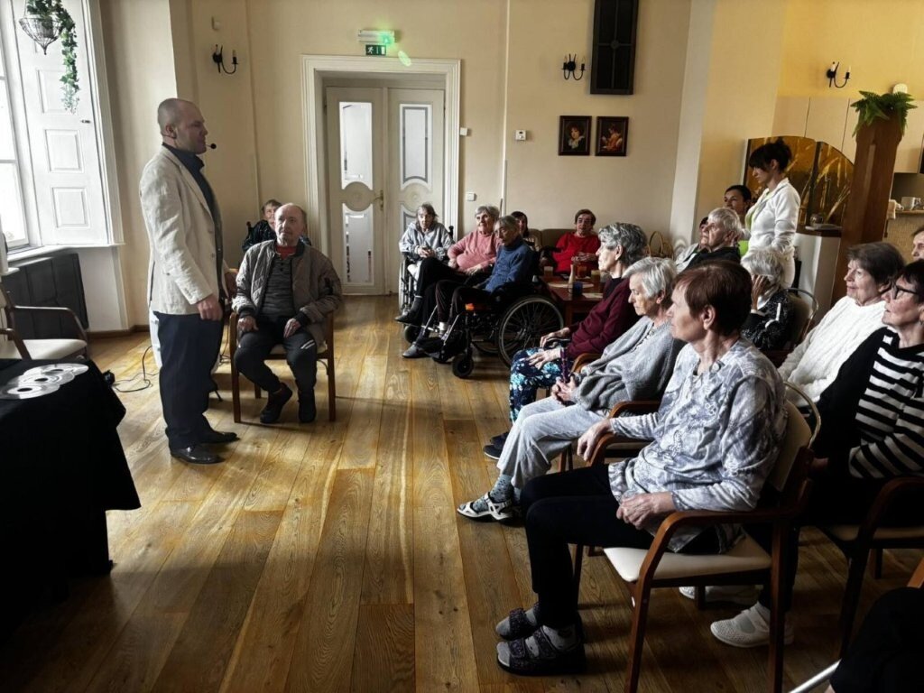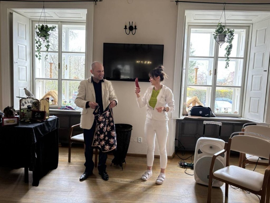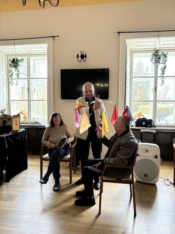 Na chvíli jsme se přenesli do světa kouzel, ruční manipulace, a sugesce. Mohli jsme obdivovat například kouzla s kartami, s kloboukem, či mizení předmětů.🃏 Do kouzlení se jako asistenti zapojili nejen klienti, ale i naše aktivizační pracovnice.