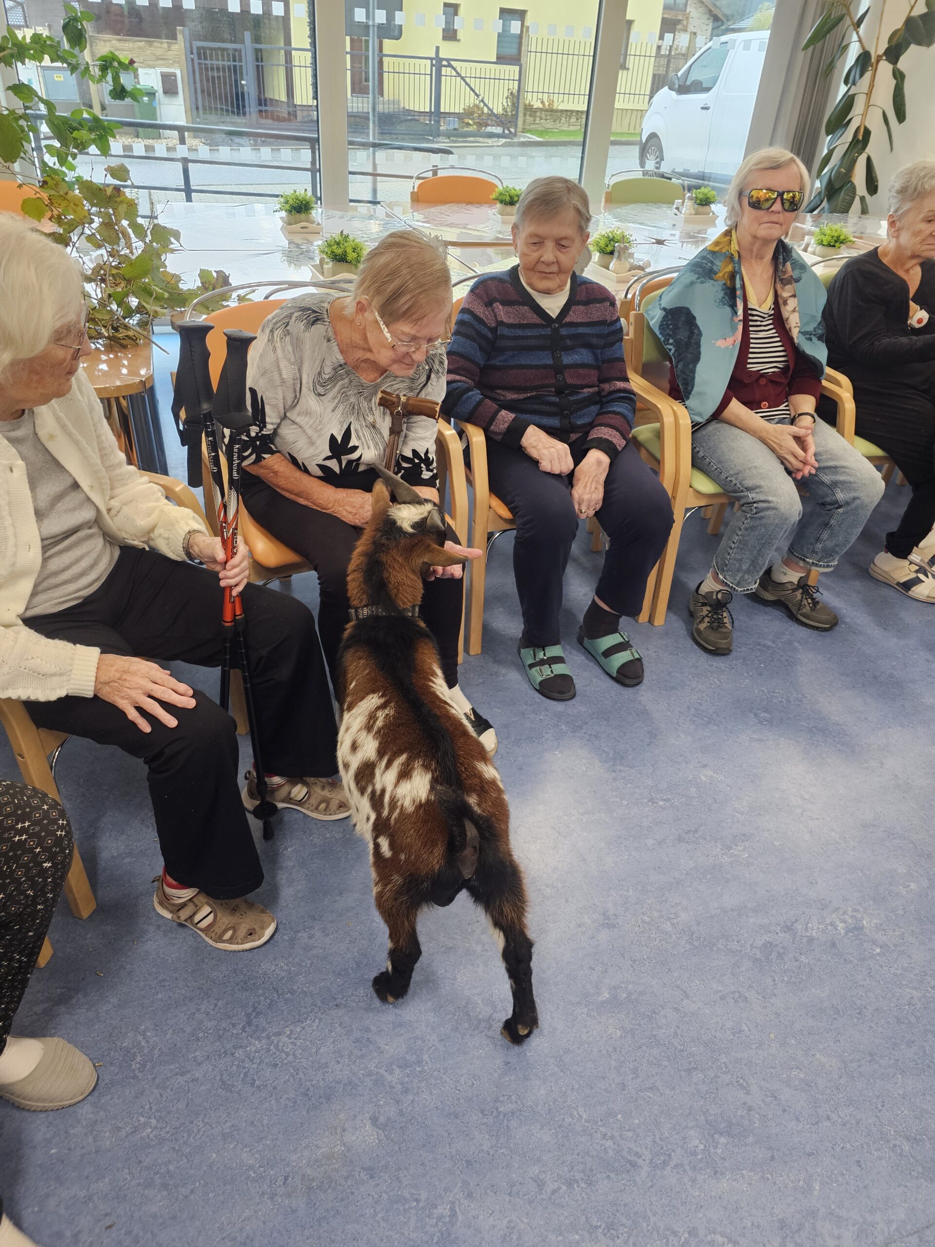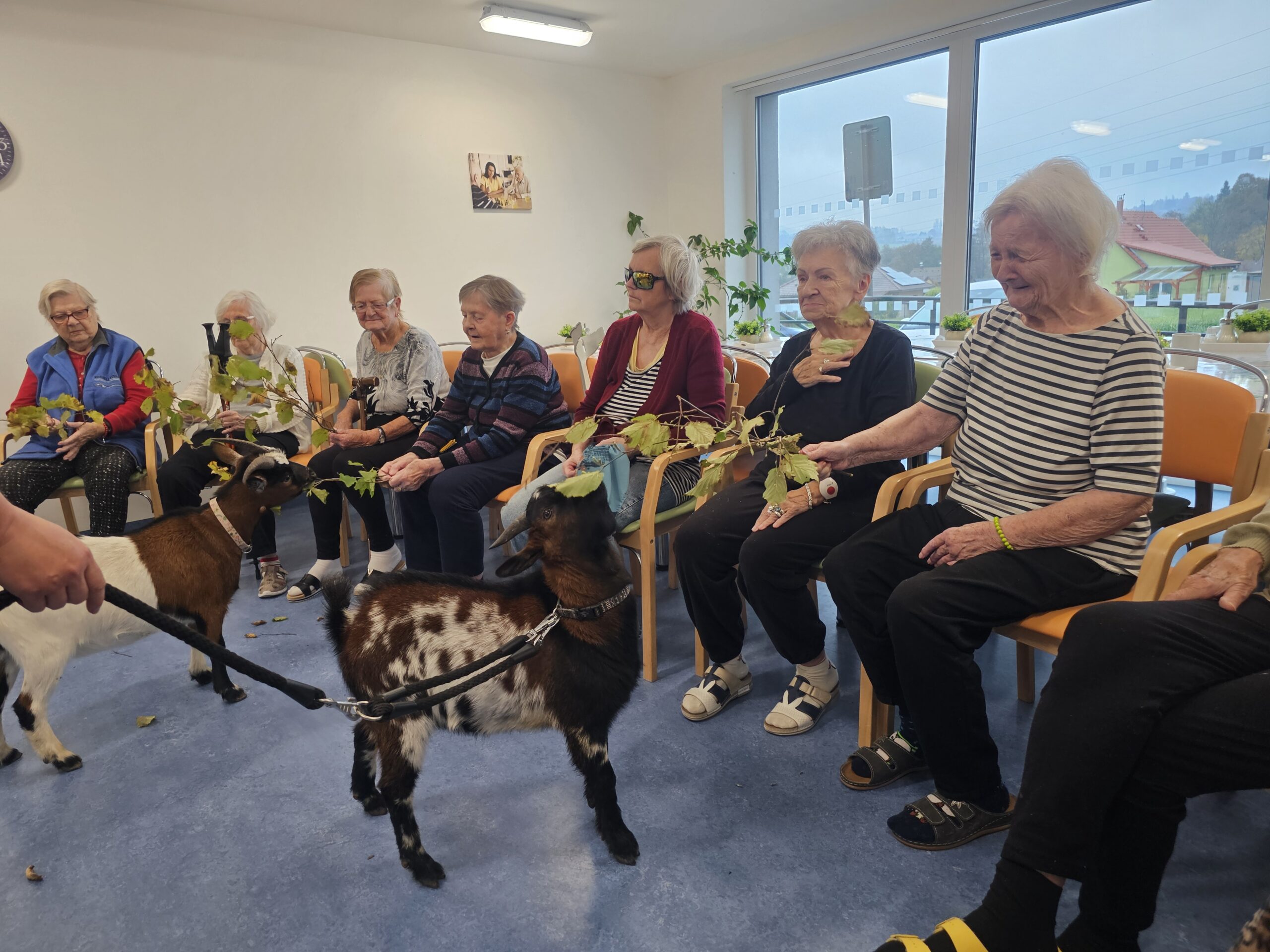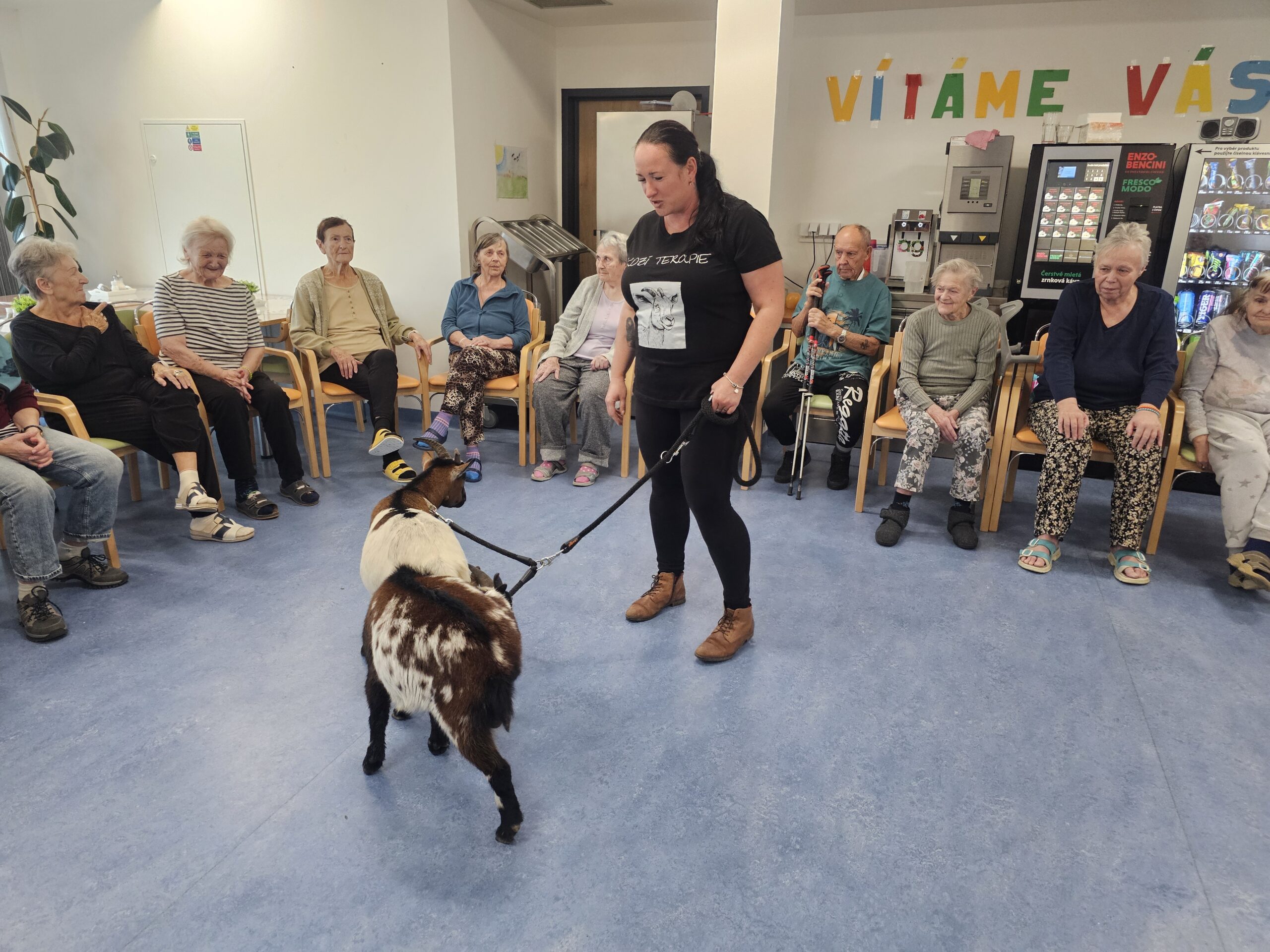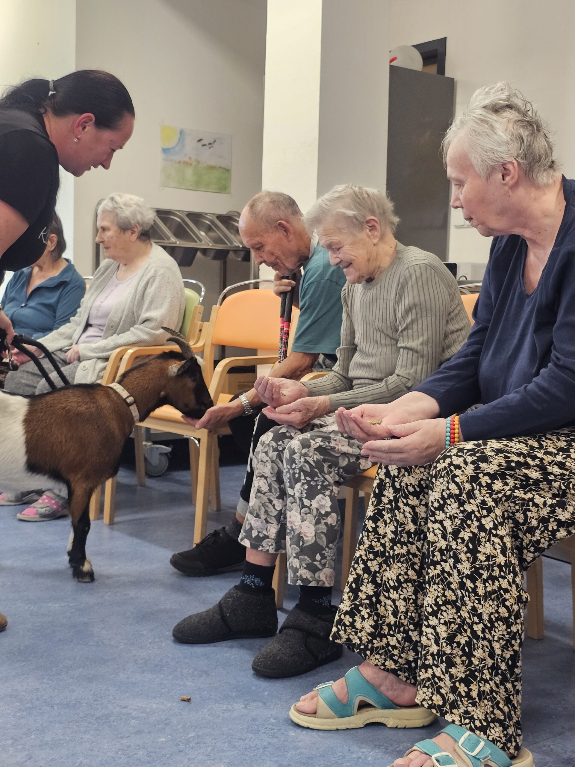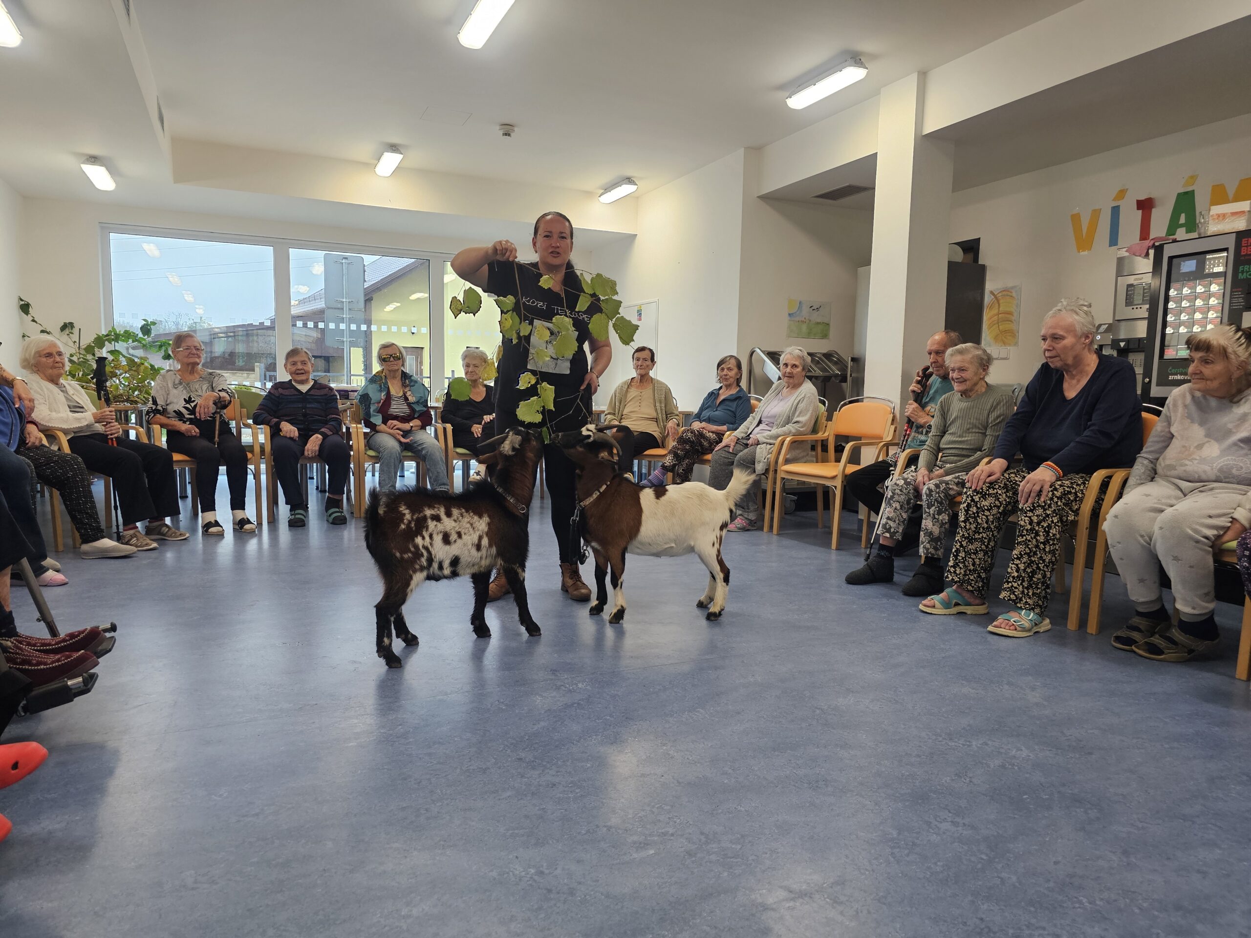 Klienty z Senevida Minkovice navštívila paní Lucie Cachová se svými milými čtyřnohými kamarády – kozlíkem Vildou a kozí slečnou Julčou. Naši klienti měli z návštěvy obrovskou radost – bylo to milé, veselé a nezapomenutelné setkání.
