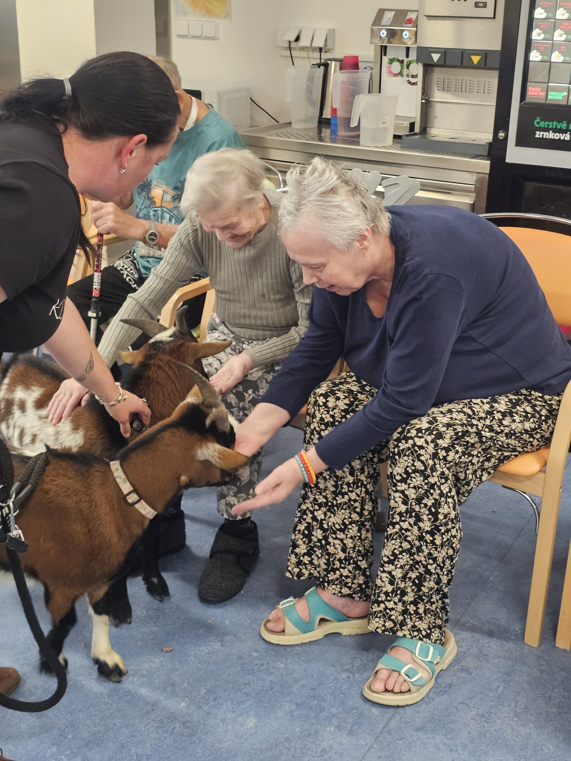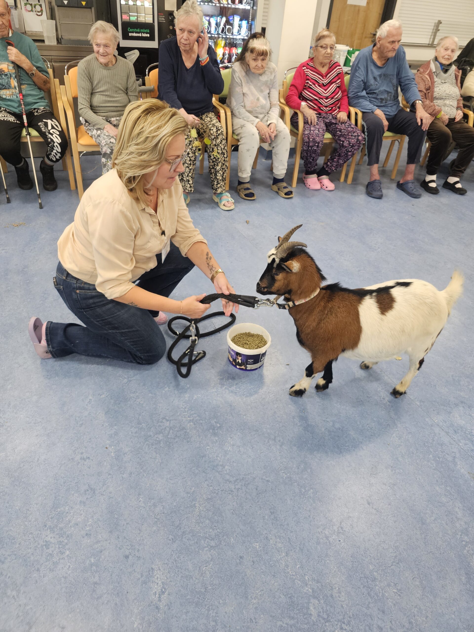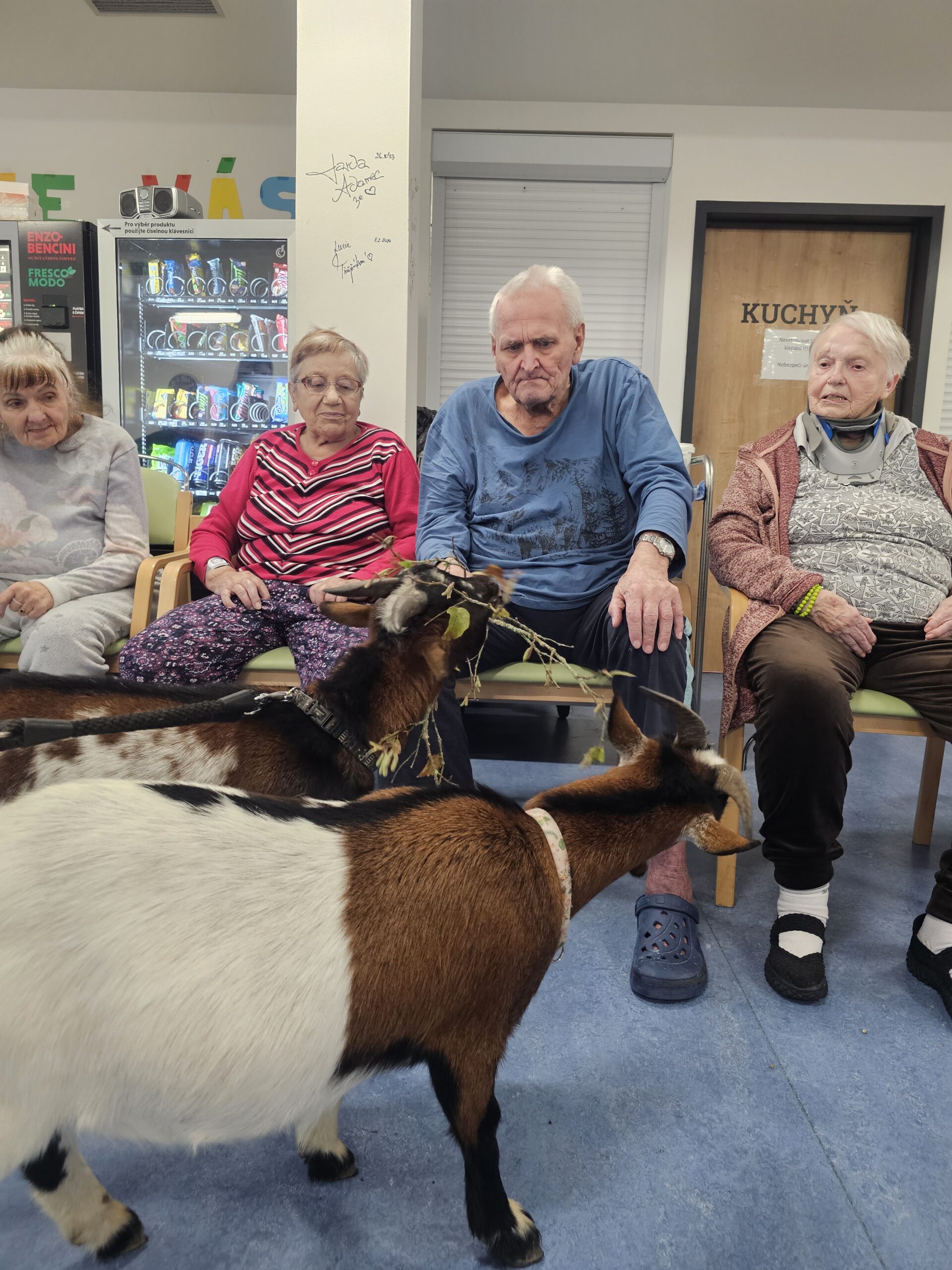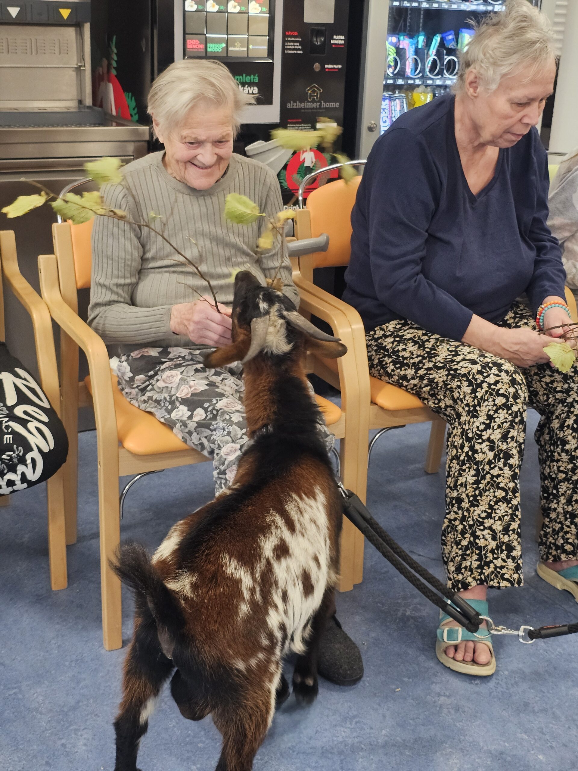 Klienty z Senevida Minkovice navštívila paní Lucie Cachová se svými milými čtyřnohými kamarády – kozlíkem Vildou a kozí slečnou Julčou. Naši klienti měli z návštěvy obrovskou radost – bylo to milé, veselé a nezapomenutelné setkání.