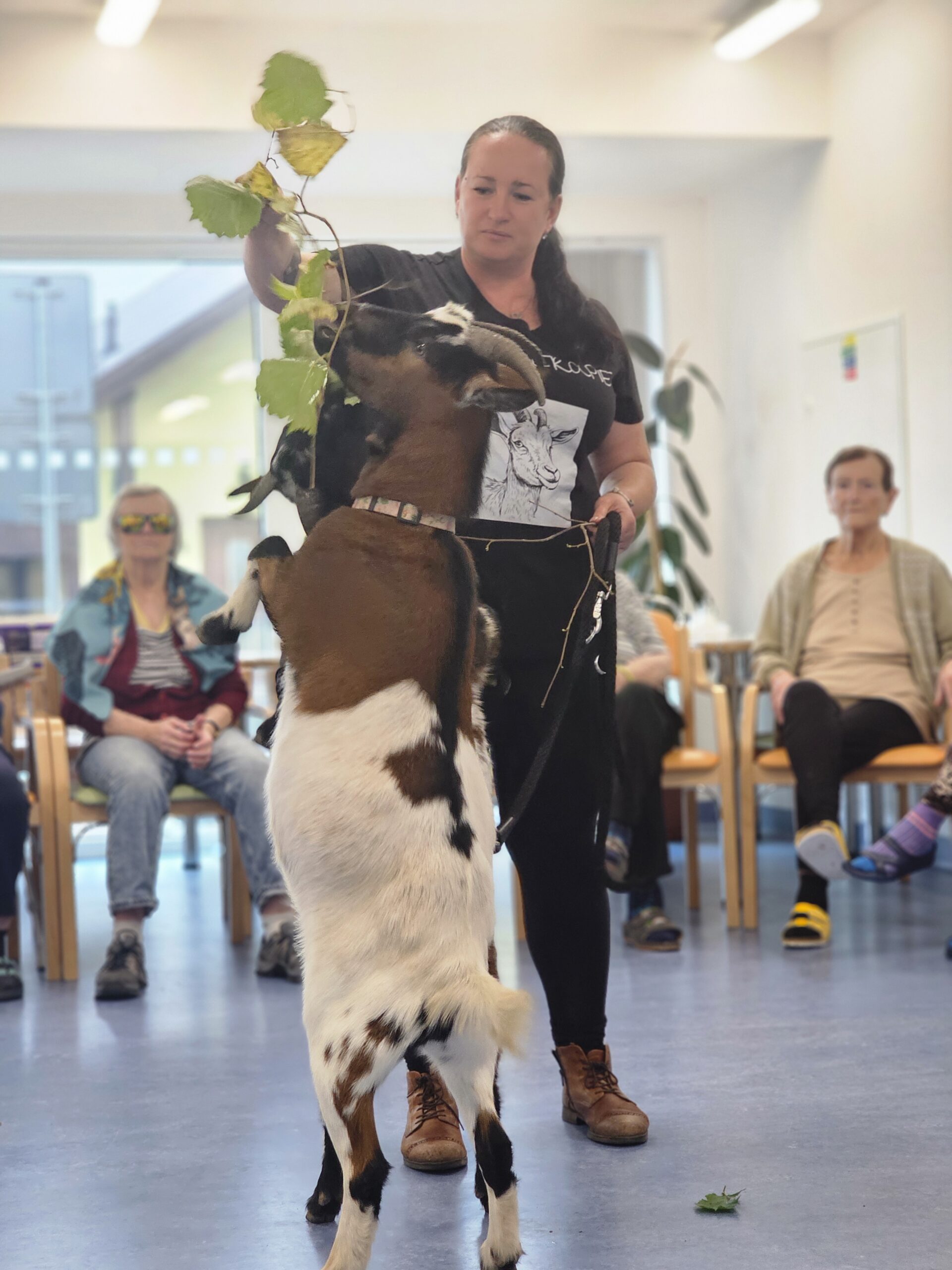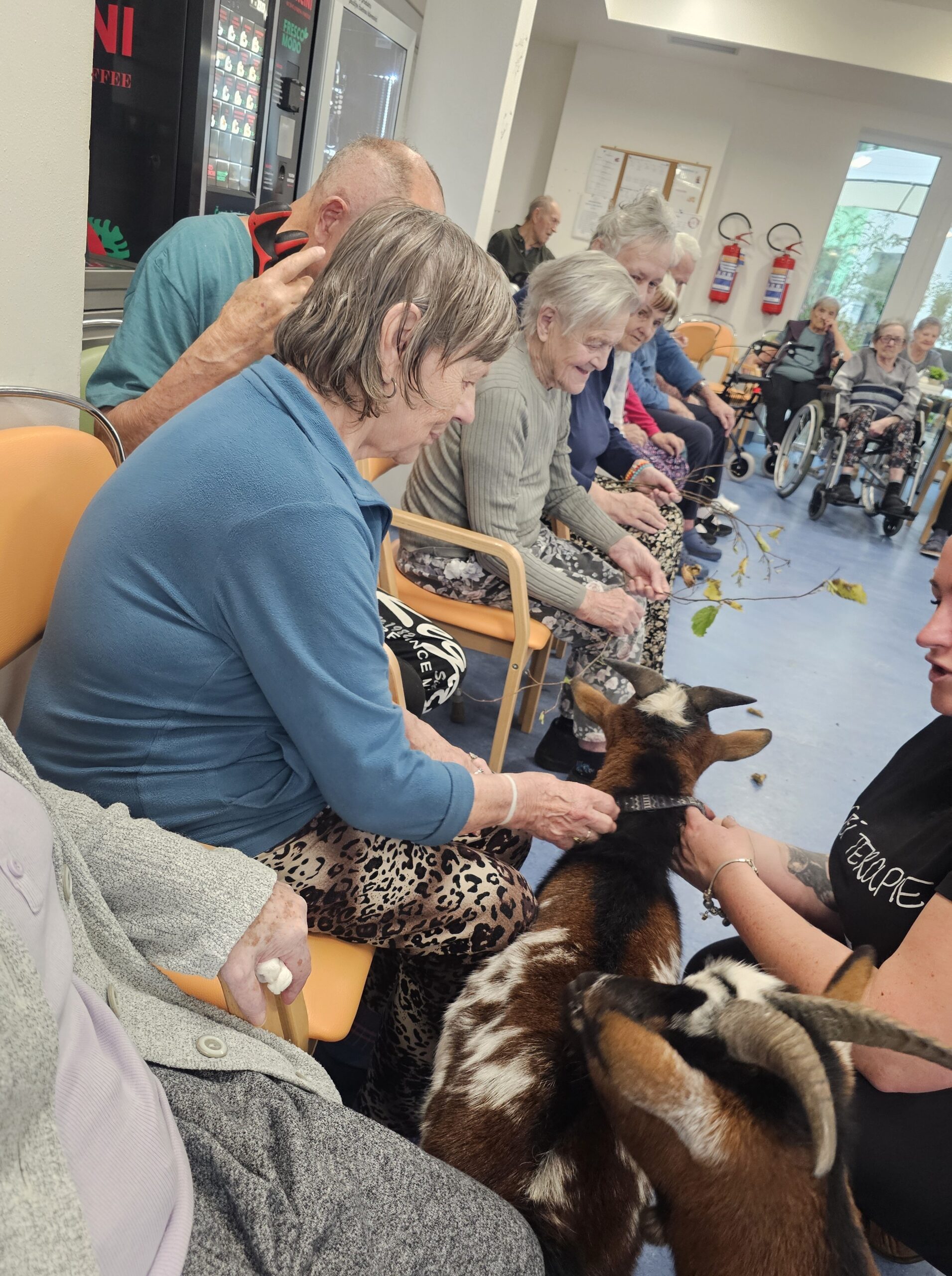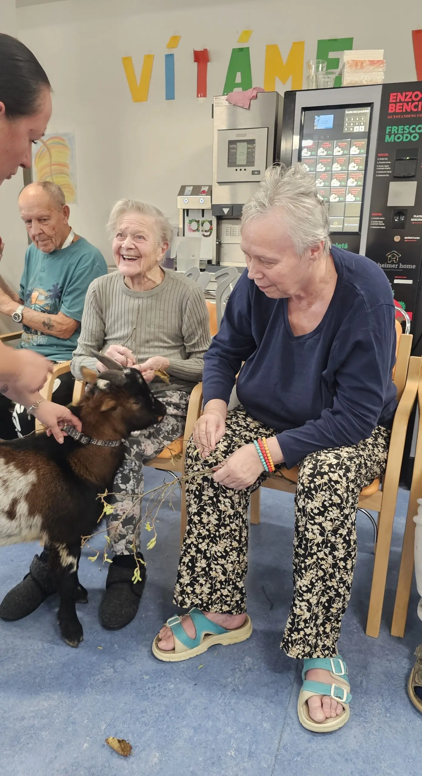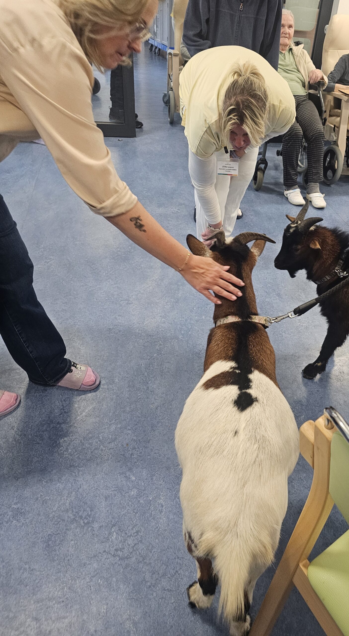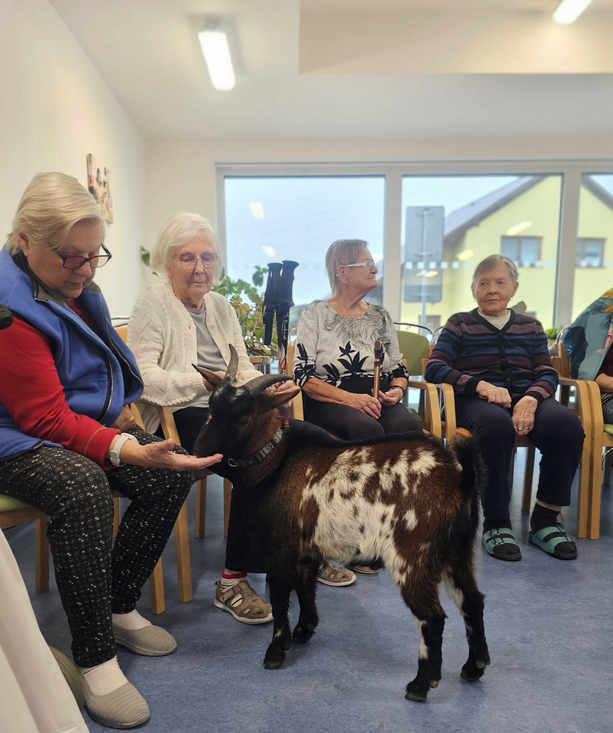 Klienty z Senevida Minkovice navštívila paní Lucie Cachová se svými milými čtyřnohými kamarády – kozlíkem Vildou a kozí slečnou Julčou. Naši klienti měli z návštěvy obrovskou radost – bylo to milé, veselé a nezapomenutelné setkání.
