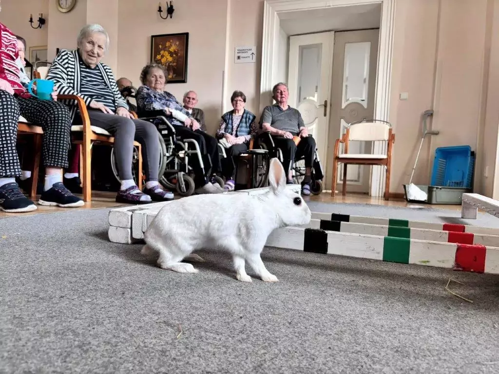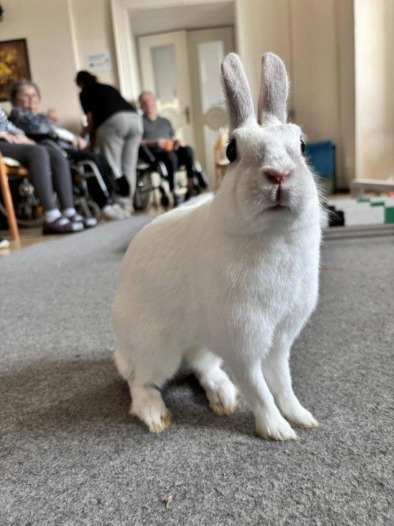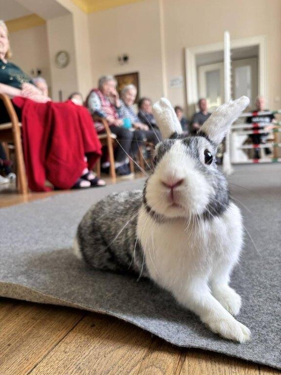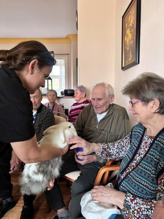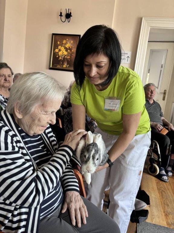 🐇 Vystoupení to bylo opět roztomilé, obohacené zajímavým tematickým povídáním. A i když se ještě nemohlo konat venku, vůbec nám to nevadilo. I tak jsme si to náležitě užili. Na rozloučenou se naši klienti mohli pomazlit s těmi klidnějšími a menšími králíčky. Moc děkujeme paní Štveráčkové a její dceři Agátě za milou a přínosnou návštěvu, která všem udělala ohromnou radost. 😀