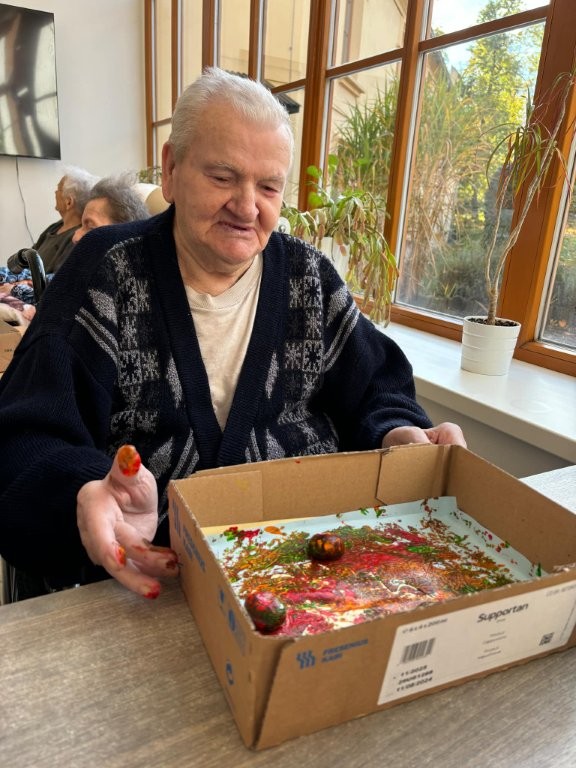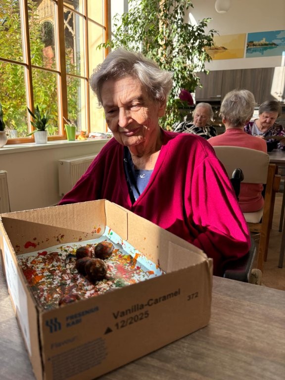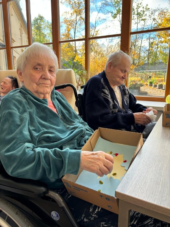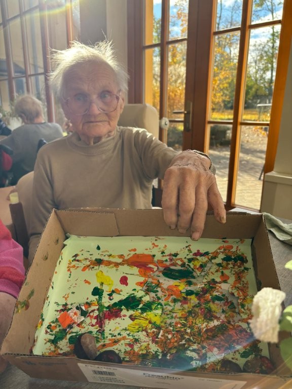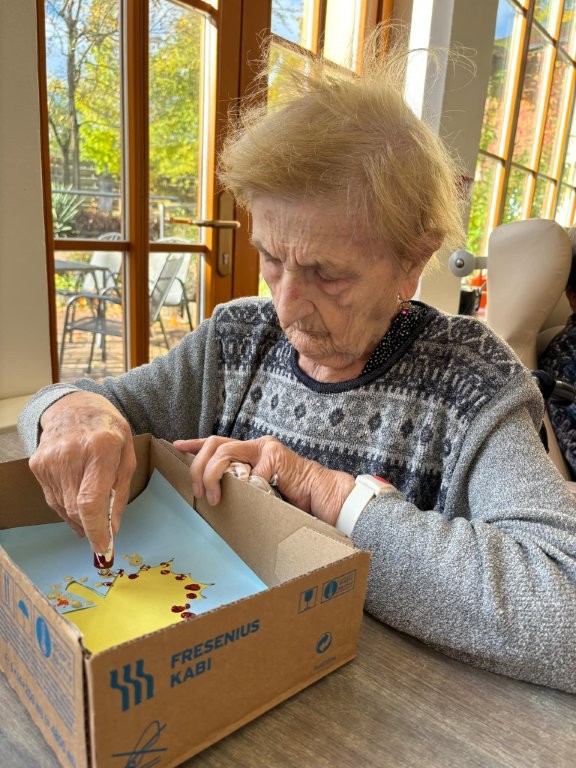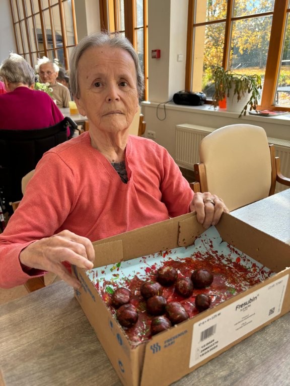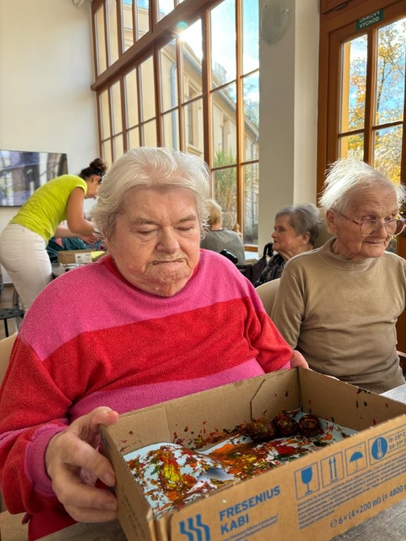Klienti se zapojili do tvořivé aktivity, při které využili kaštany, barvy a svou představivost. 🎨