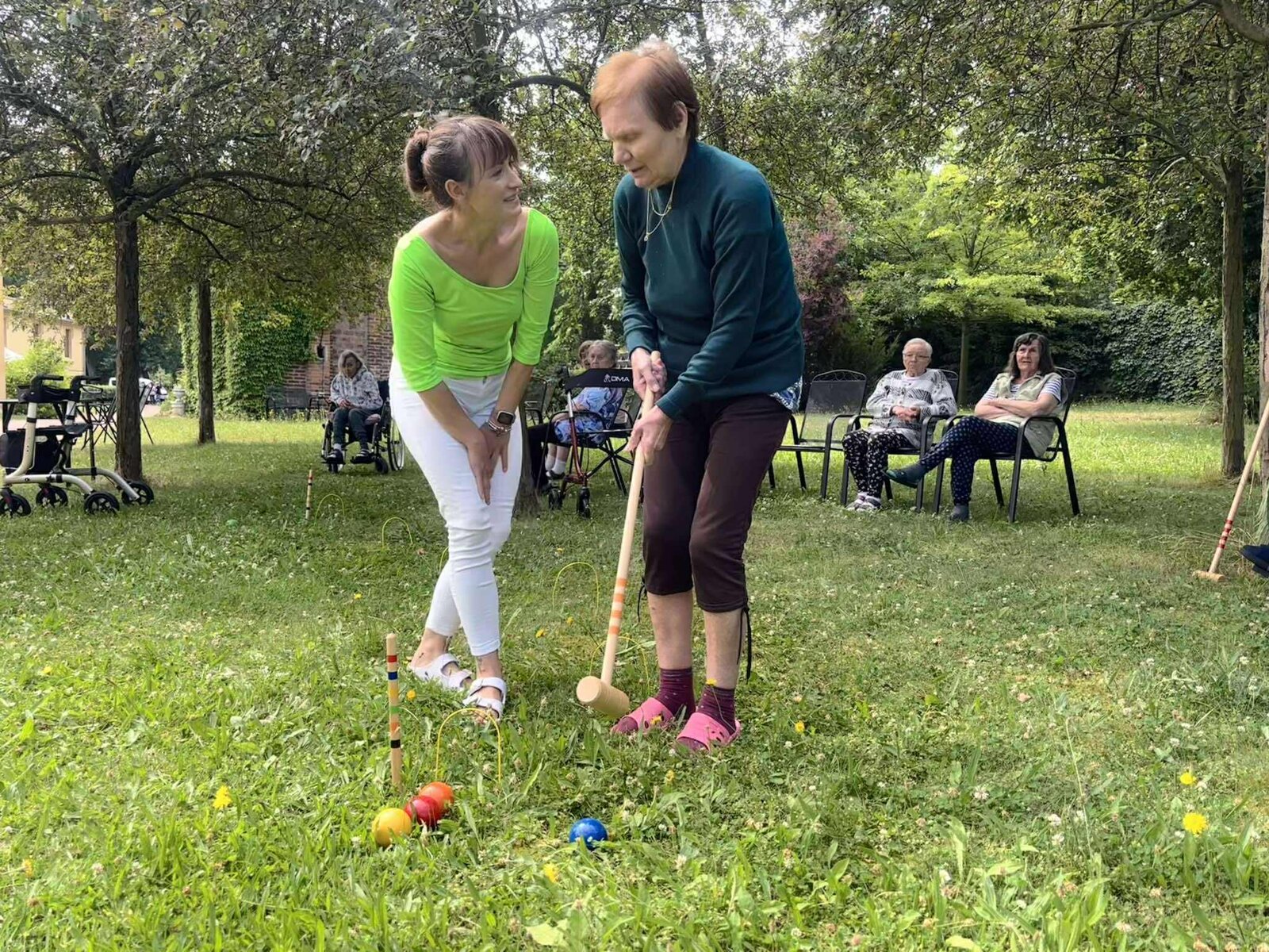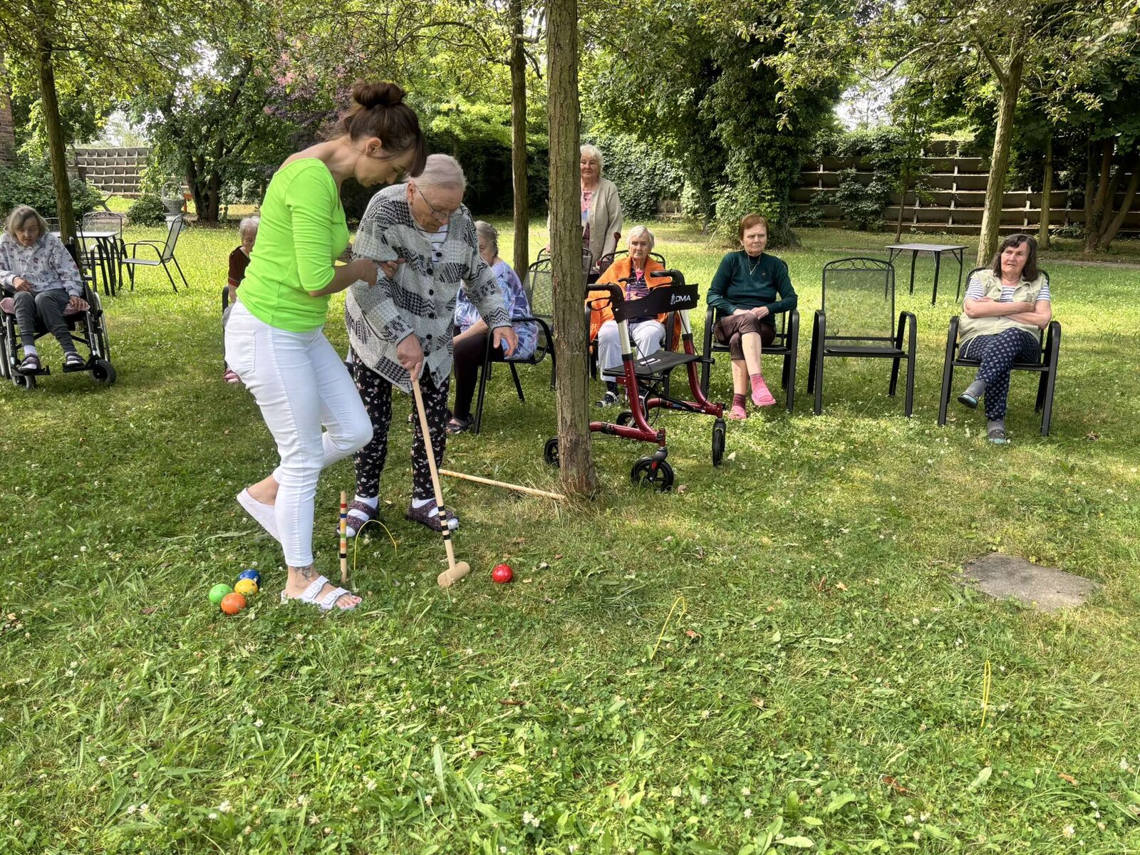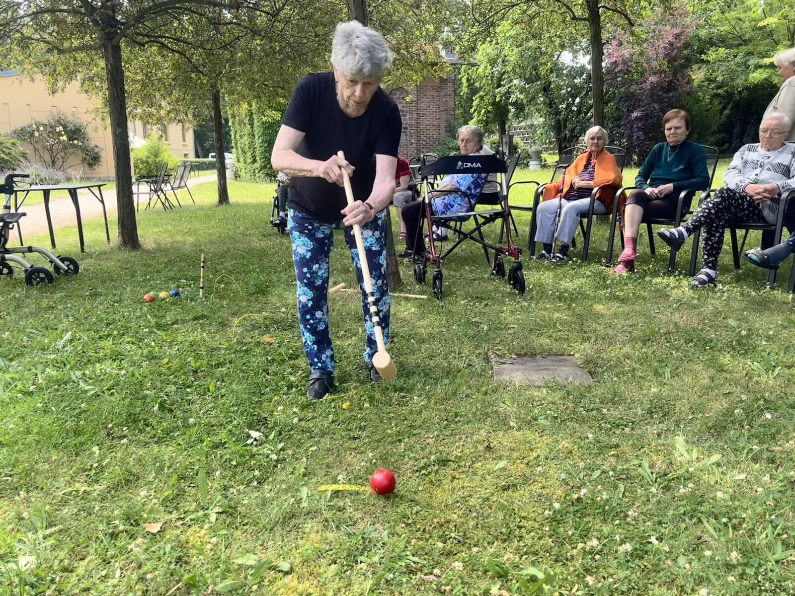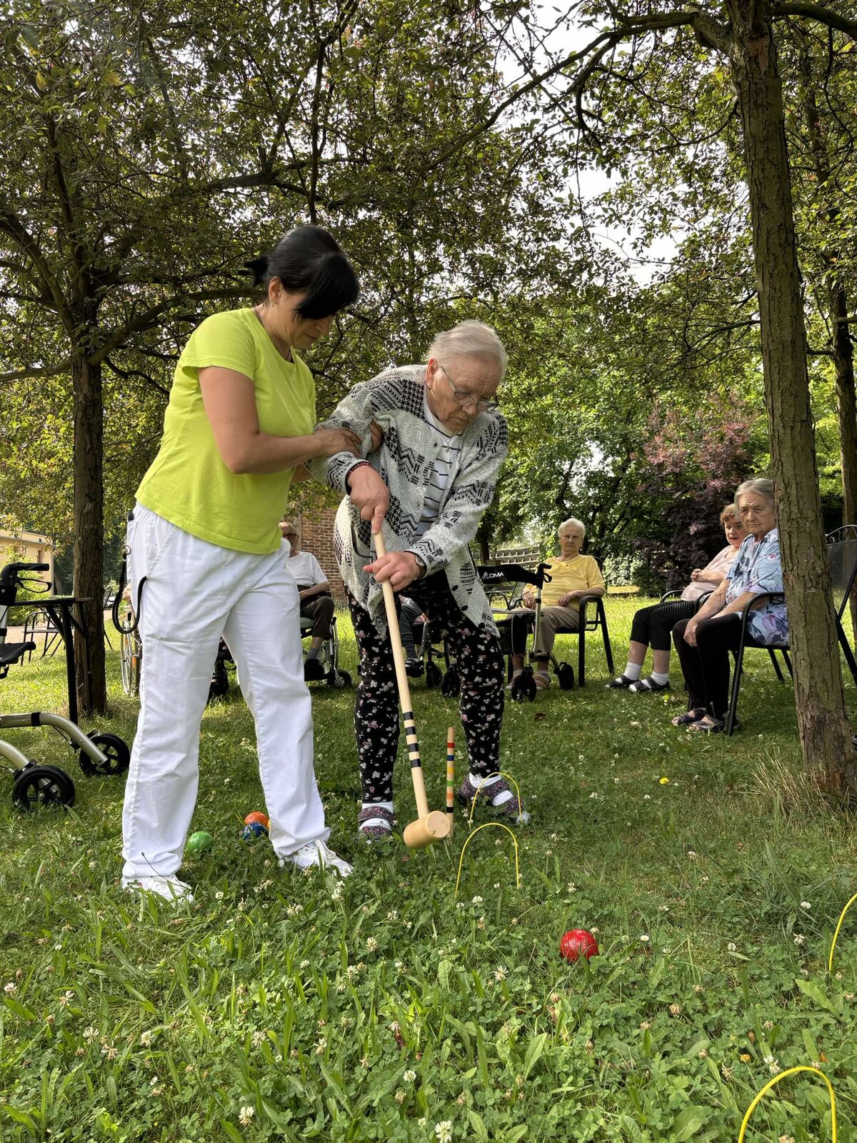 Páteční slunečné dopoledne jsme si ve Filipově zpestřili kroketem v naší zámecké zahradě.
