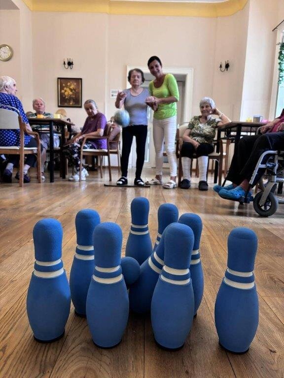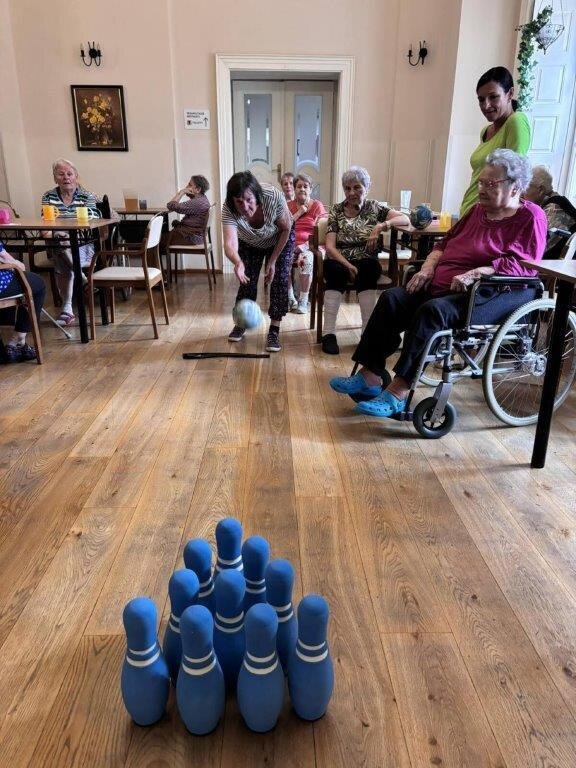 Kuželkové turnaje jsou u nás ve Filipově velmi oblíbenou aktivitou. I tentokrát se klientům mimořádně dařilo a zdravá soutěživost udělala své. Každý se předháněl, kolik shodí kuželek a nad nevydařeným hodem svého soupeře se všichni pousmáli. Pomyslné tři stupínky vítězů jsme tradičně odměnili diplomem. Bylo to velmi veselé a zábavné dopoledne, které si brzy zopakujeme. 😊