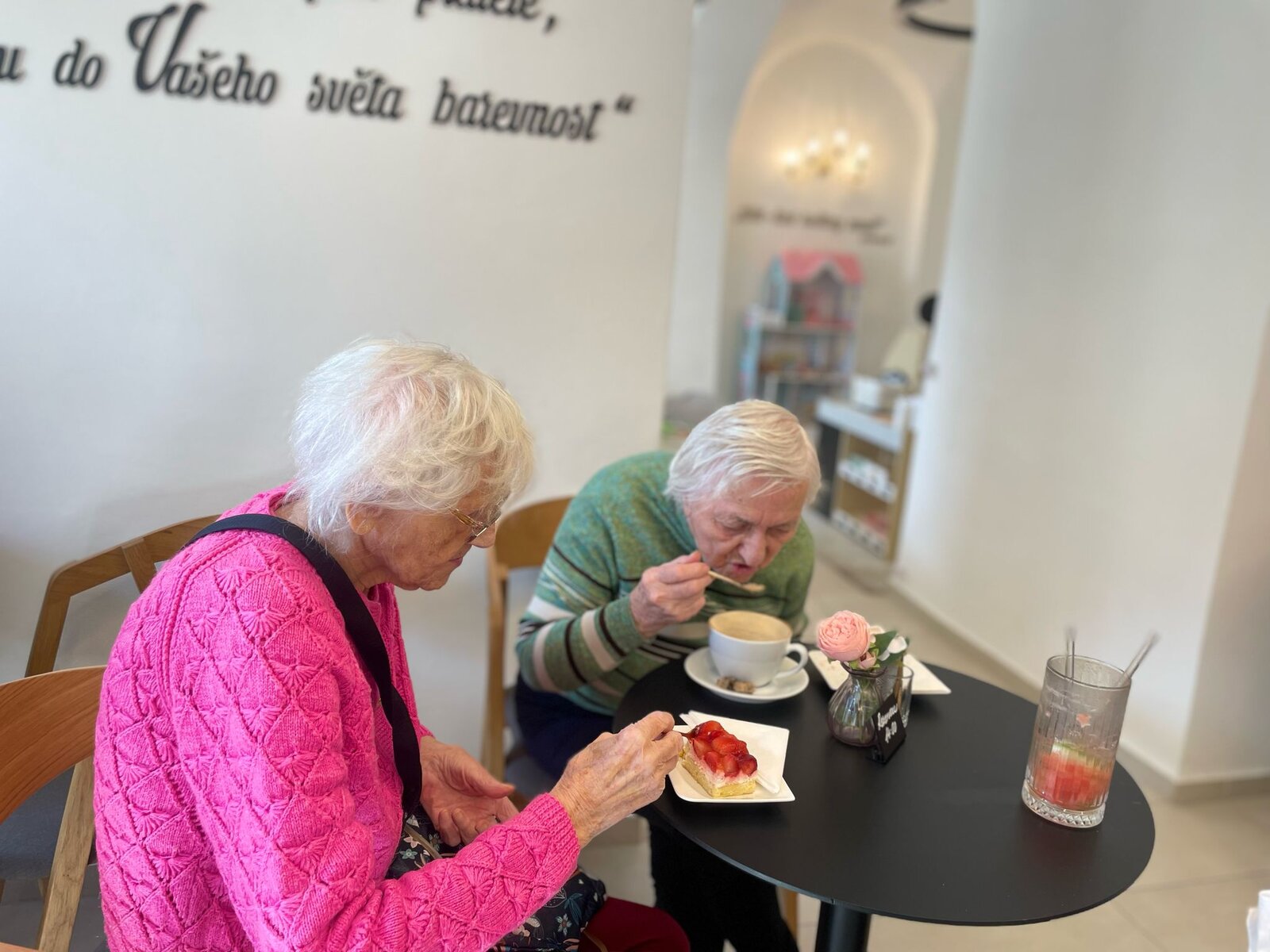 Středeční odpoledne strávili klienti Senevida Česká Lípa posezením při kávě, drinku a zákusku v nově otevřené květinové kavárně. Pánové si svou kávu a zákusek dali venku na sluníčku a dámy v příjemném prostředí kavárny. Nezapomněli jsme využít krásný foto koutek.