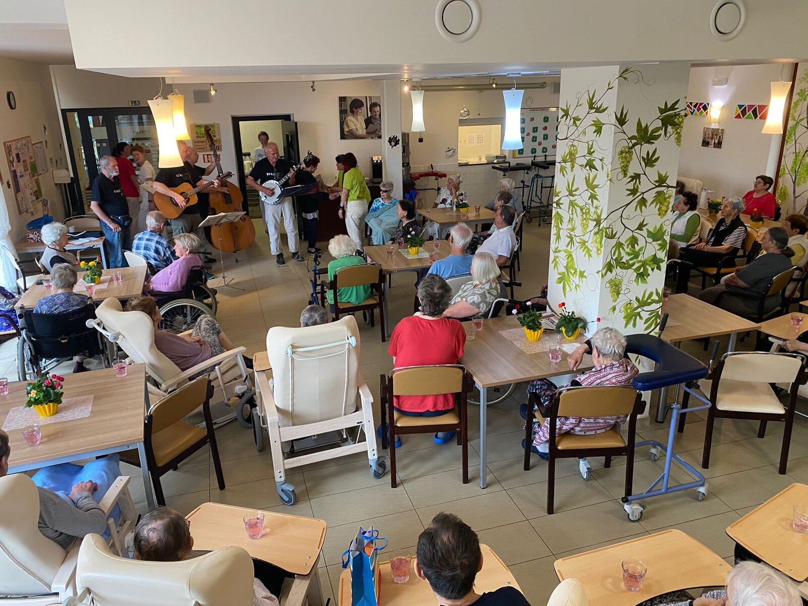 Máme tu konec měsíce a s tím je spojená oslava narozenin. V květnu jsme měli rovnou 5 oslavenců. Dopoledne jsme společnými silami připravili chlebíčky a odpoledne se slavilo. K poslechu a tanci nám hrála skvělá kapela Huraš Band. Byla to zkrátka oslava, jak má být!