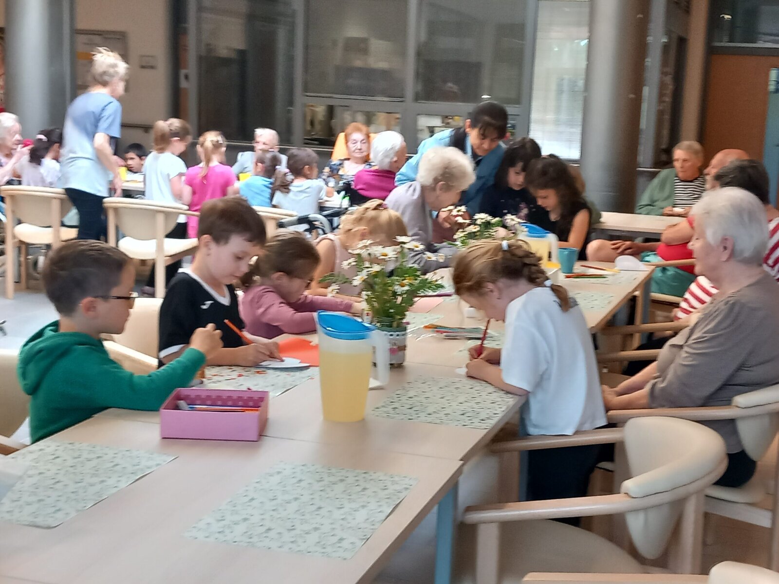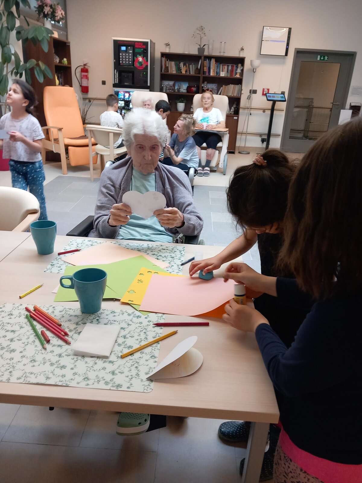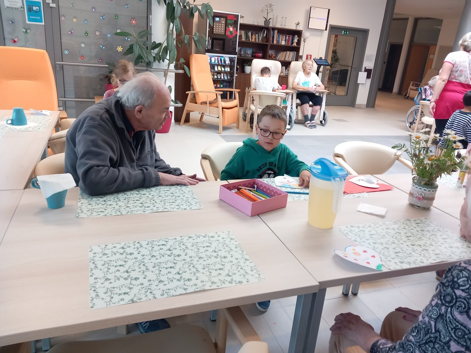 v Senevida Libeň proběhlo mezigenerační setkání, které klientům udělalo radost. Navštívily nás děti z mateřské školky a společně s klienty si vyrobily srdíčka 💙, která věnovaly klientům jako dárečky. Na závěr zarecitovaly a zazpívaly.